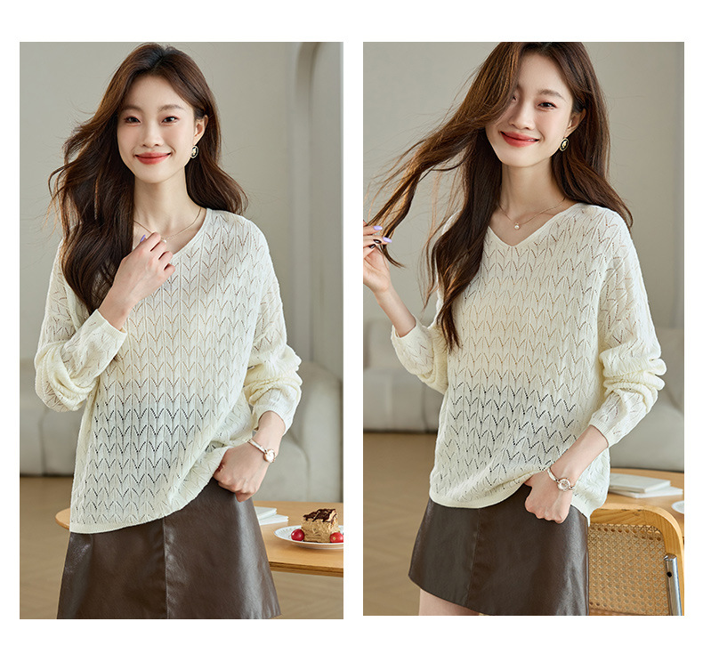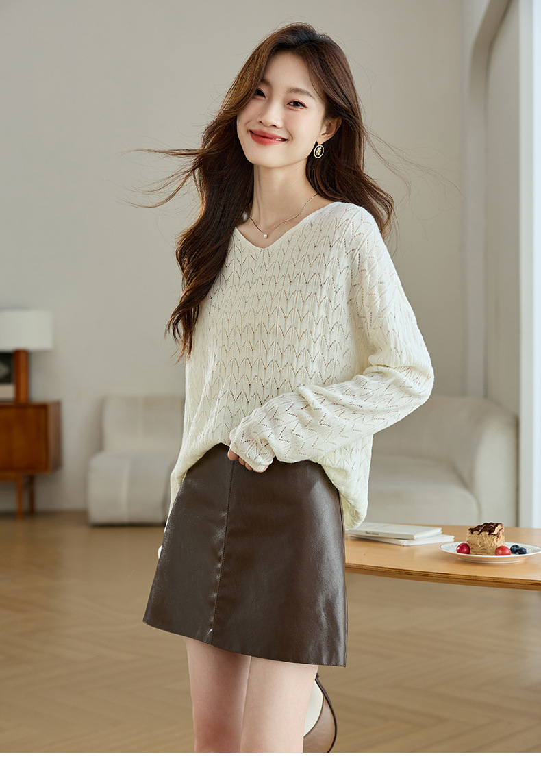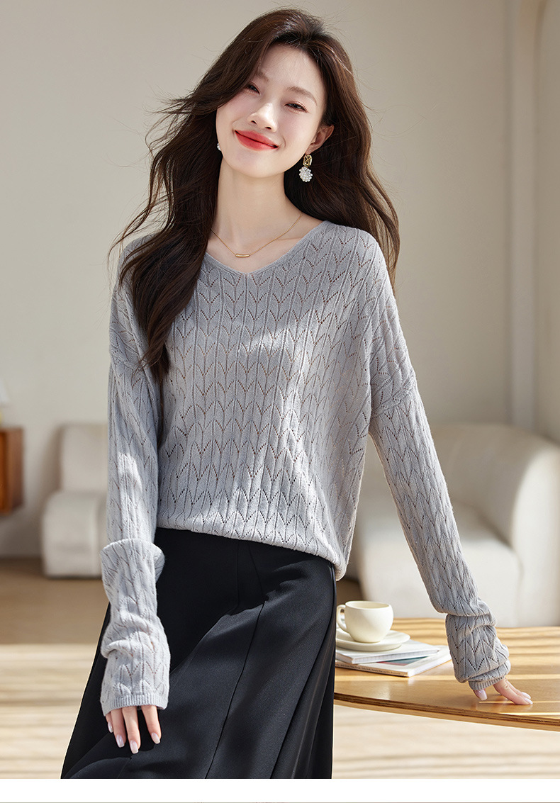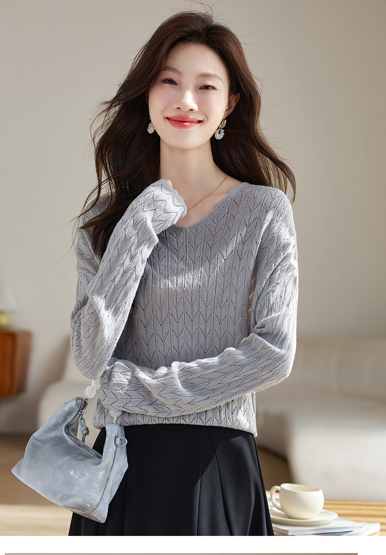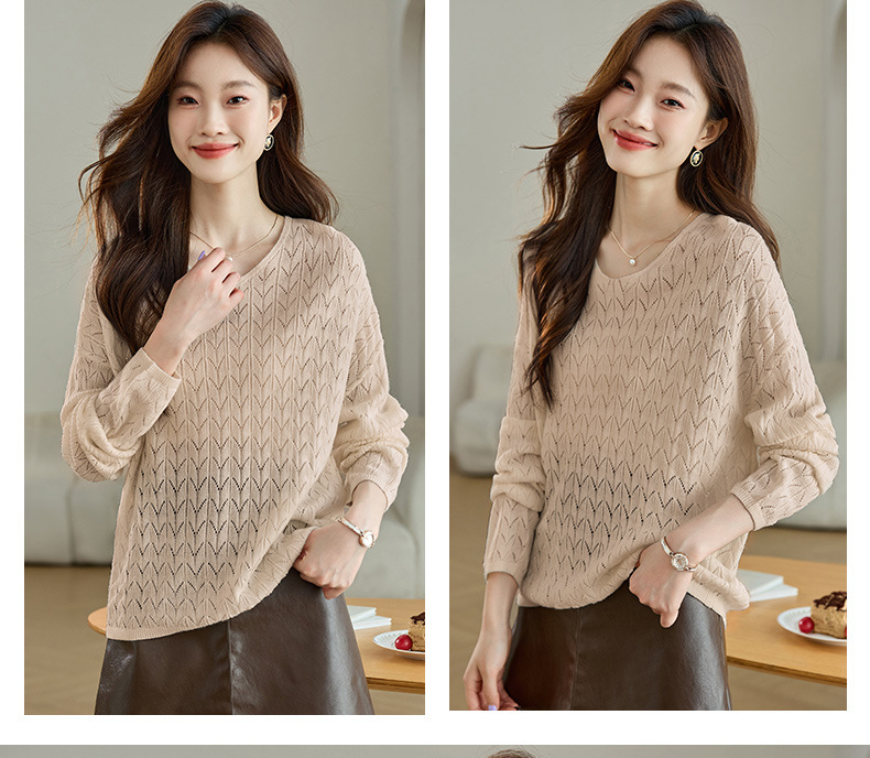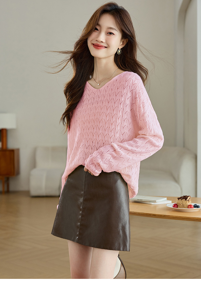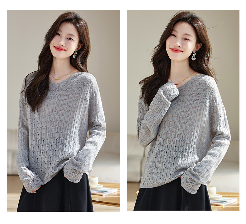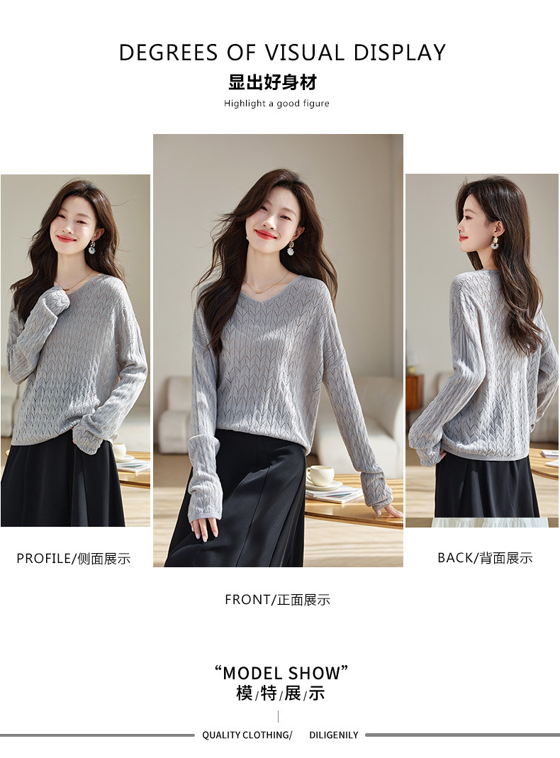 CC-AB1527针织衫女2024新款春秋鸡心领慵懒风遮肚子早秋新款宽松长袖罩衫女