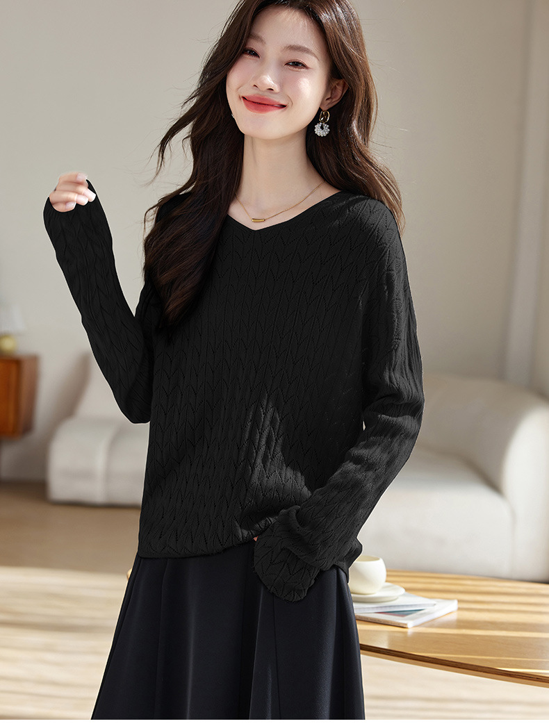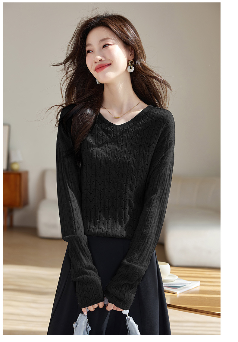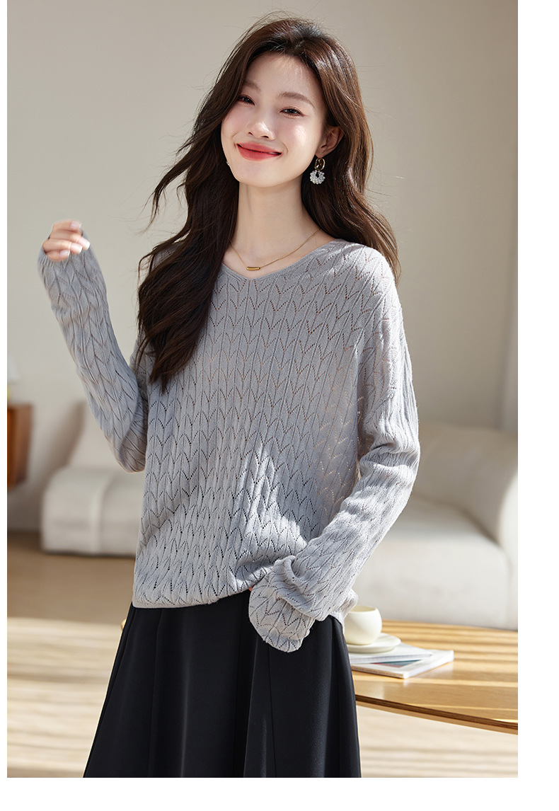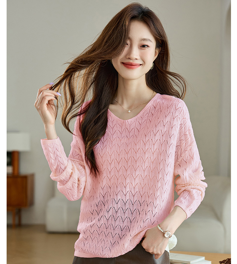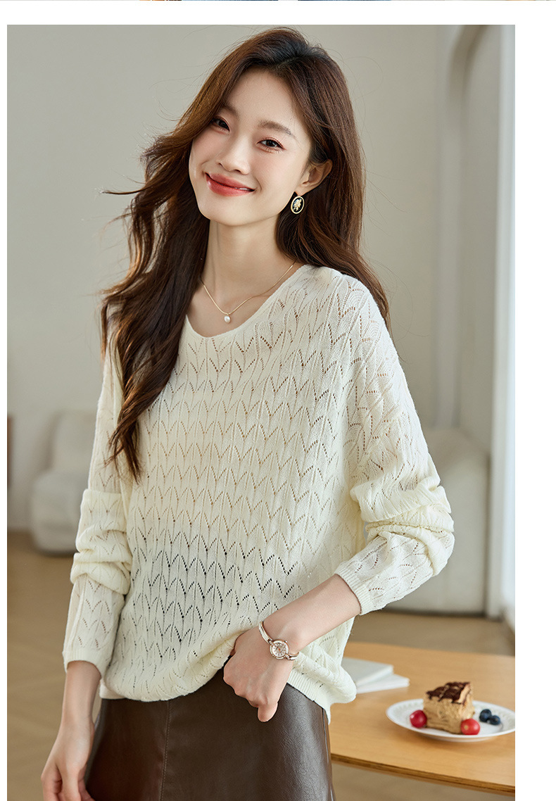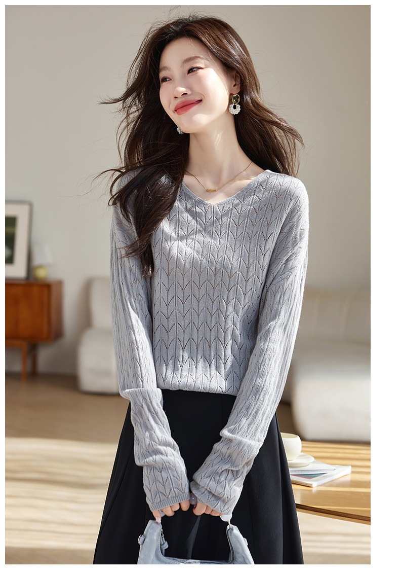 CC-AB1527针织衫女2024新款春秋鸡心领慵懒风遮肚子早秋新款宽松长袖罩衫女