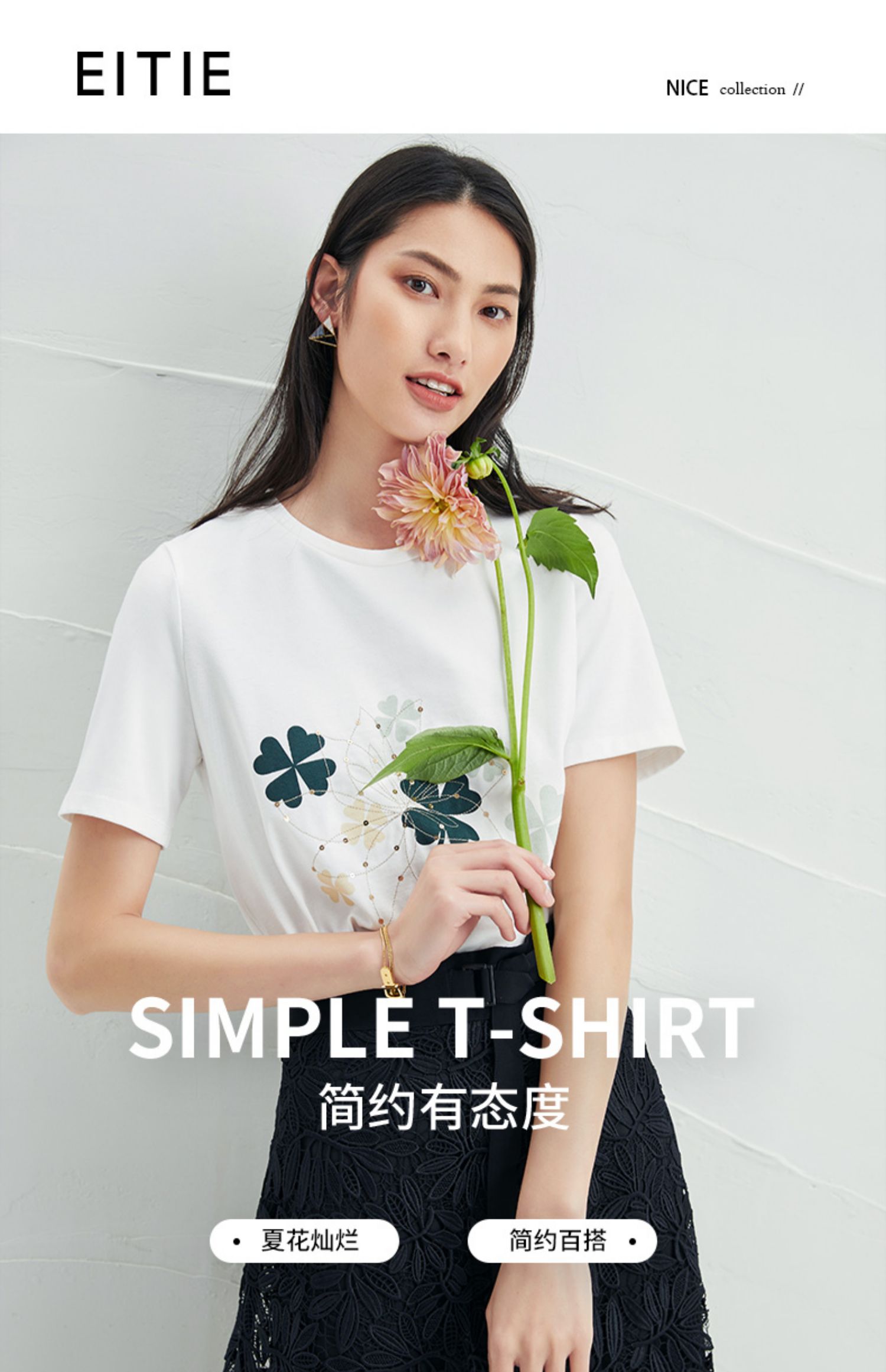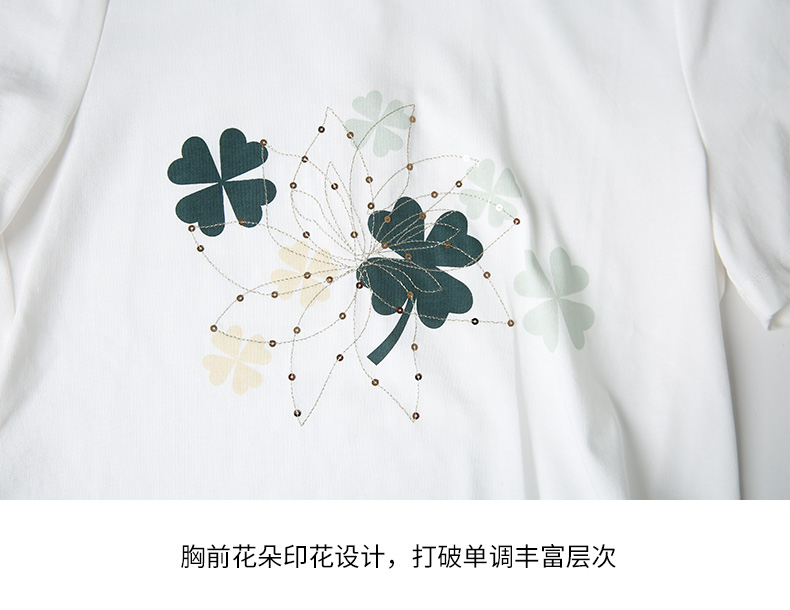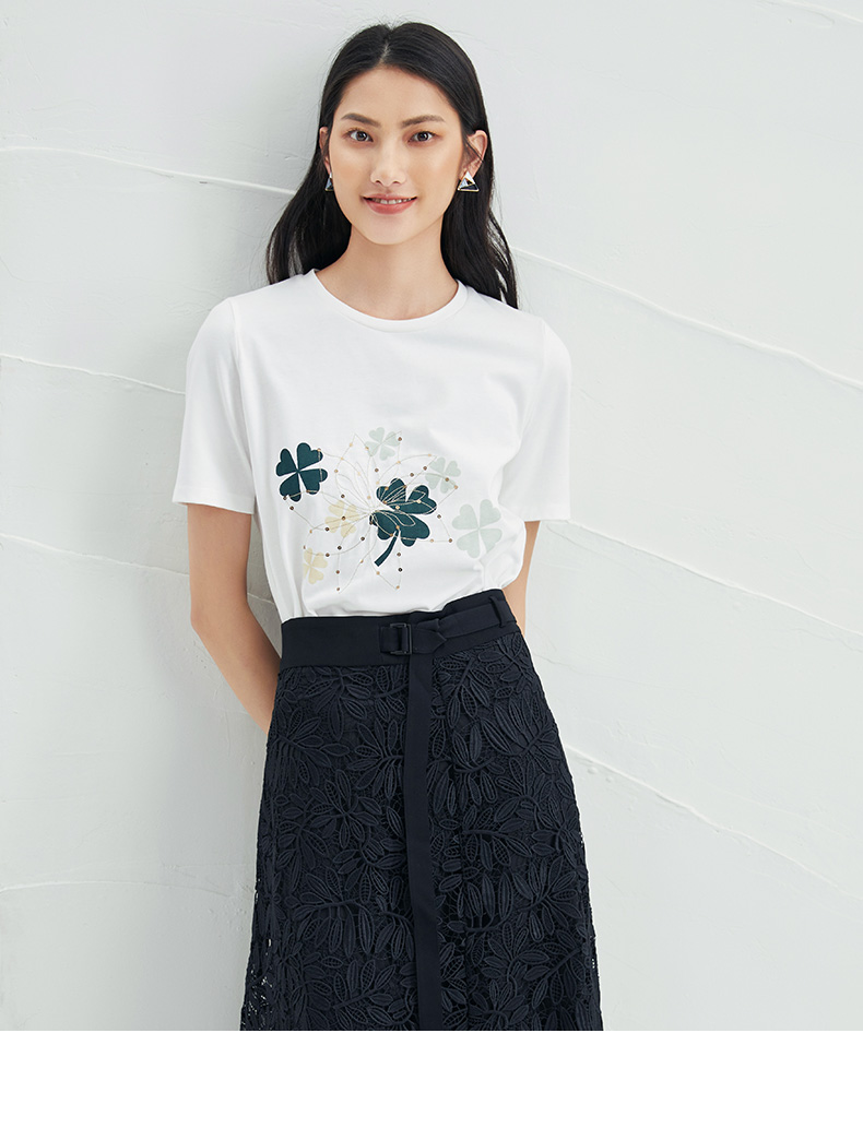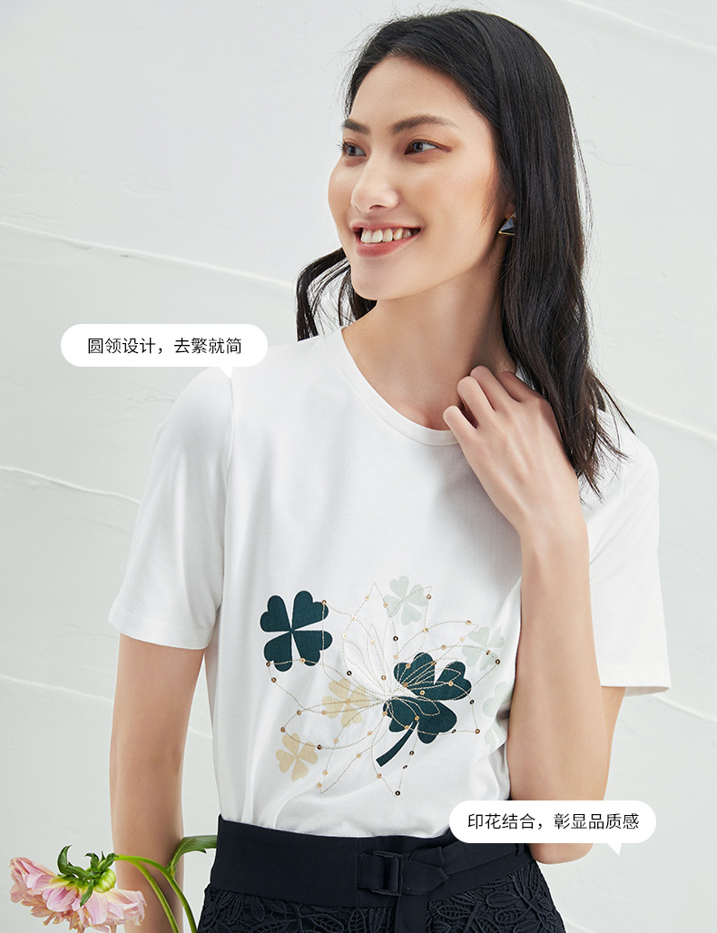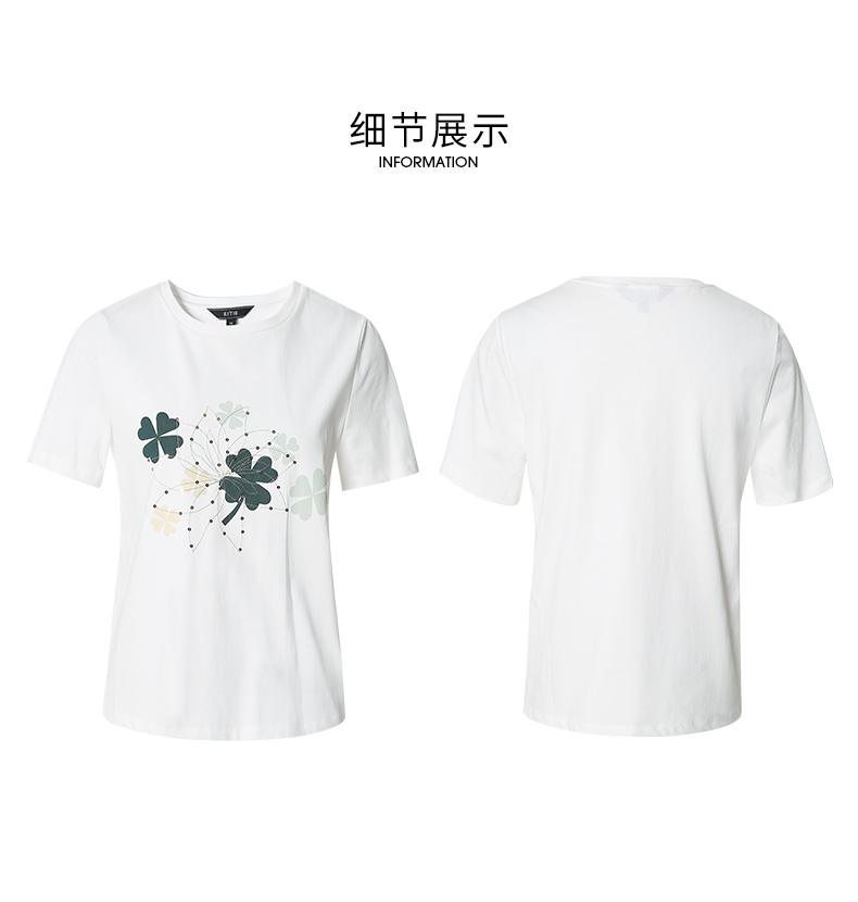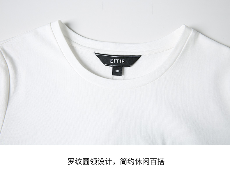 EITIE爱特爱夏季新款时尚舒适纯棉百搭印花圆领白T恤上衣女B2213918