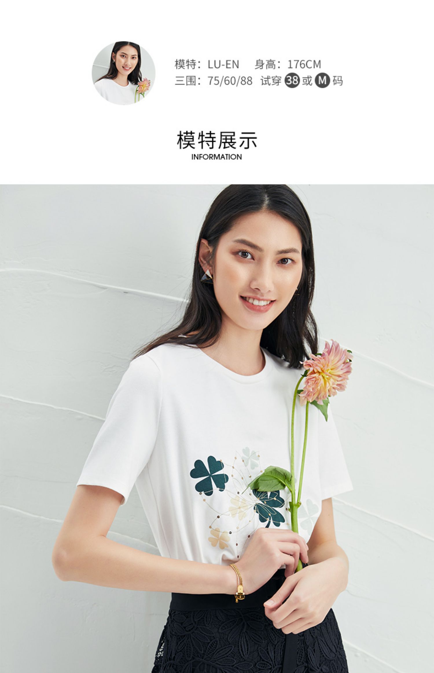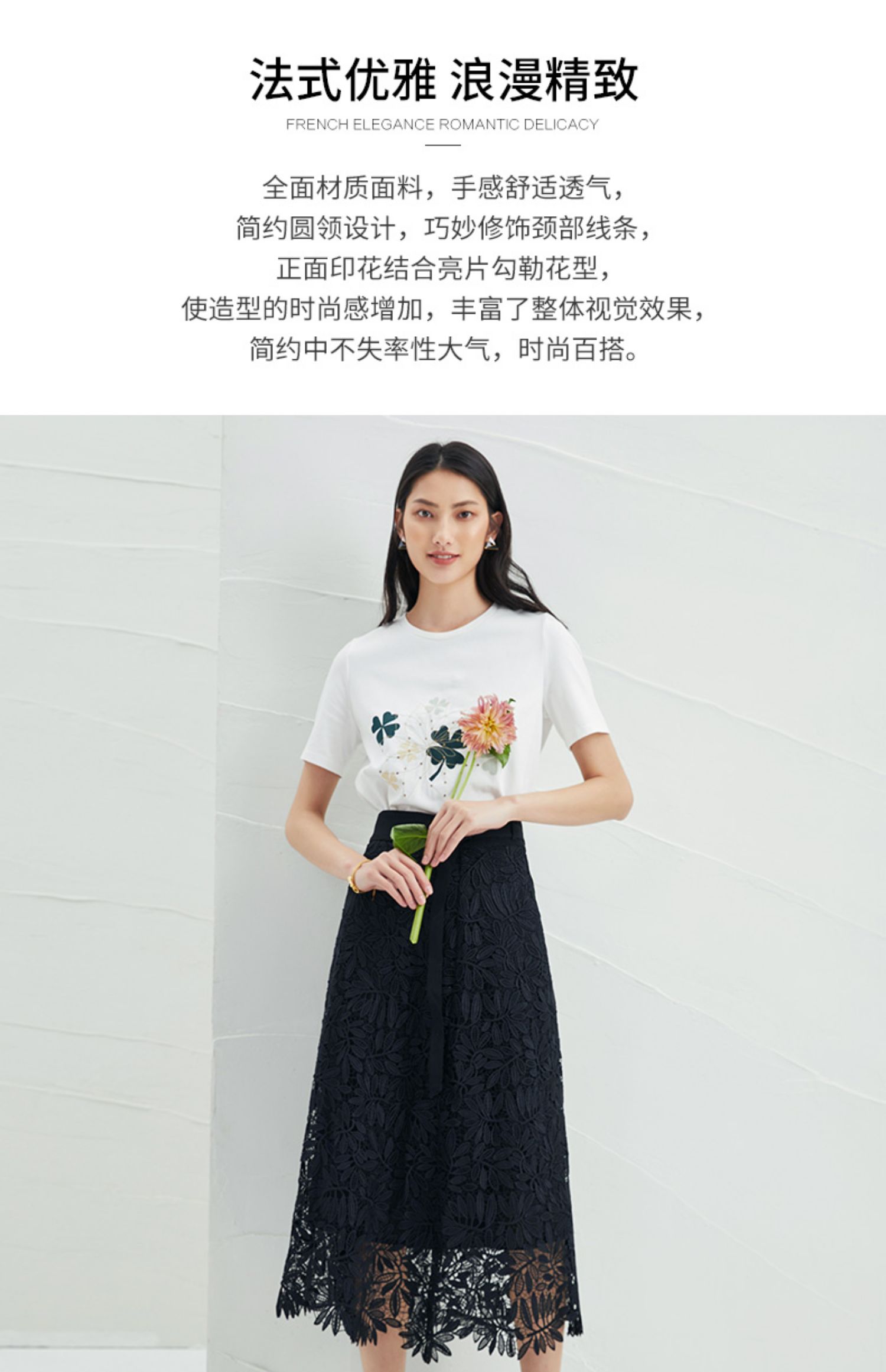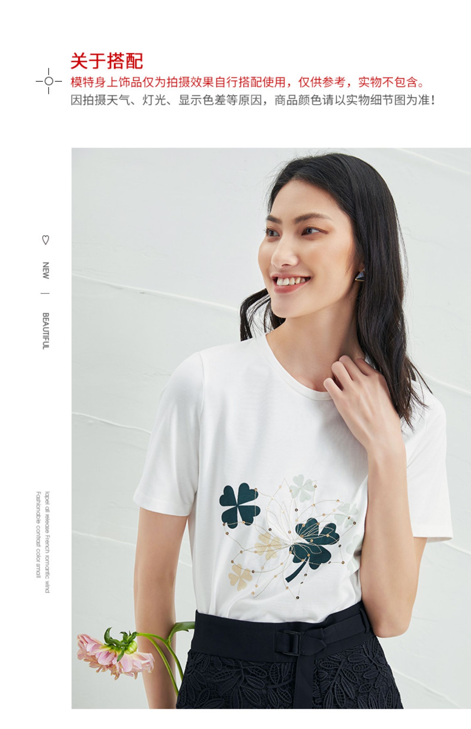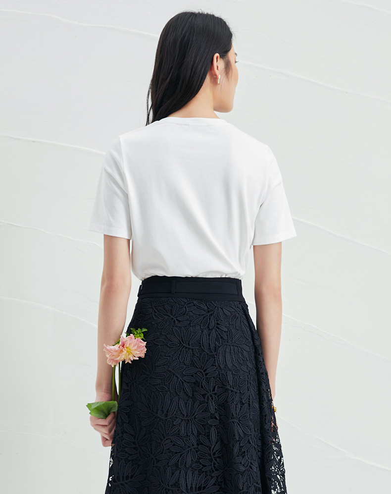 EITIE爱特爱夏季新款时尚舒适纯棉百搭印花圆领白T恤上衣女B2213918