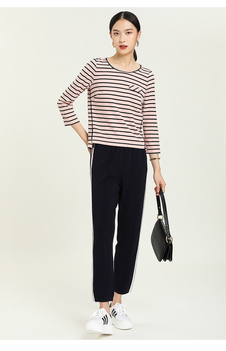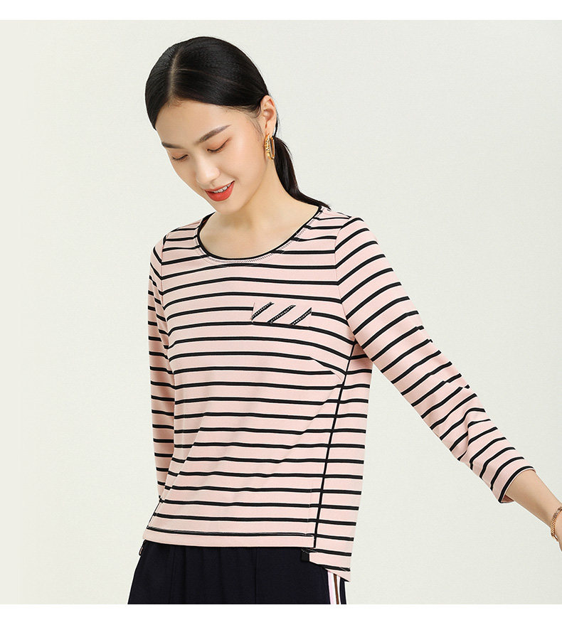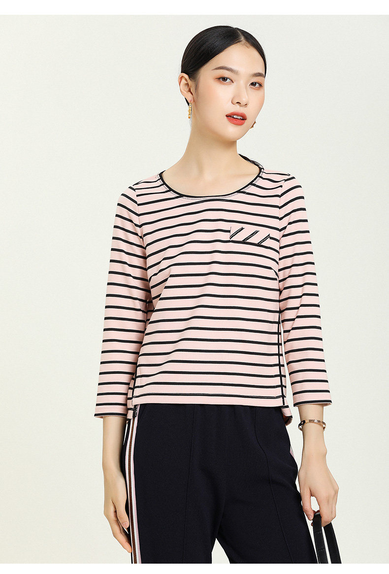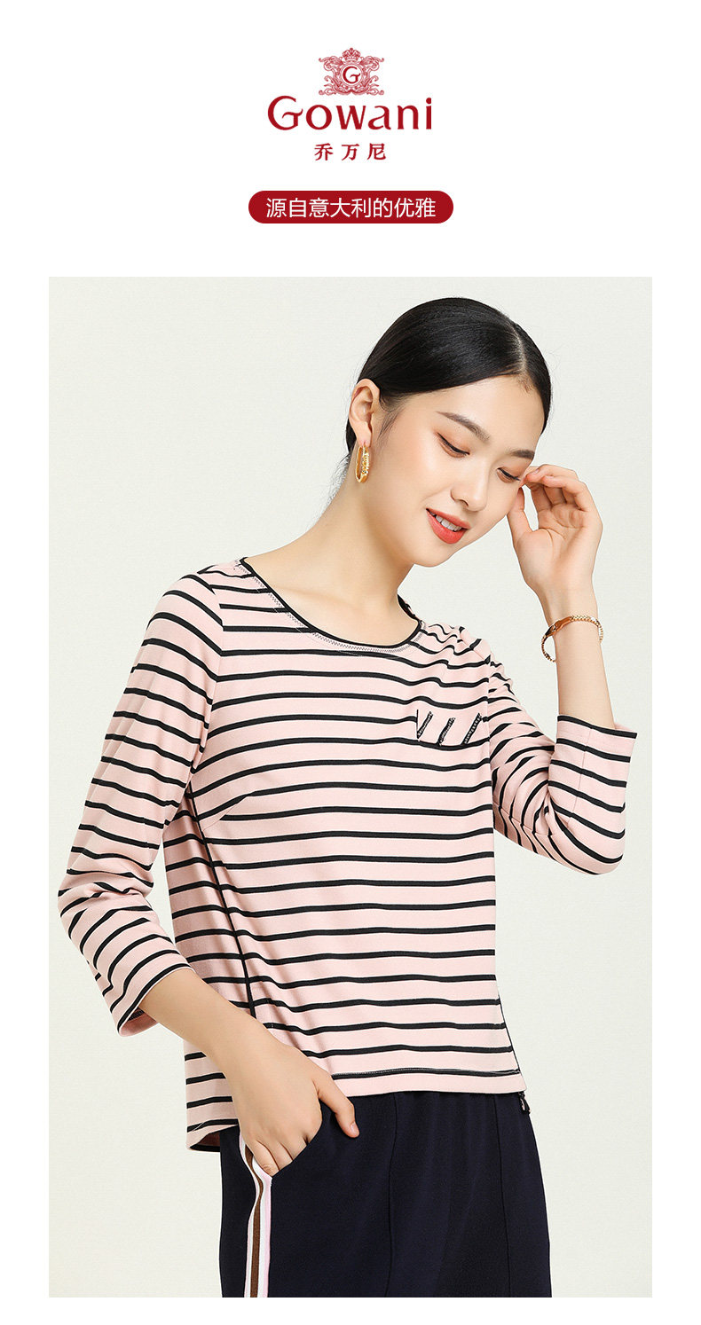 乔万尼秋季圆领七分袖上女显瘦修身条纹气质T恤女EN3C343
