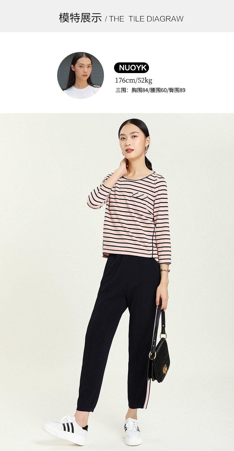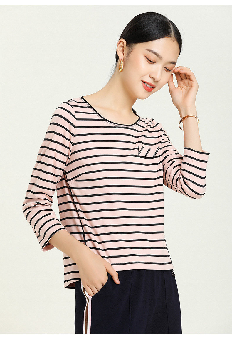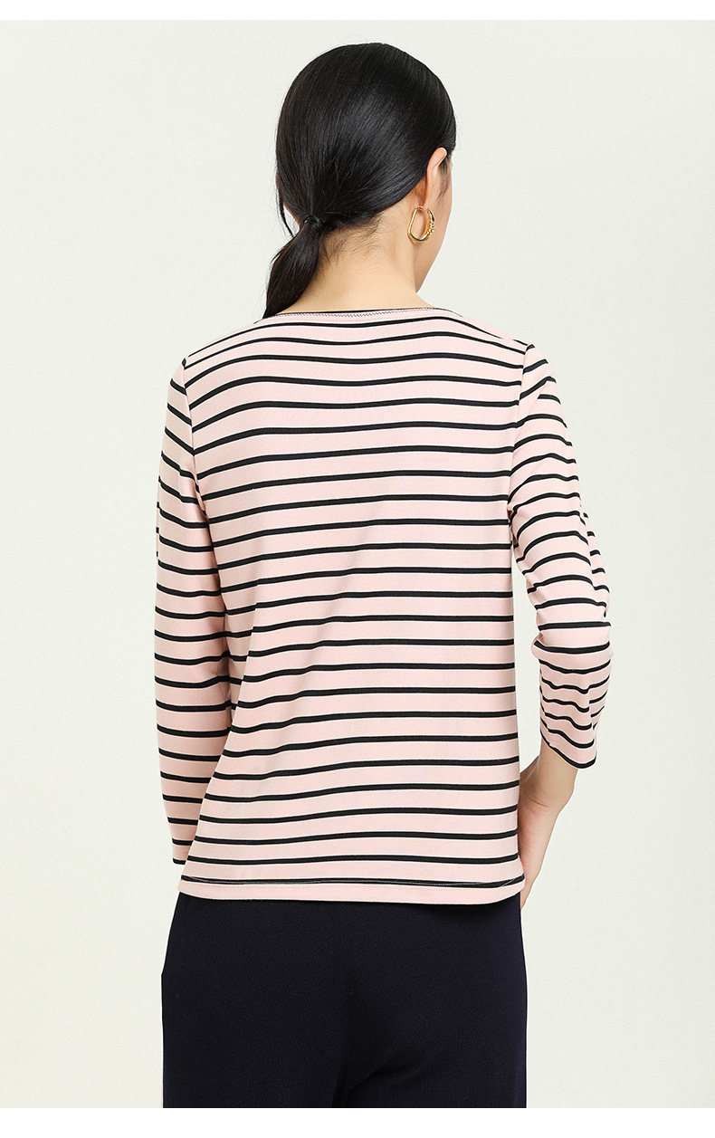 乔万尼秋季圆领七分袖上女显瘦修身条纹气质T恤女EN3C343