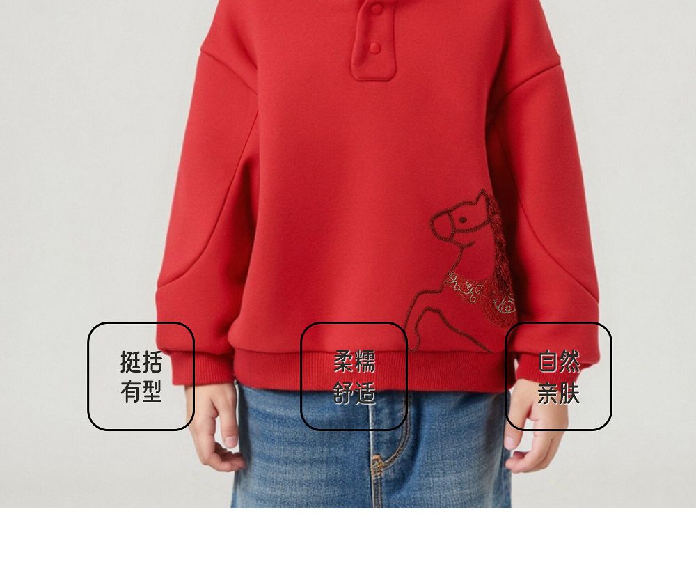 【商场同款】英氏儿童卫衣连帽套头衫针织新年男童男宝宝秋冬新款