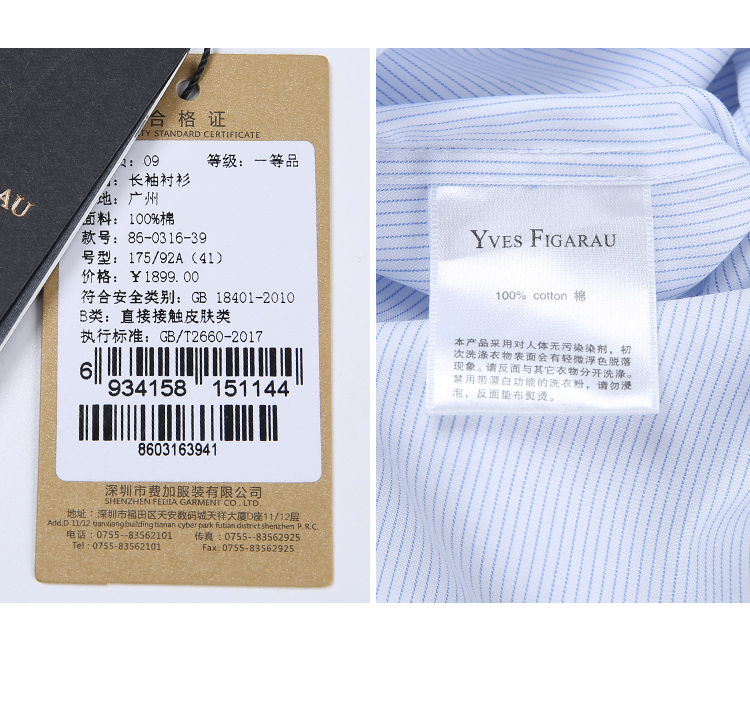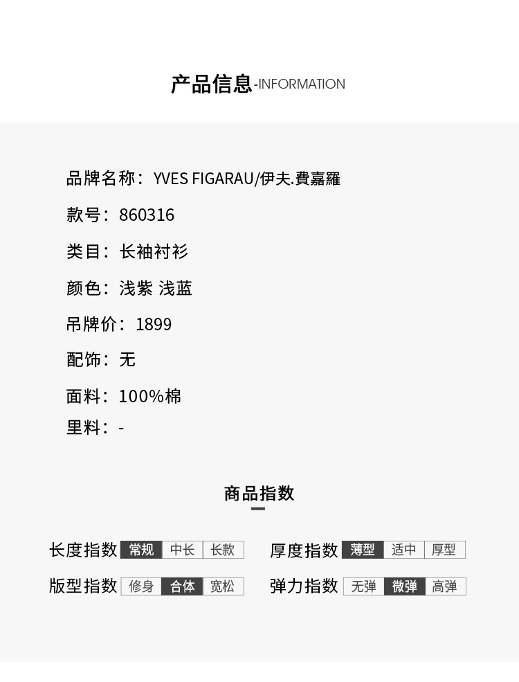 YvesFigarau伊夫·费嘉罗秋冬100%棉商务休闲简约舒适透气长袖衬衫860316