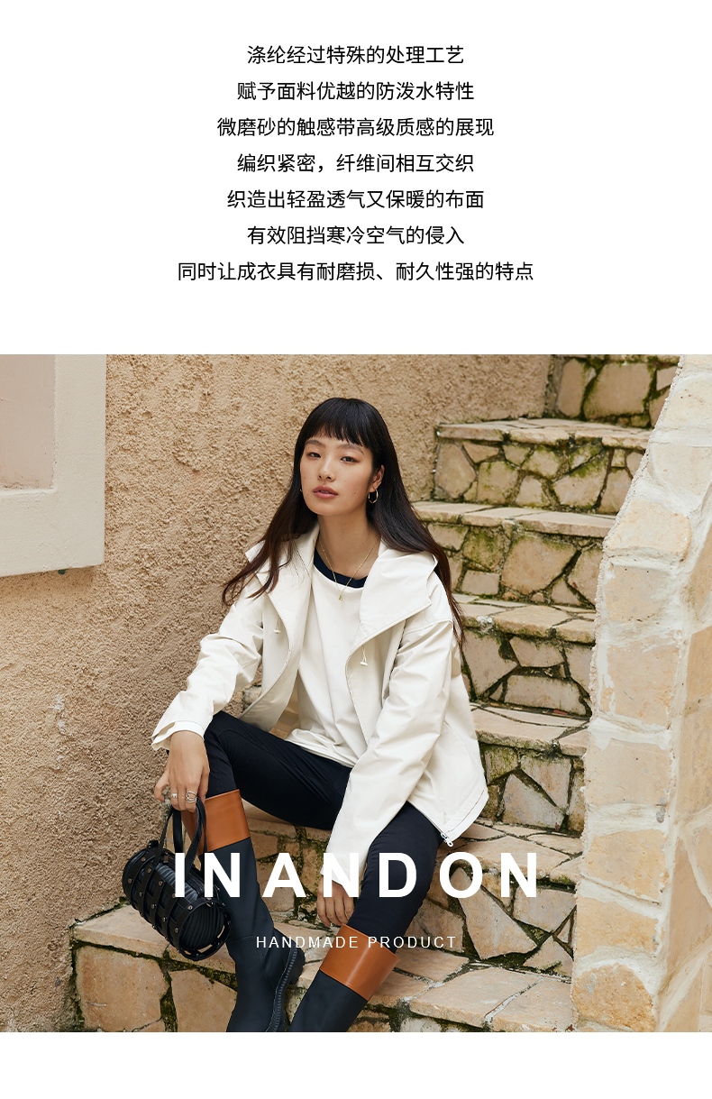 - IN AND ON—轻奢时尚品牌,以“致力于做你衣柜永远不肯丢掉的那一件”作为品牌理念,打造“轻奢时尚”的品牌定位。拥有时尚前沿的商品设计能力并将品质与价值进行完美平衡,致力为消费者提供舒适与奢华、创新与智能的完美购物体验。塑造独立自主的女性形象,让每个人都能拥有属于自己的时尚风格。