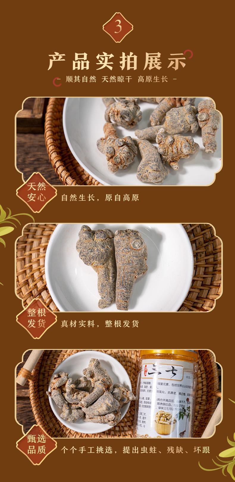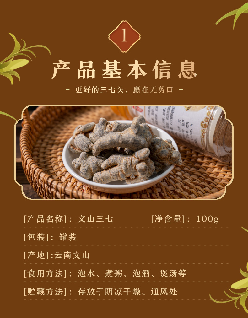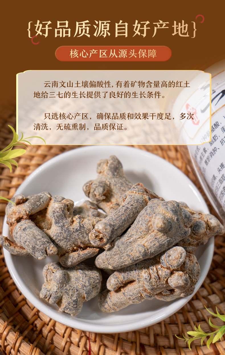 【云南文山三七干货】真材实料 整根发货 根根手工挑选 无硫熏制 品质保证 100g/瓶(40头)