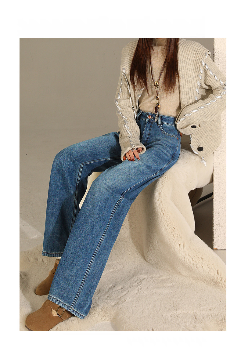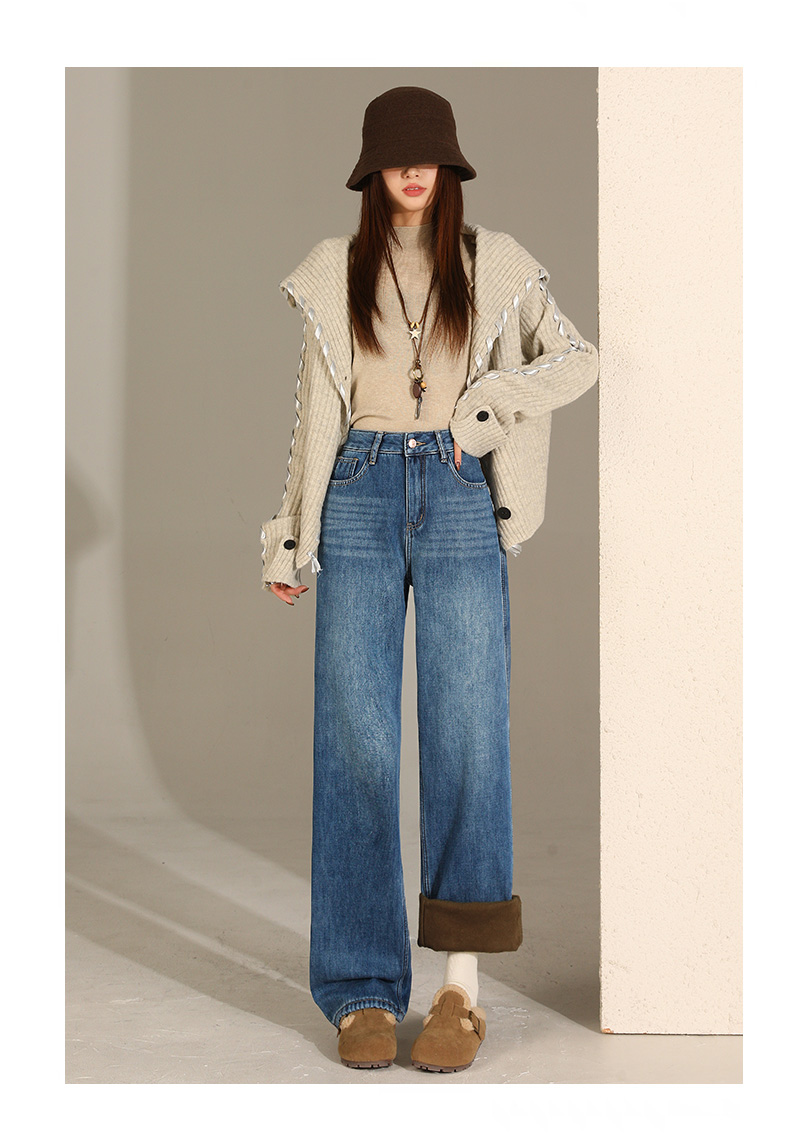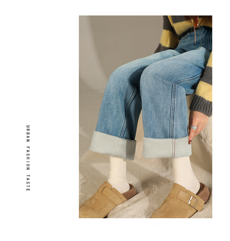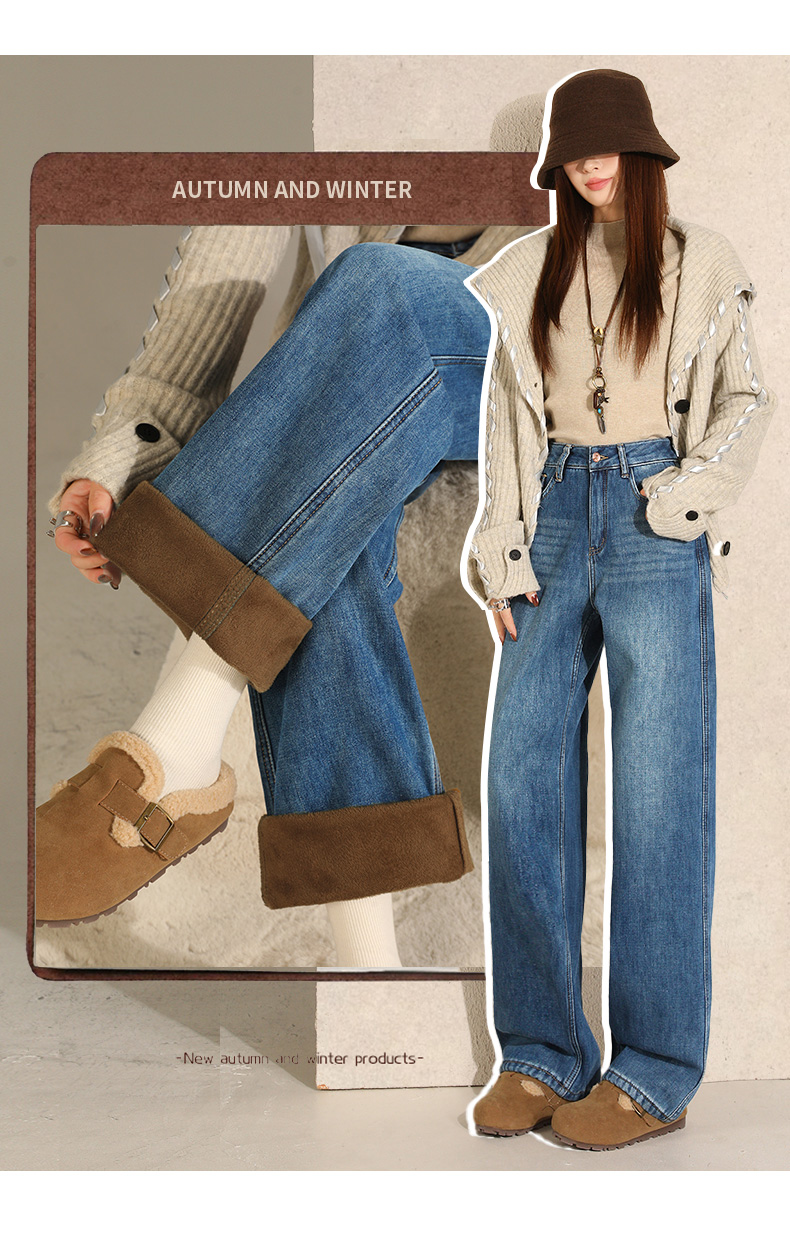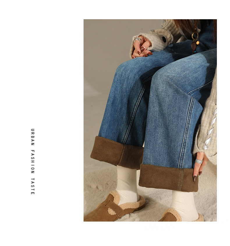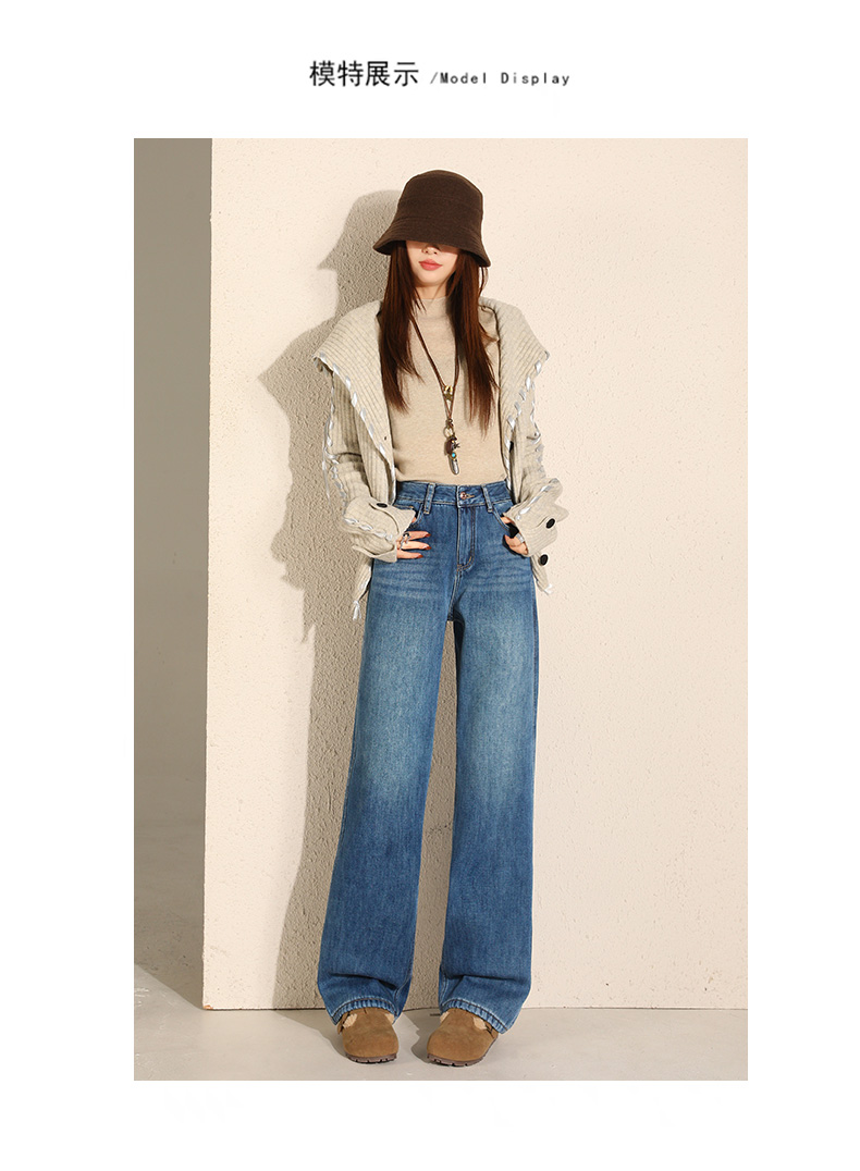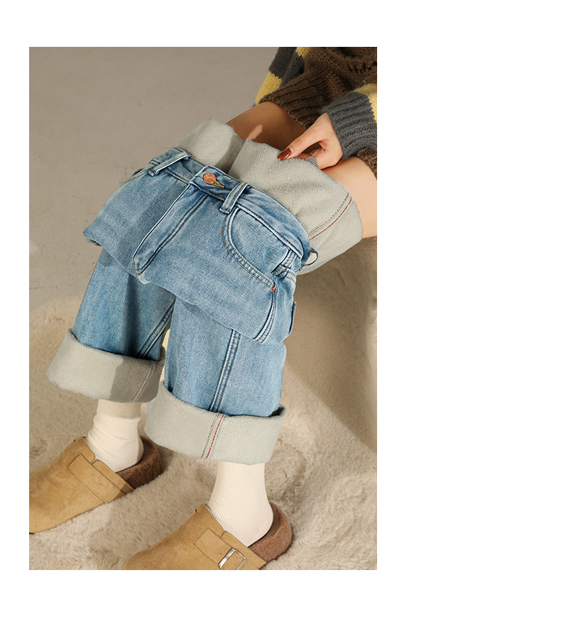 馥迦直筒加绒显瘦窄版阔腿牛仔裤
