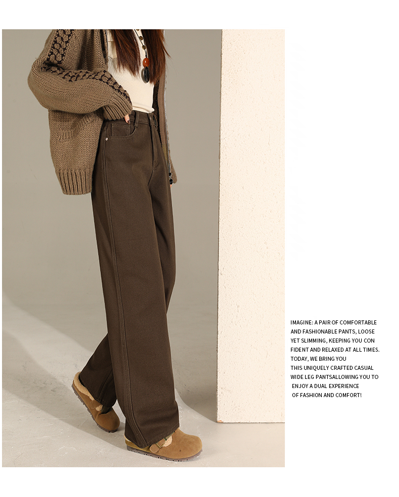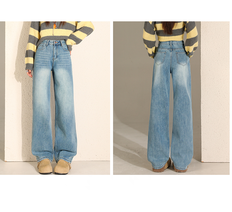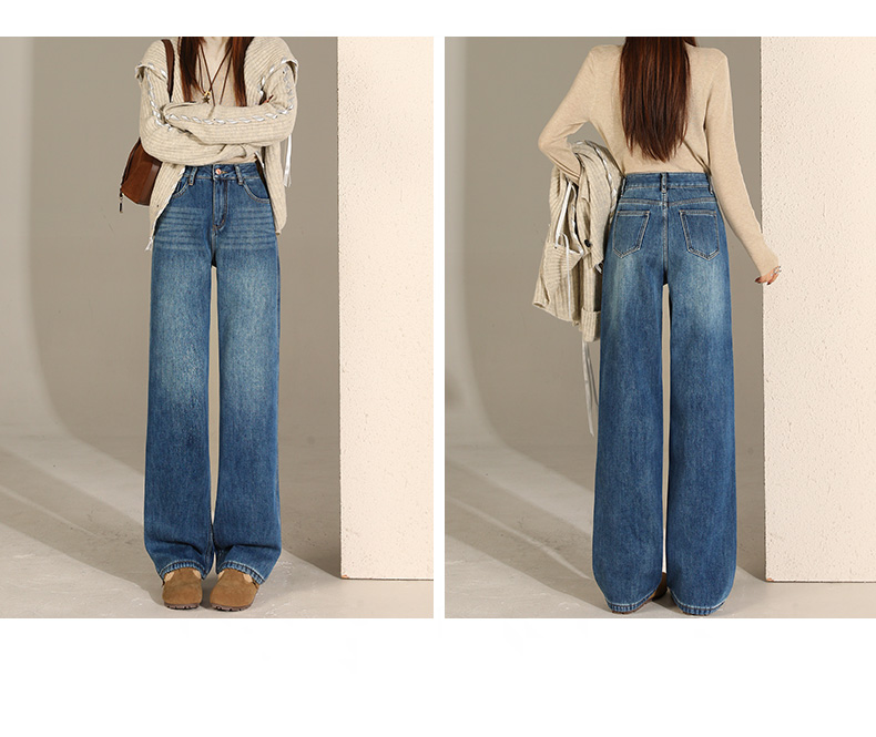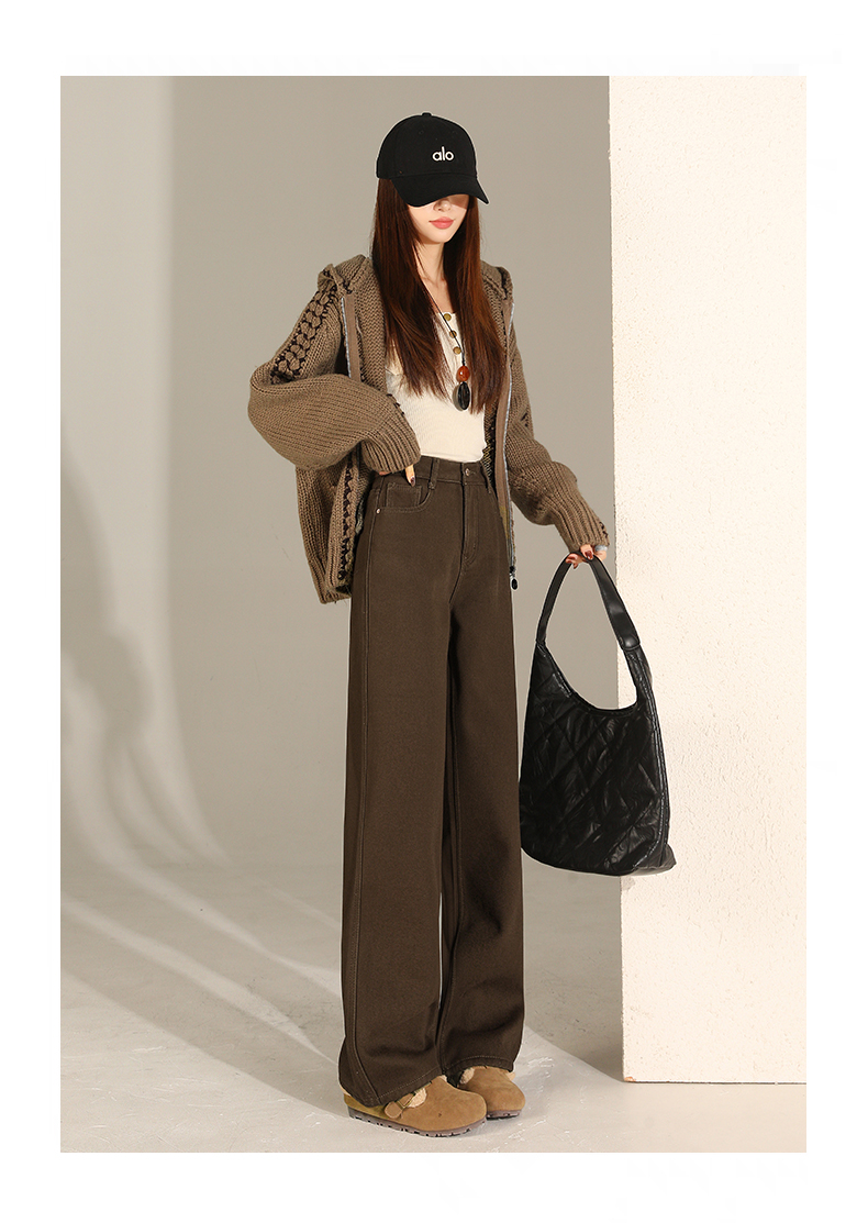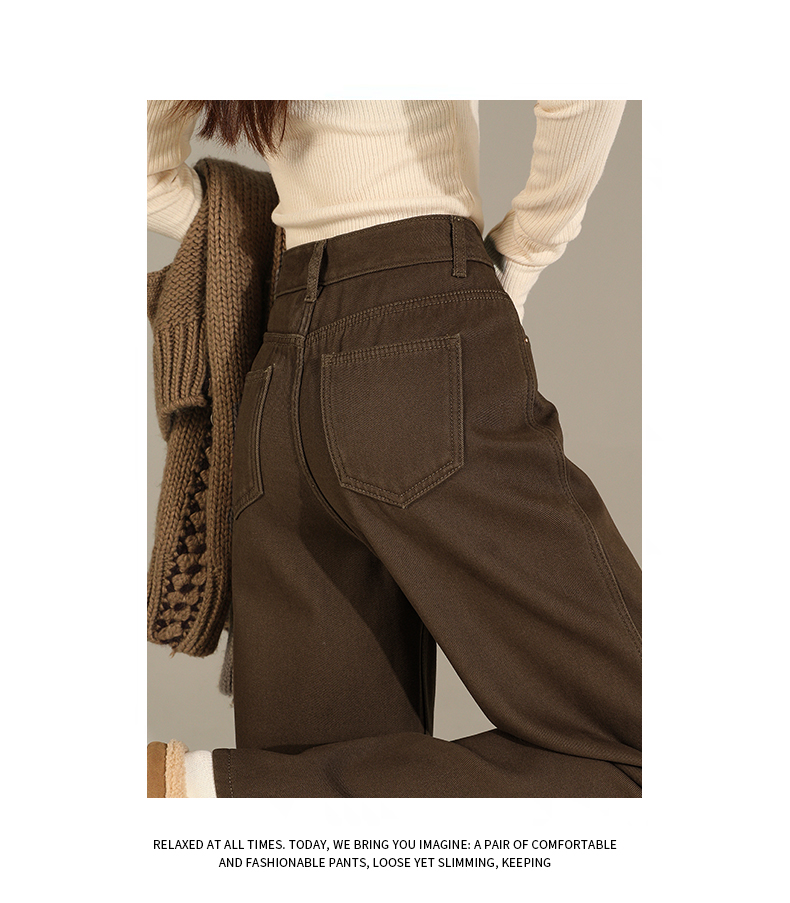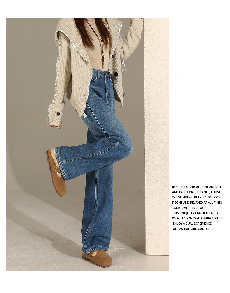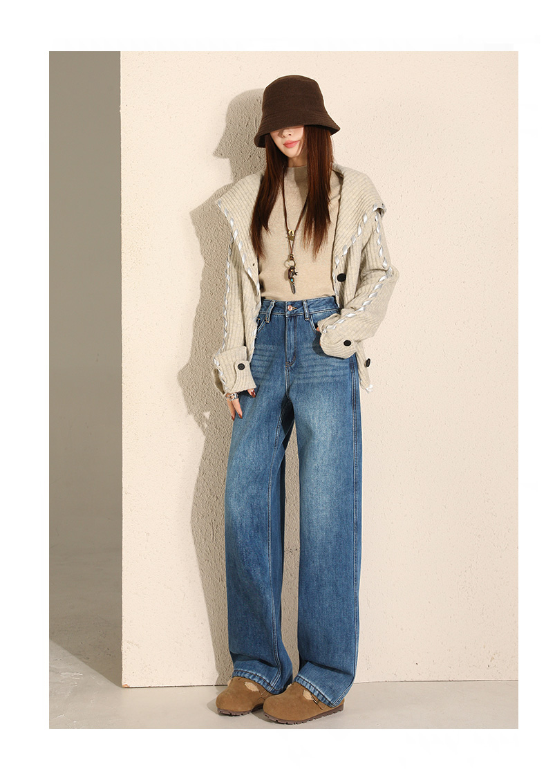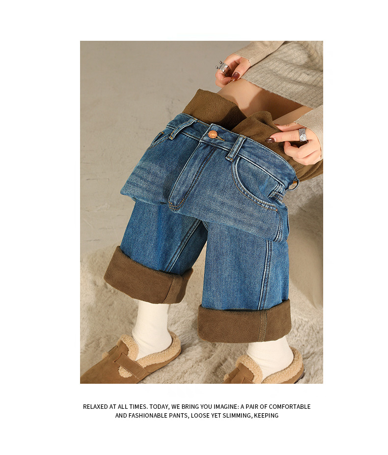 馥迦直筒加绒显瘦窄版阔腿牛仔裤