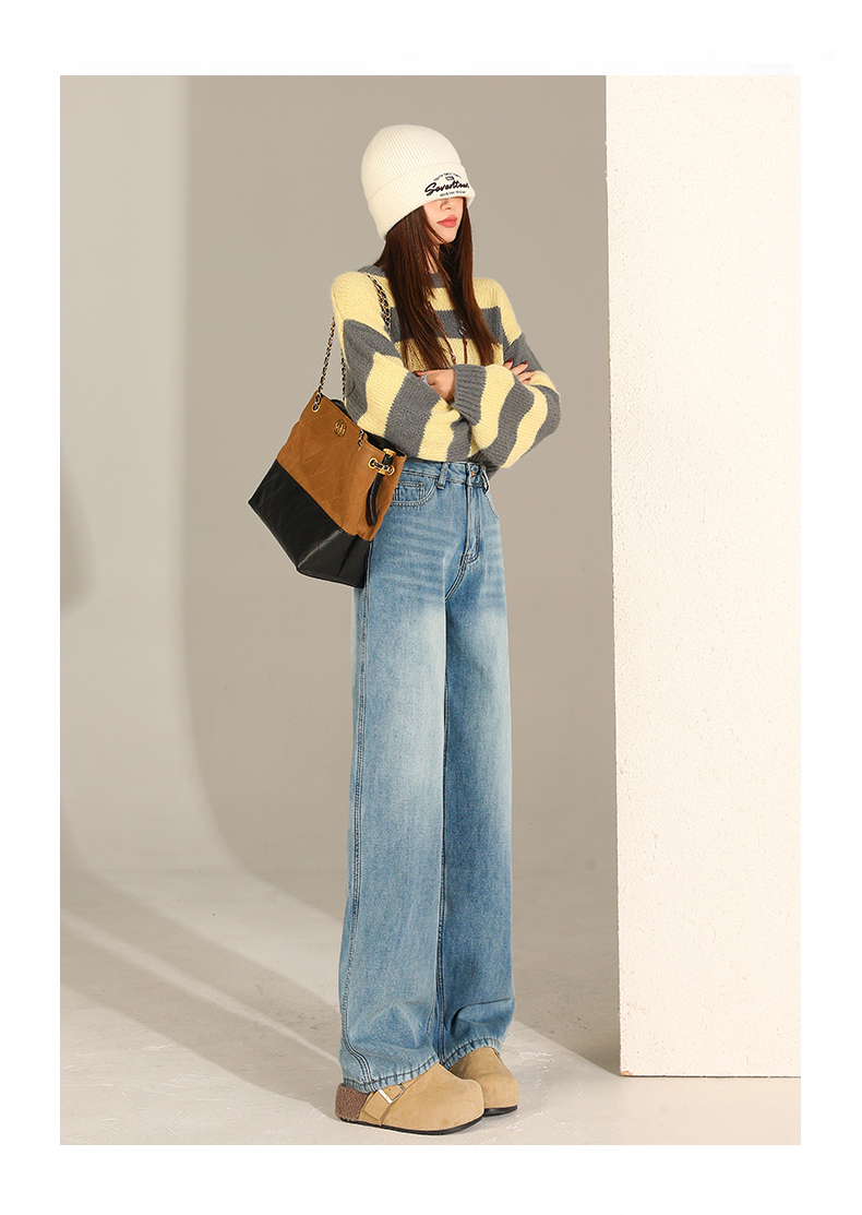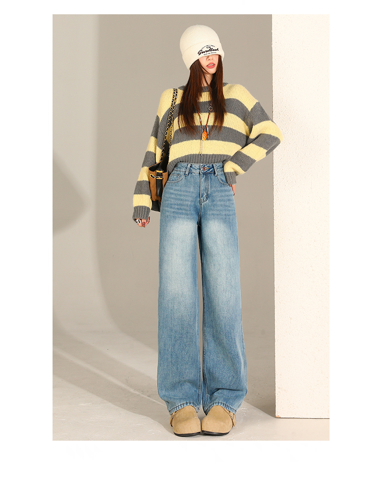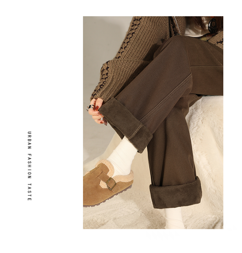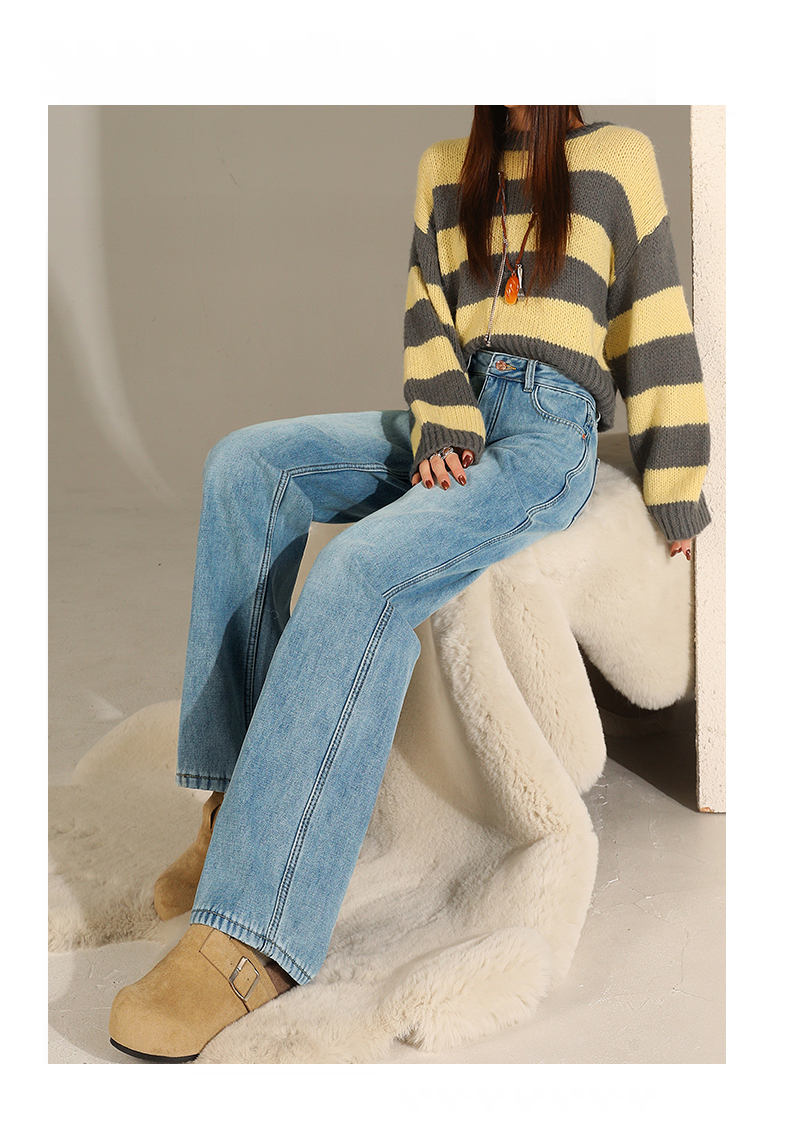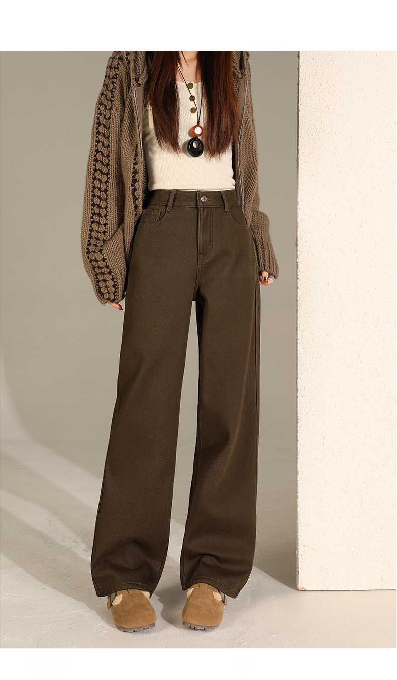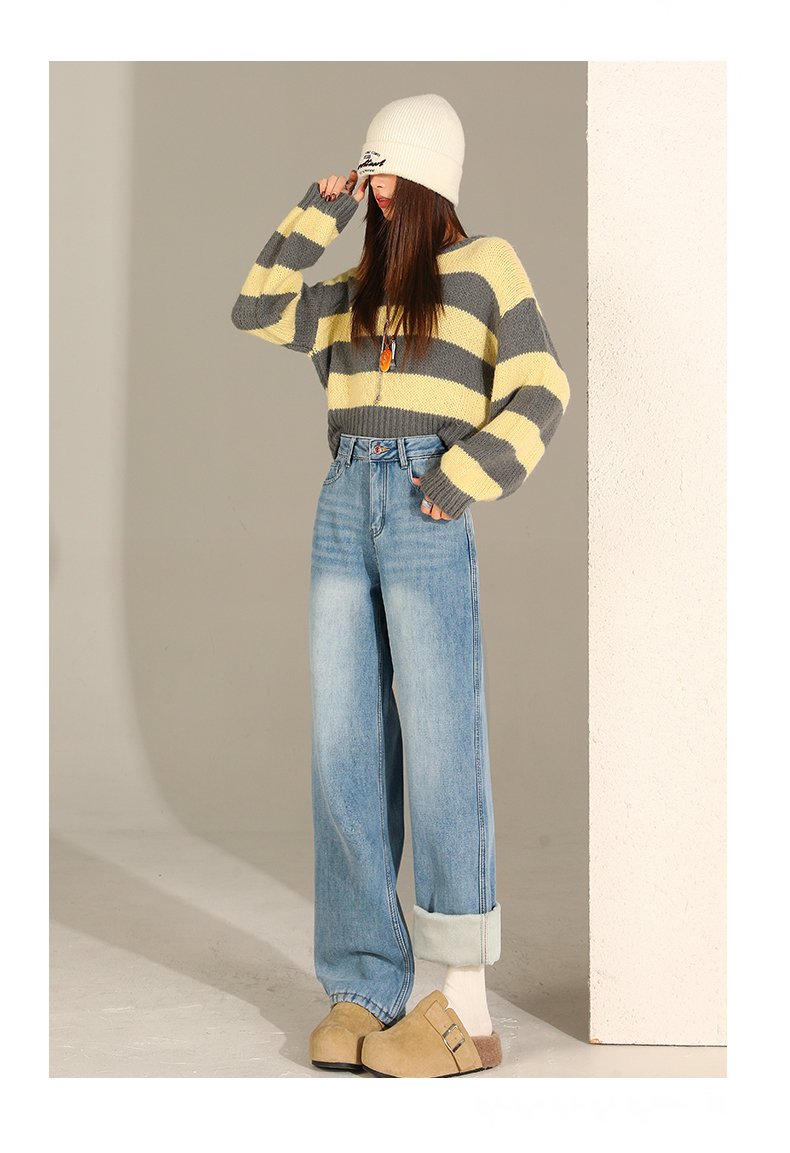 馥迦直筒加绒显瘦窄版阔腿牛仔裤