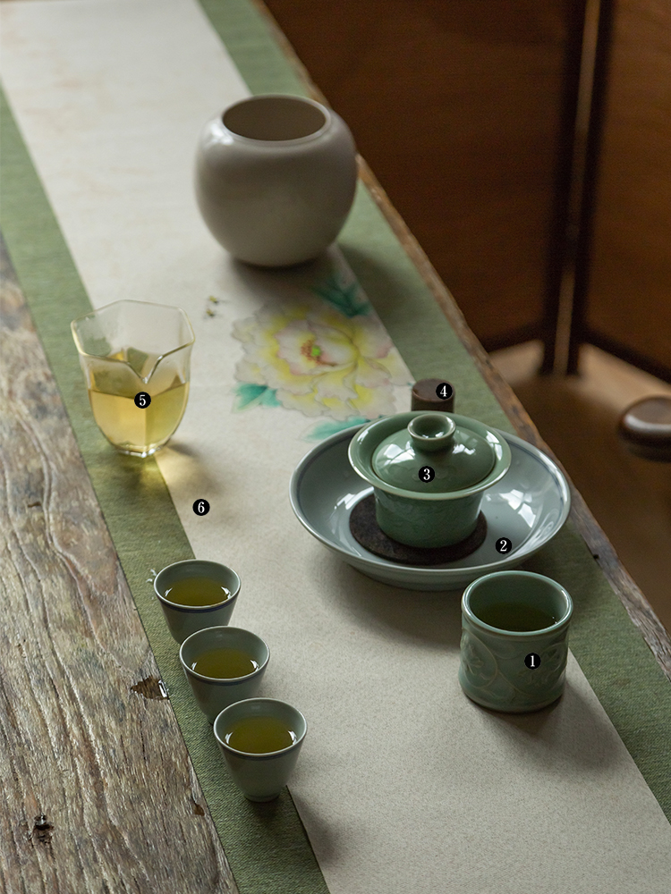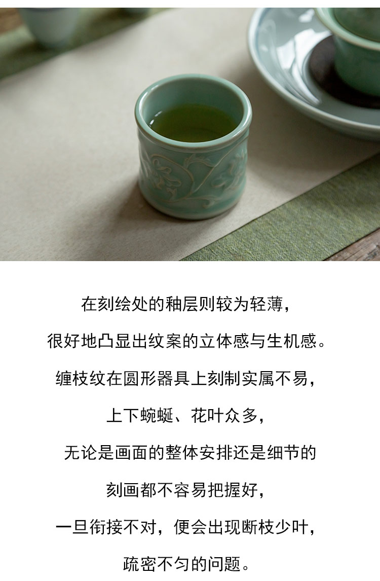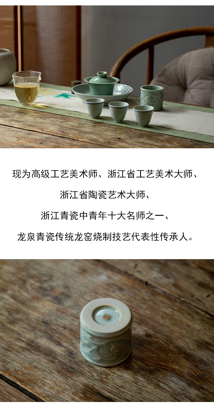 茶香记 陈先明 柴窑粉青 缠枝牡丹杯 古龙窑柴烧 端庄典雅