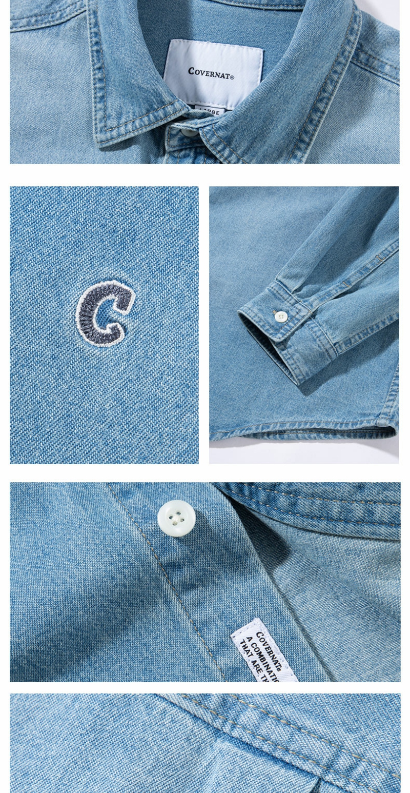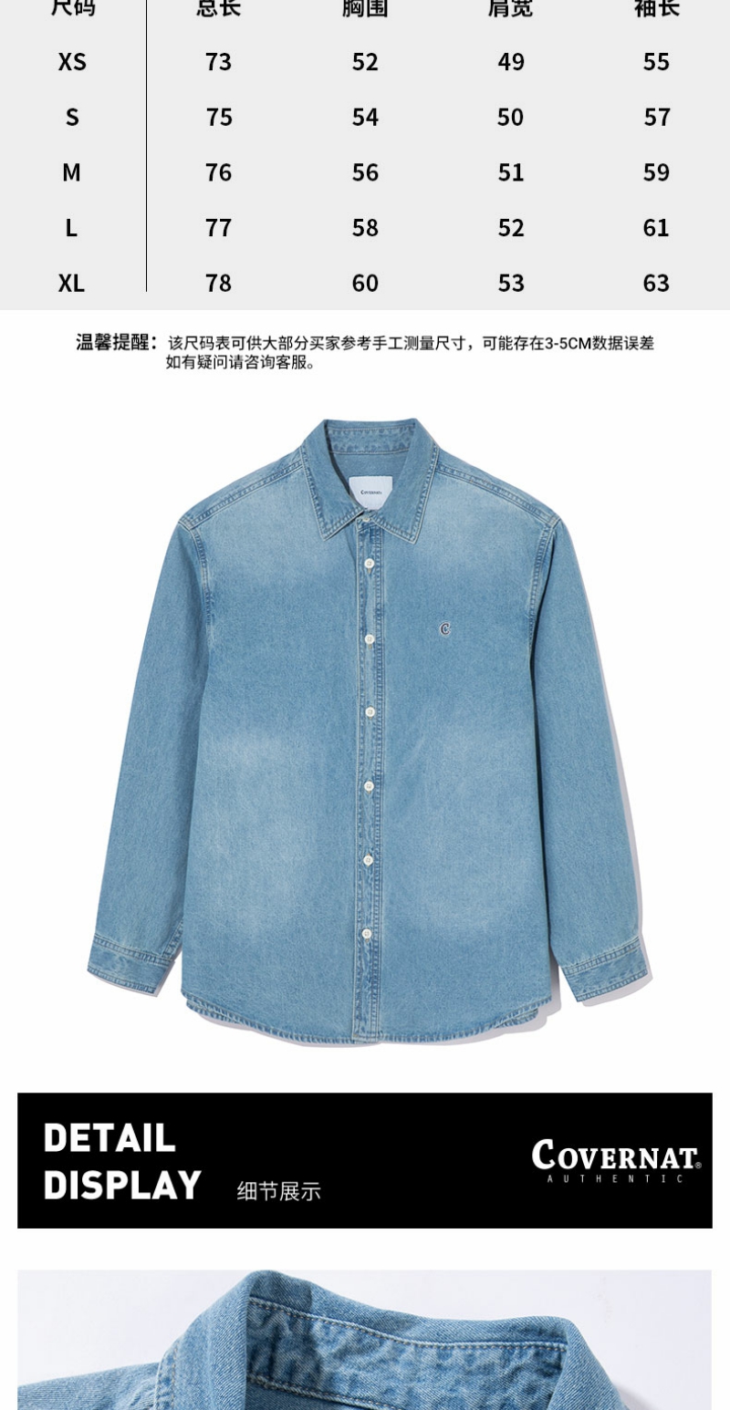 covernat韩国潮流宽松休闲男女同款纯棉半开襟牛仔衬衫24秋冬CO2403SH03