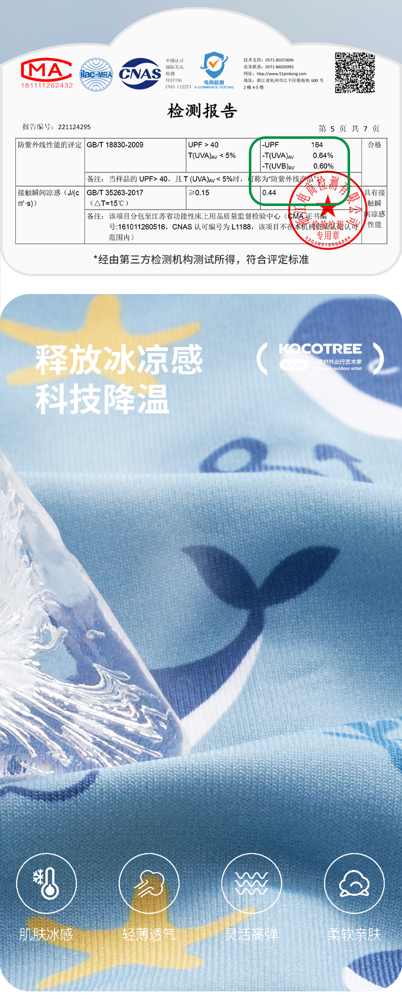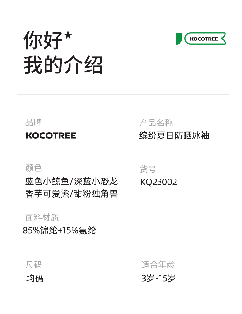 KK树儿童冰袖凉感防晒袖套夏季男女防紫外线套袖轻薄透气宝宝护袖