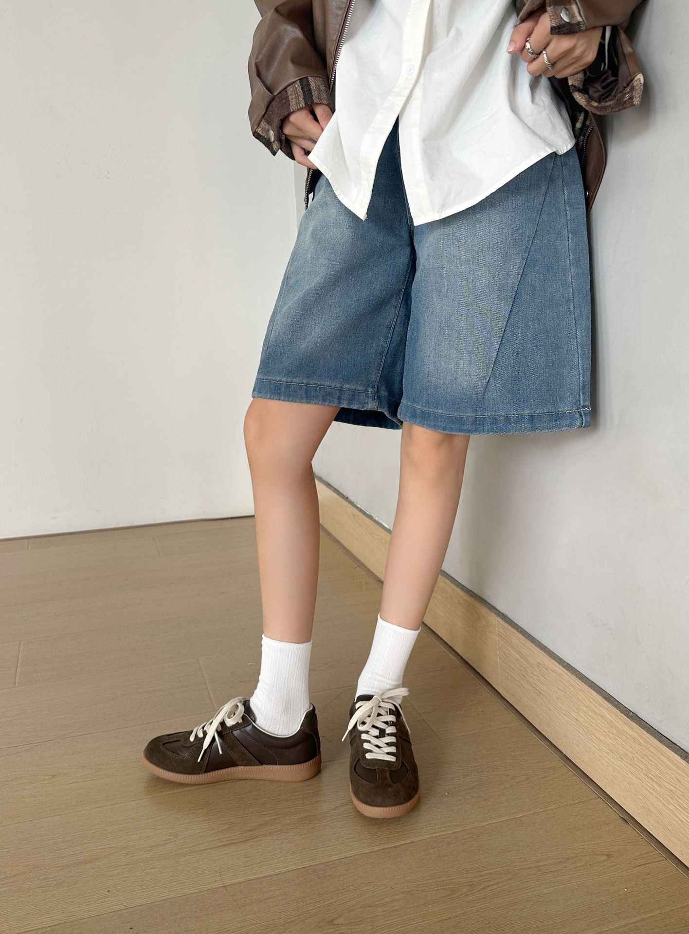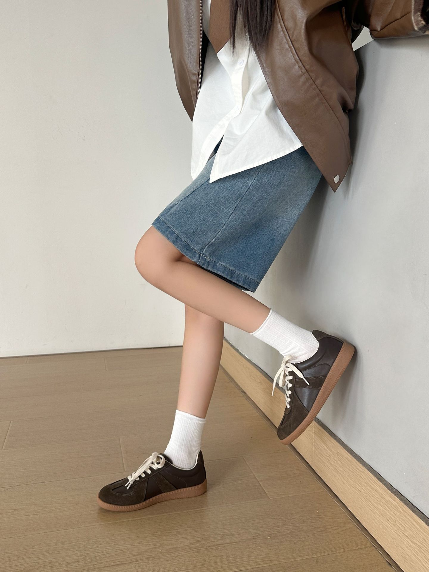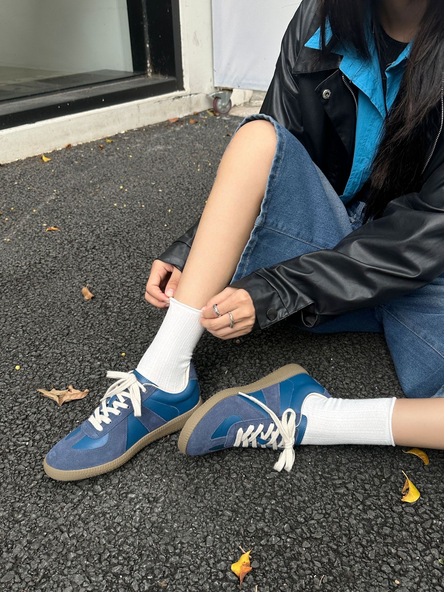 REREJOY 经典复古牛皮系带拼接德训鞋