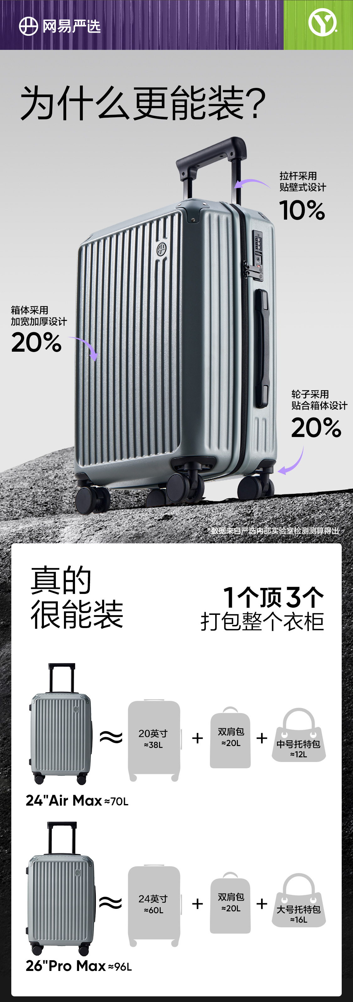 网易严选 24秋冬新品大容量轻便旅行拉杆箱魔方箱