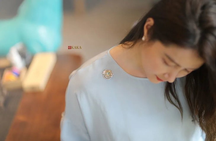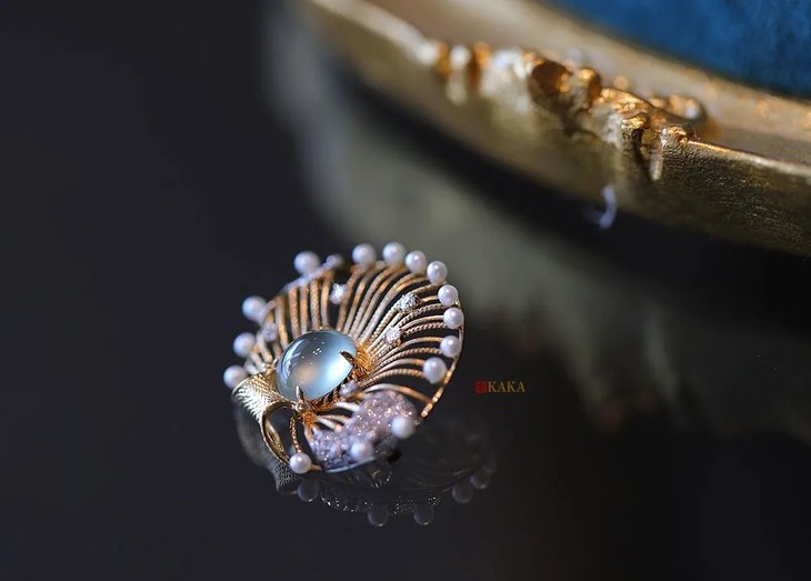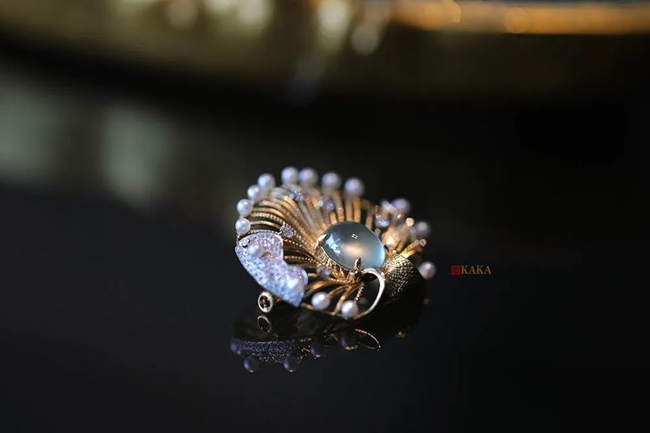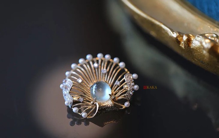 “小超超 ,任务来了。客户女儿名字叫贝壳,想以贝壳为主题做一件胸针挂坠两用款,金尽量轻,整体款式简洁,客户喜欢玫瑰金。”随后一张透亮的冰种翡翠蛋面照片,也传了过来。田老师像以往一样,传达着客户信息。信息寥寥数句,却在之后的设计中给了我很大的空间。