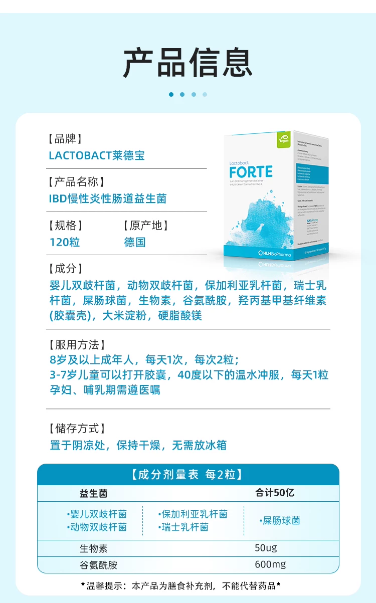 德国Lactobact莱德宝IBD慢性肠道晶球益生菌胶囊谷氨酰胺120粒/盒【德国直邮 下单请提供身份证正反面照片】
