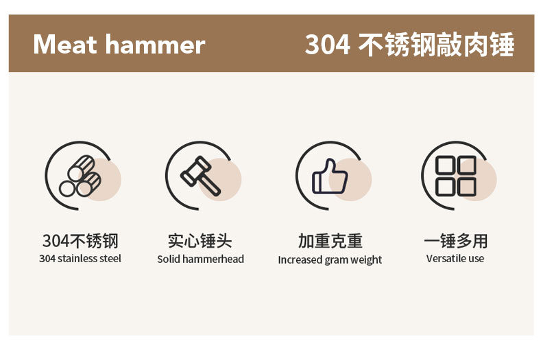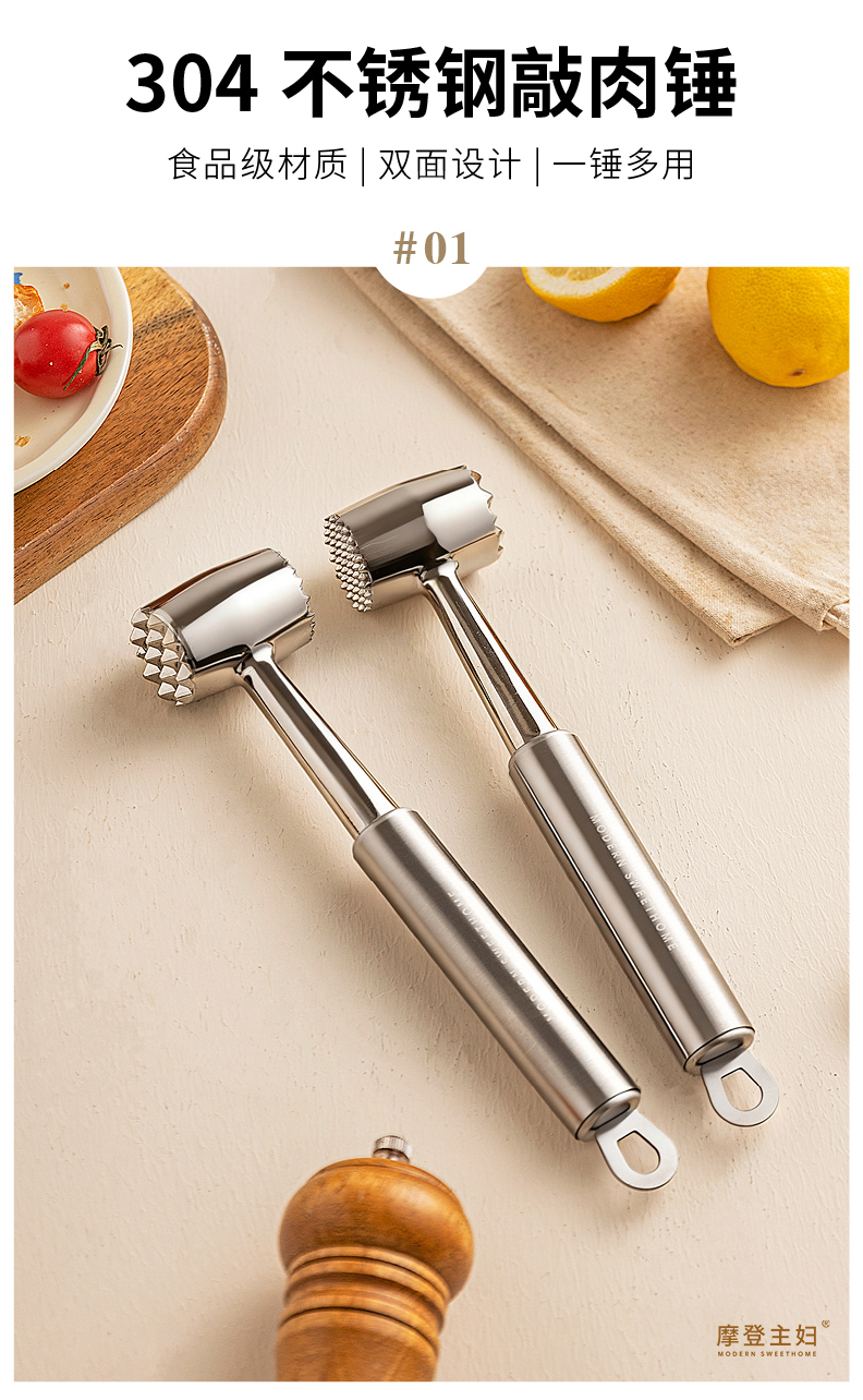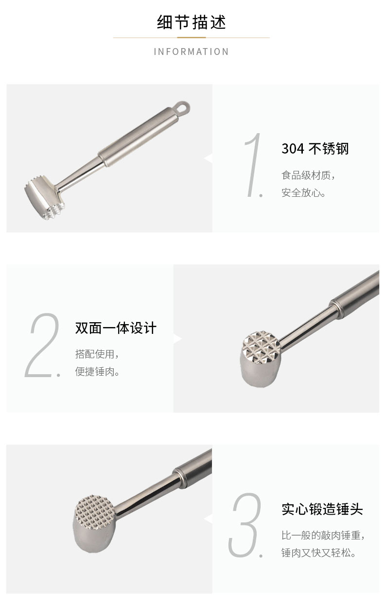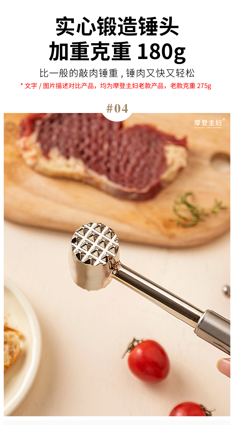 摩登主妇304不锈钢松肉锤大排牛肉捶打锤肉器敲肉锤子牛排专用锤