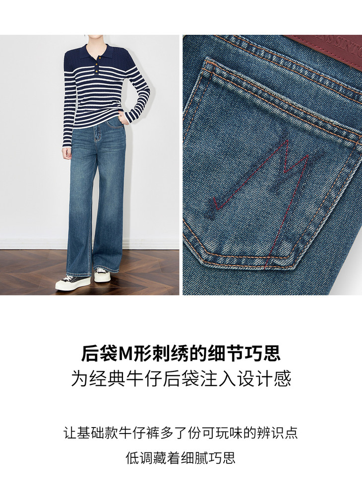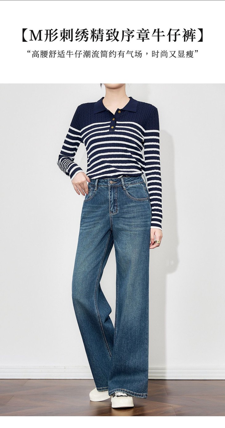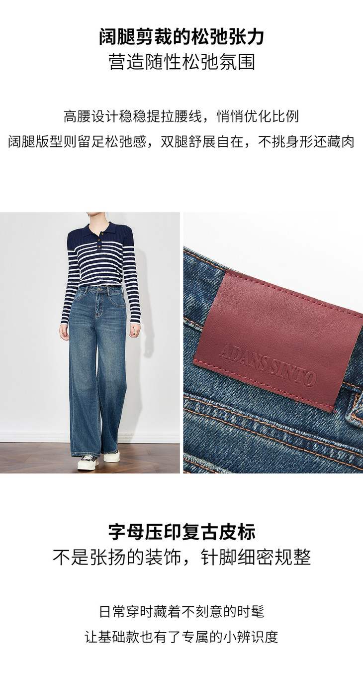 休闲高腰阔腿裤四面弹,洗水天丝牛仔经典牛仔裤WLZD-2511302