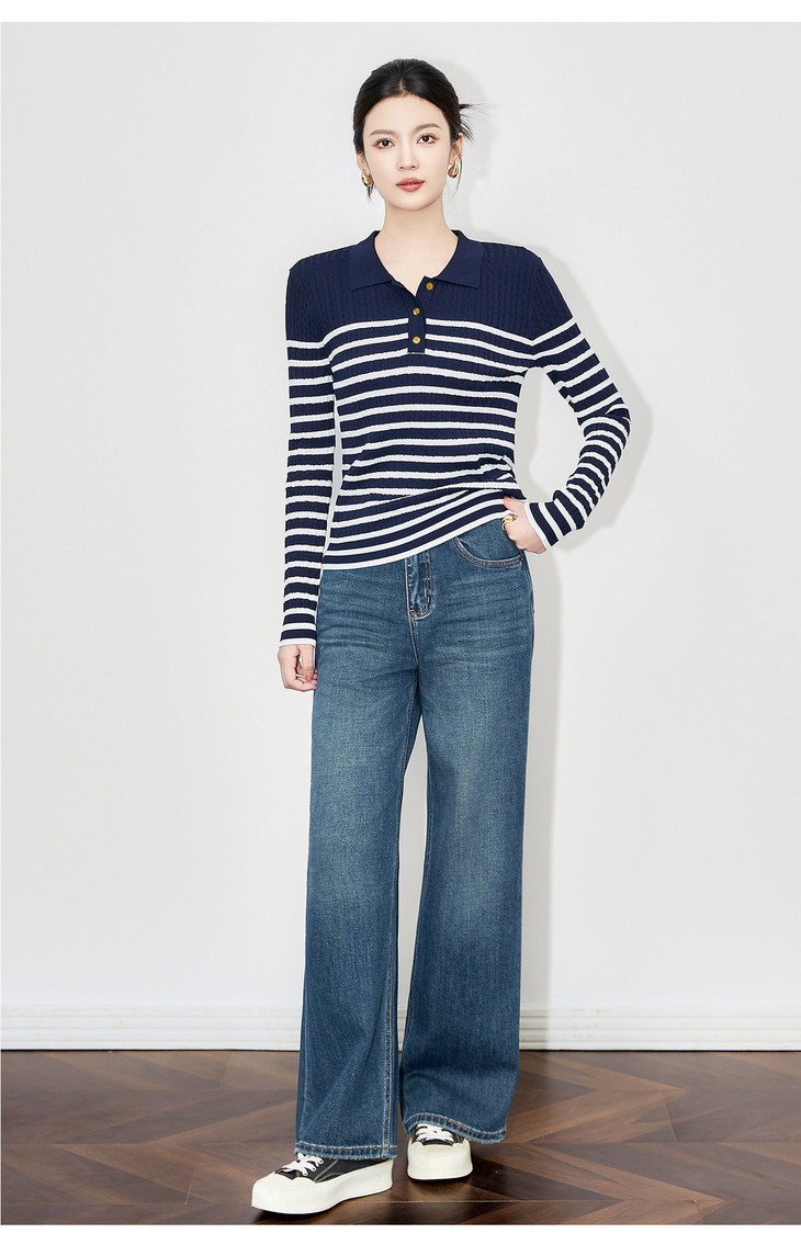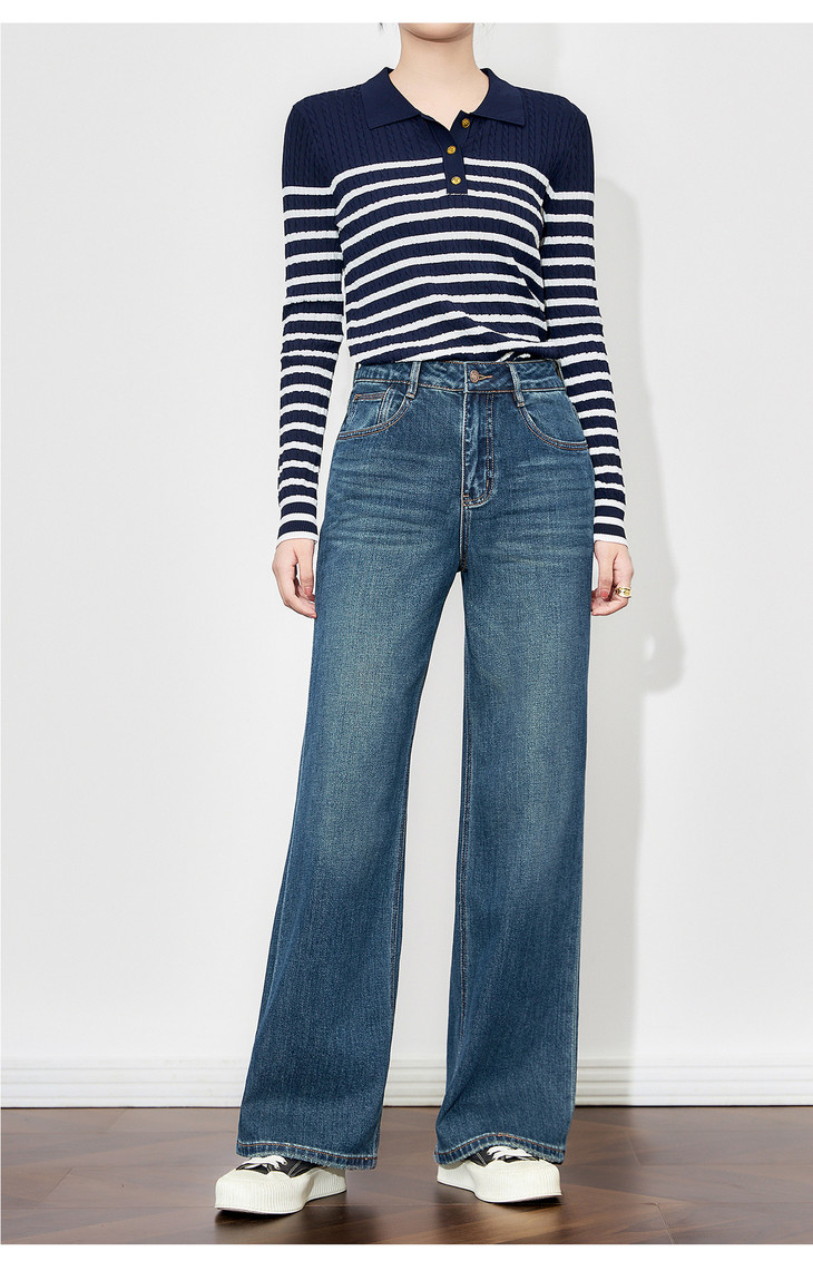 修身时尚,春款长款宽松A字型阔腿裤高腰垂感显瘦洋气牛仔裤MYX-1729