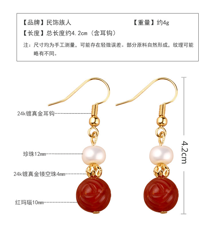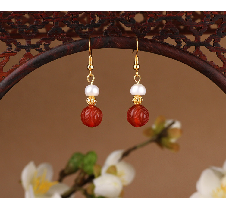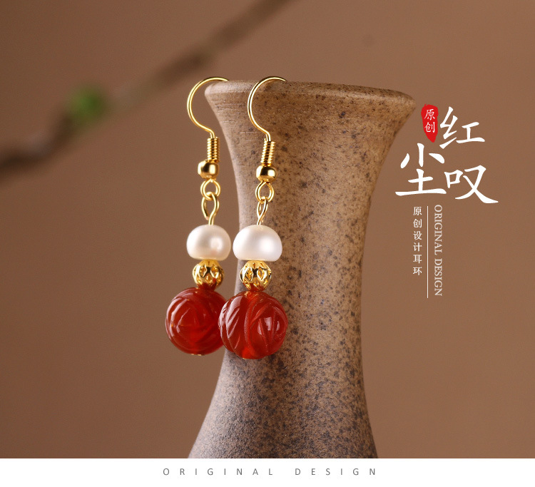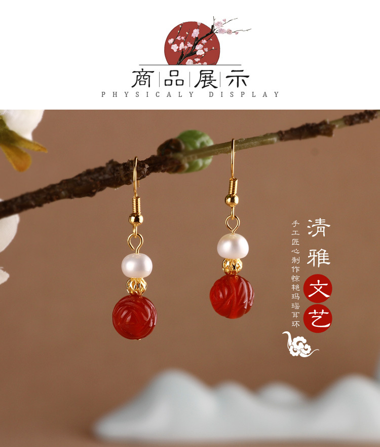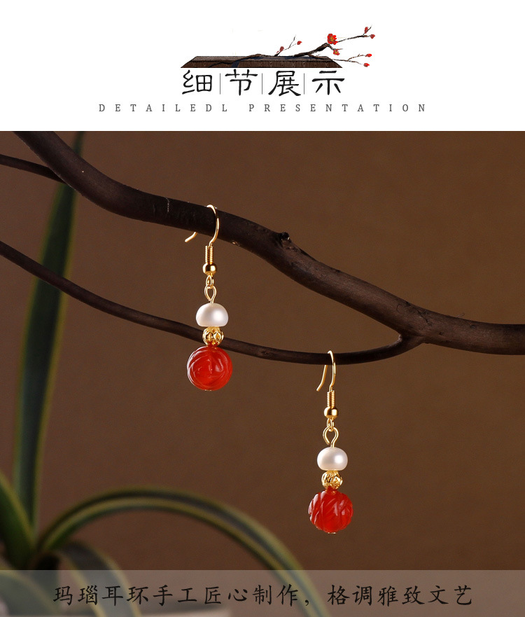 MSZR-韩国个性百搭珍珠简约小众玛瑙耳坠 TZW