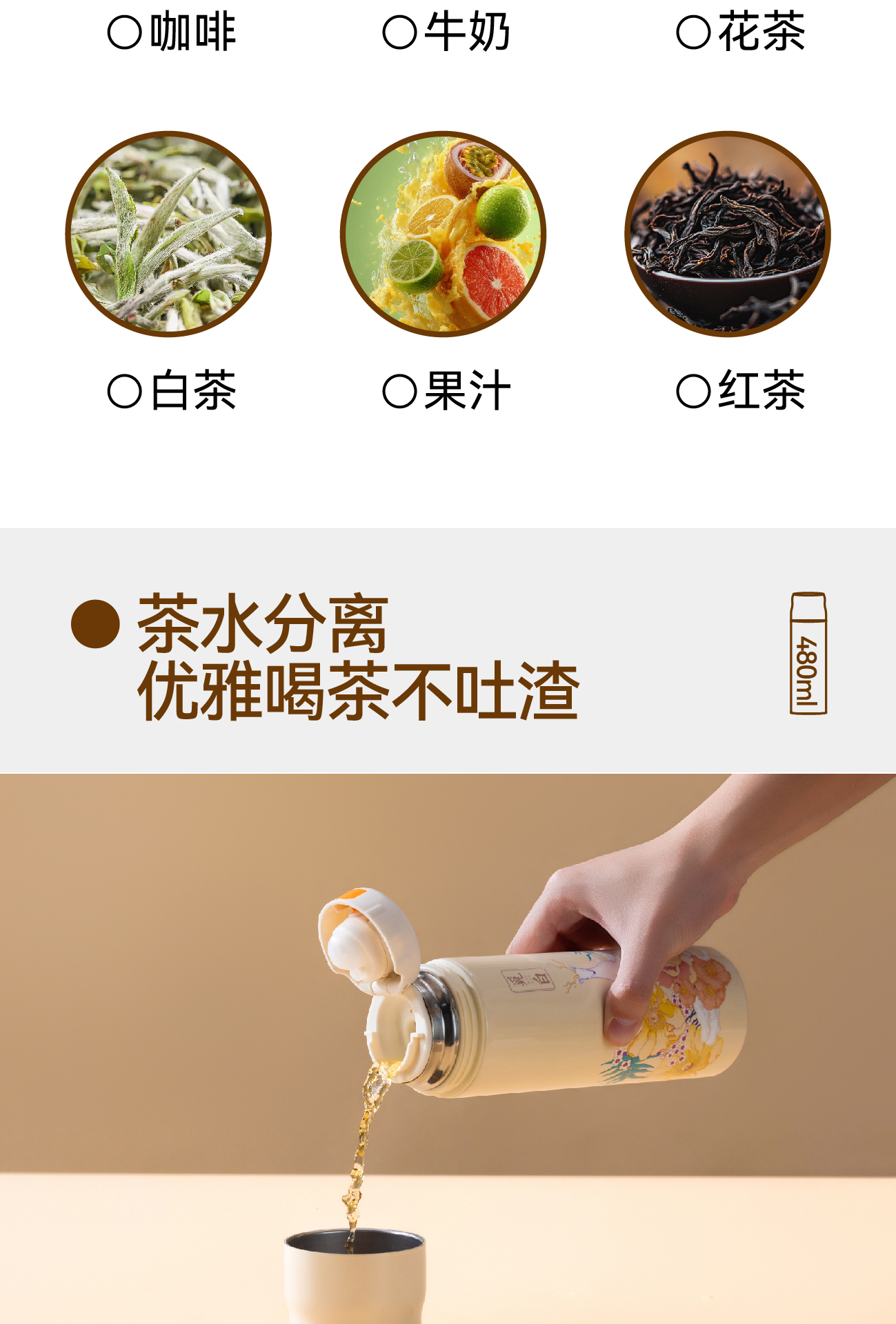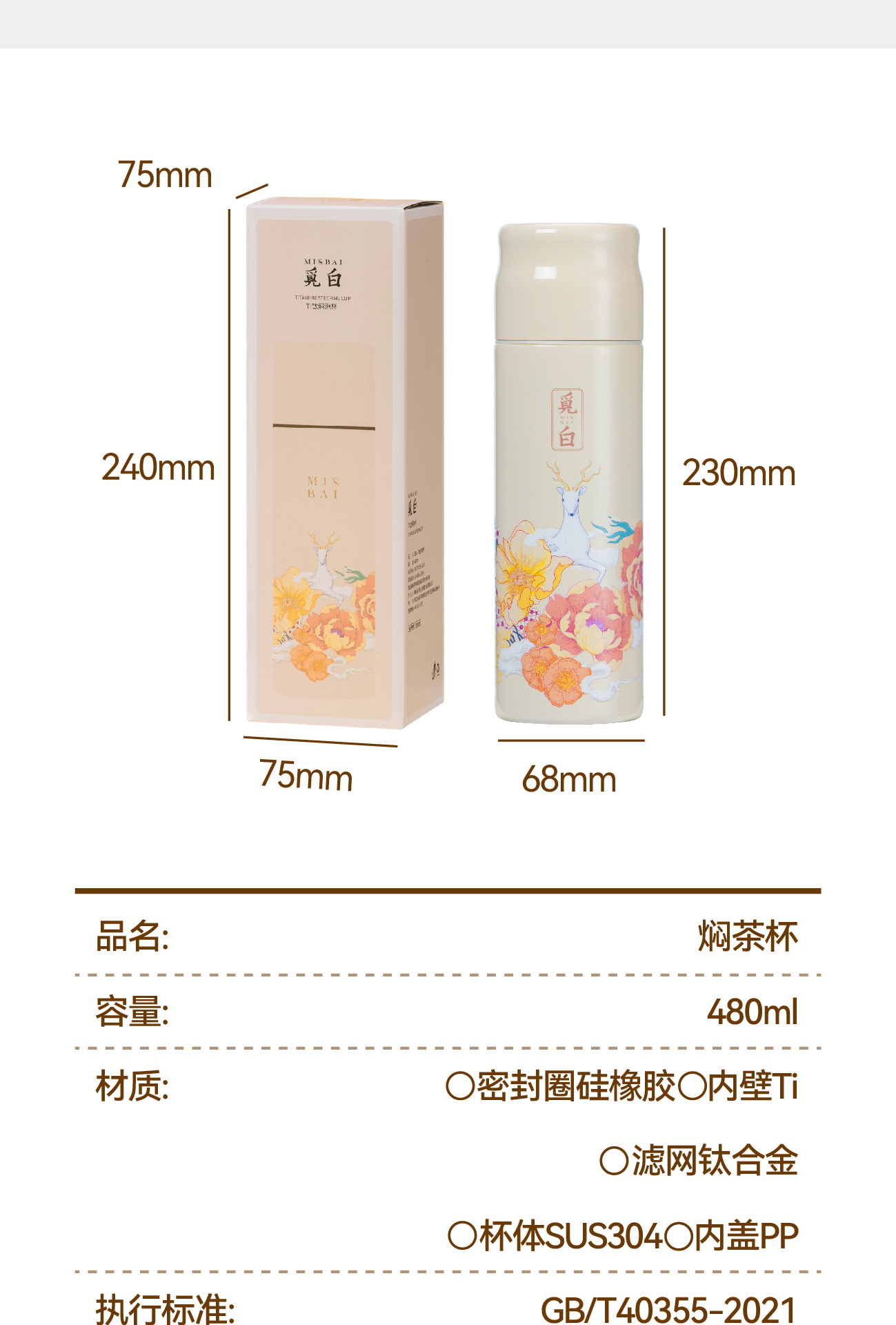 觅白480ml内壁覆钛保温杯PA