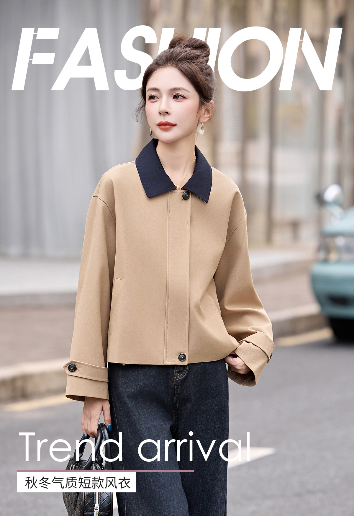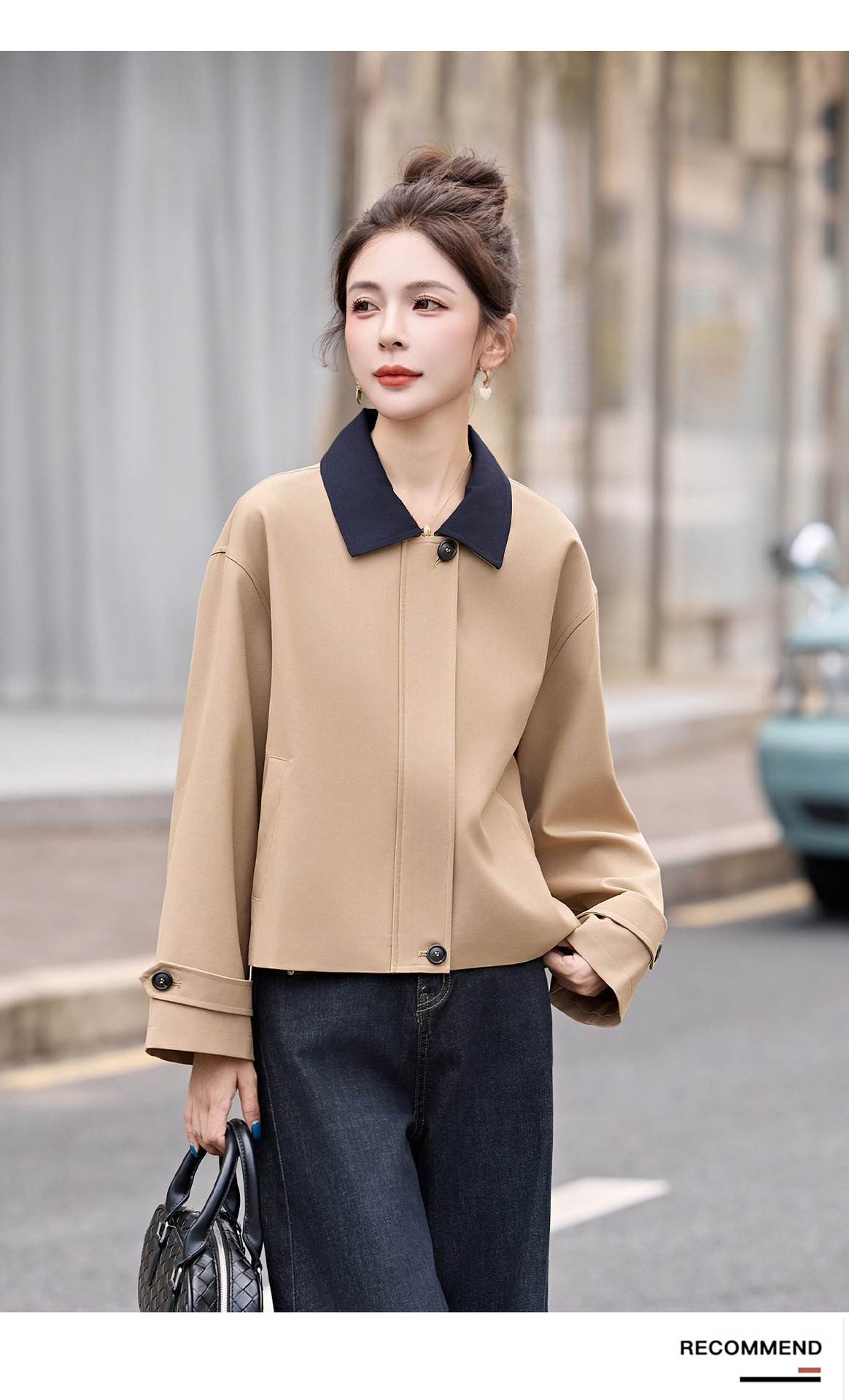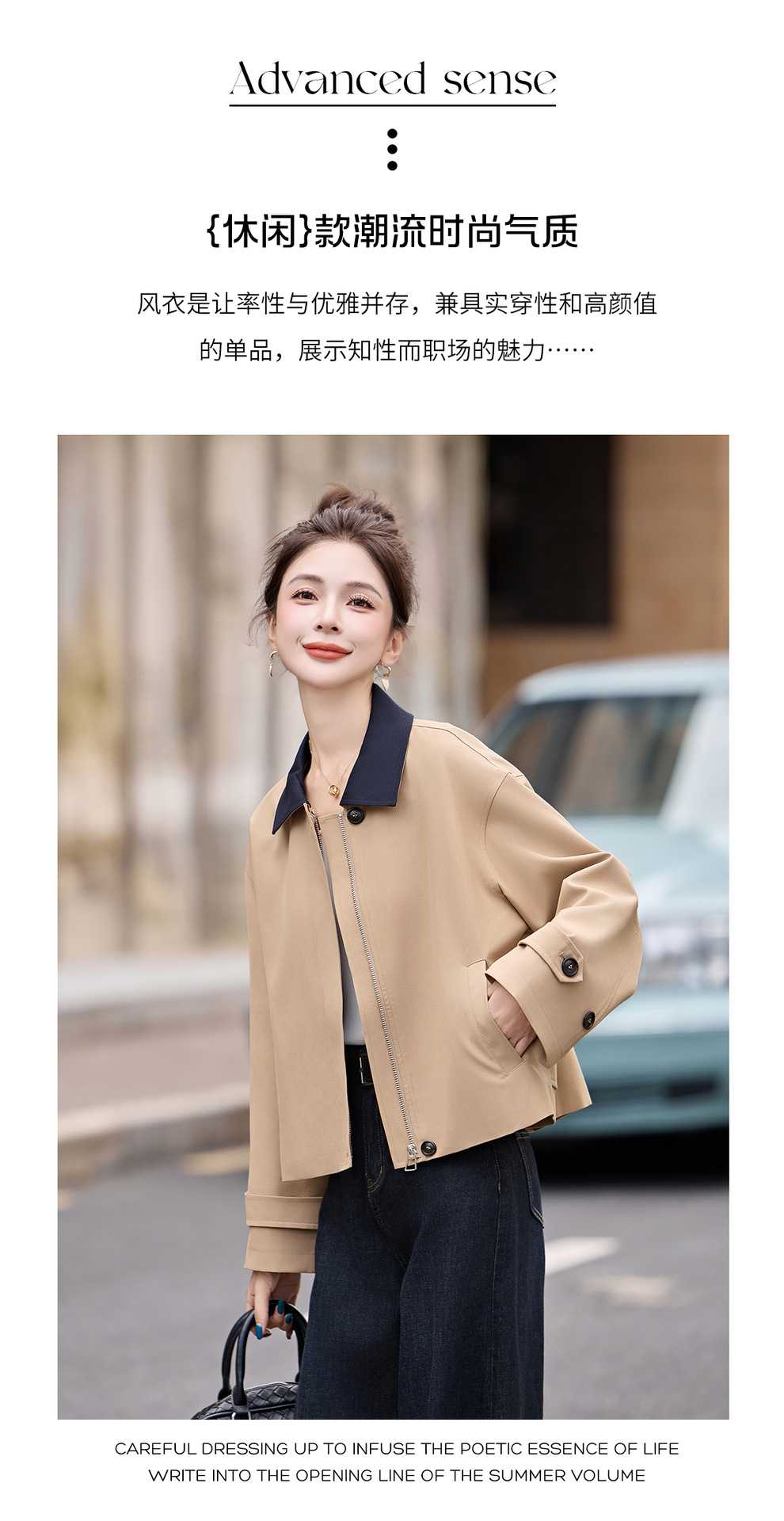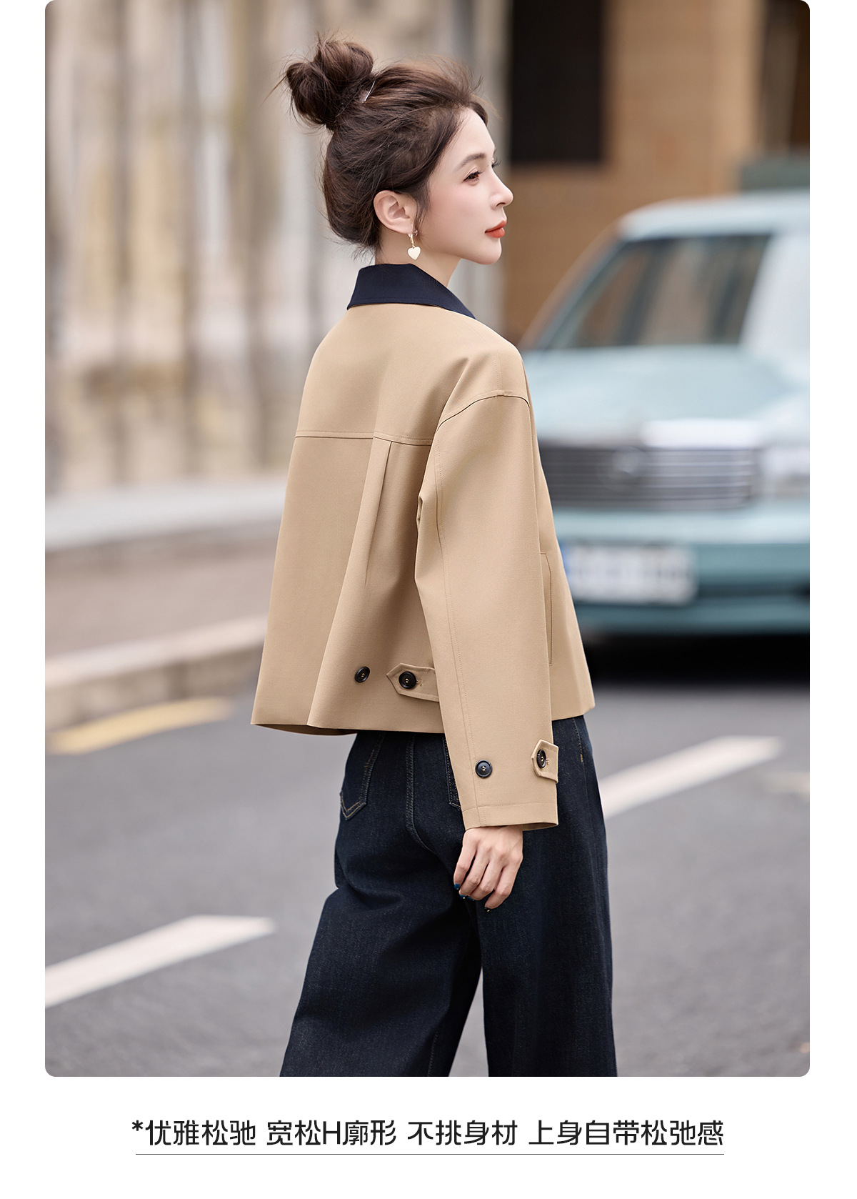 松弛感秋季简约撞色洋气减龄宽松版休闲纯色气质风衣通勤外套ZYF8879