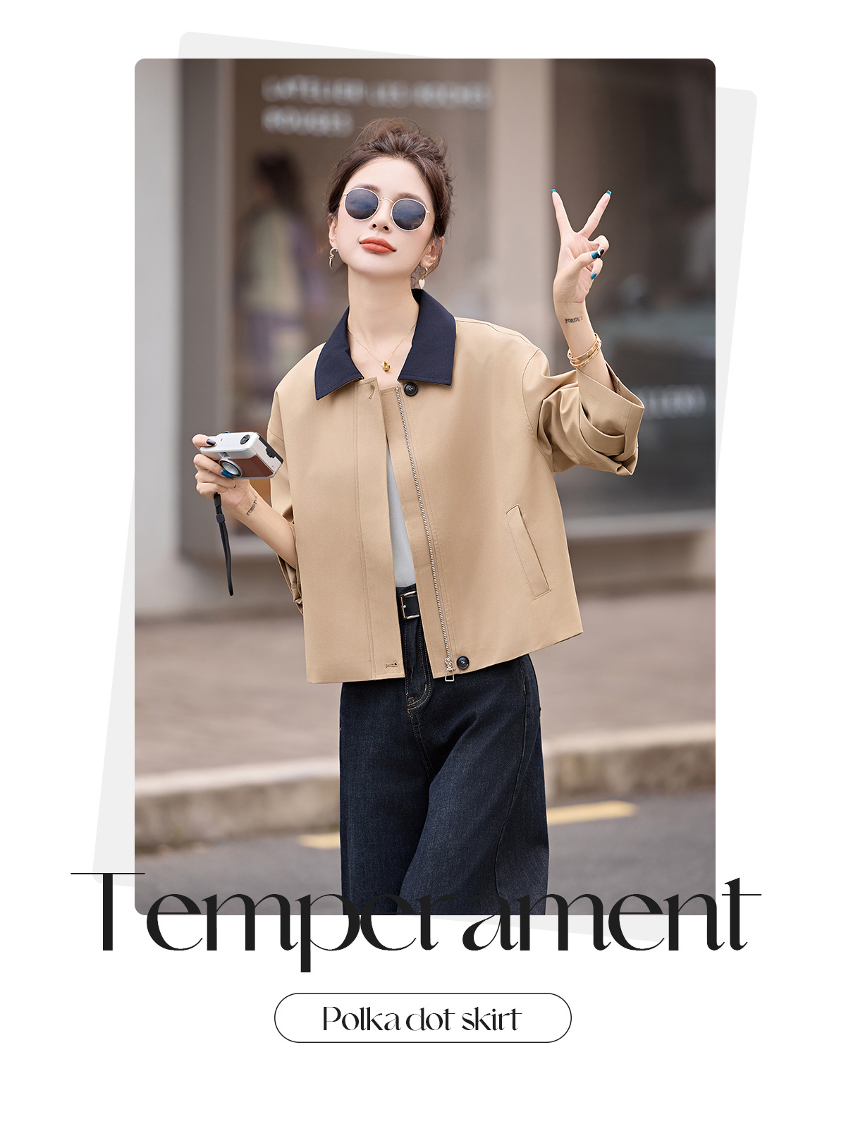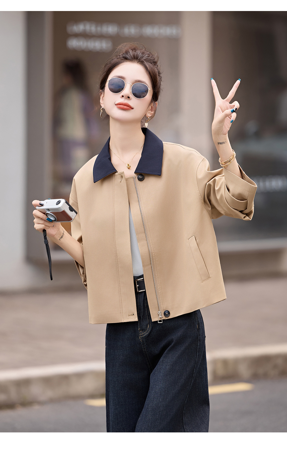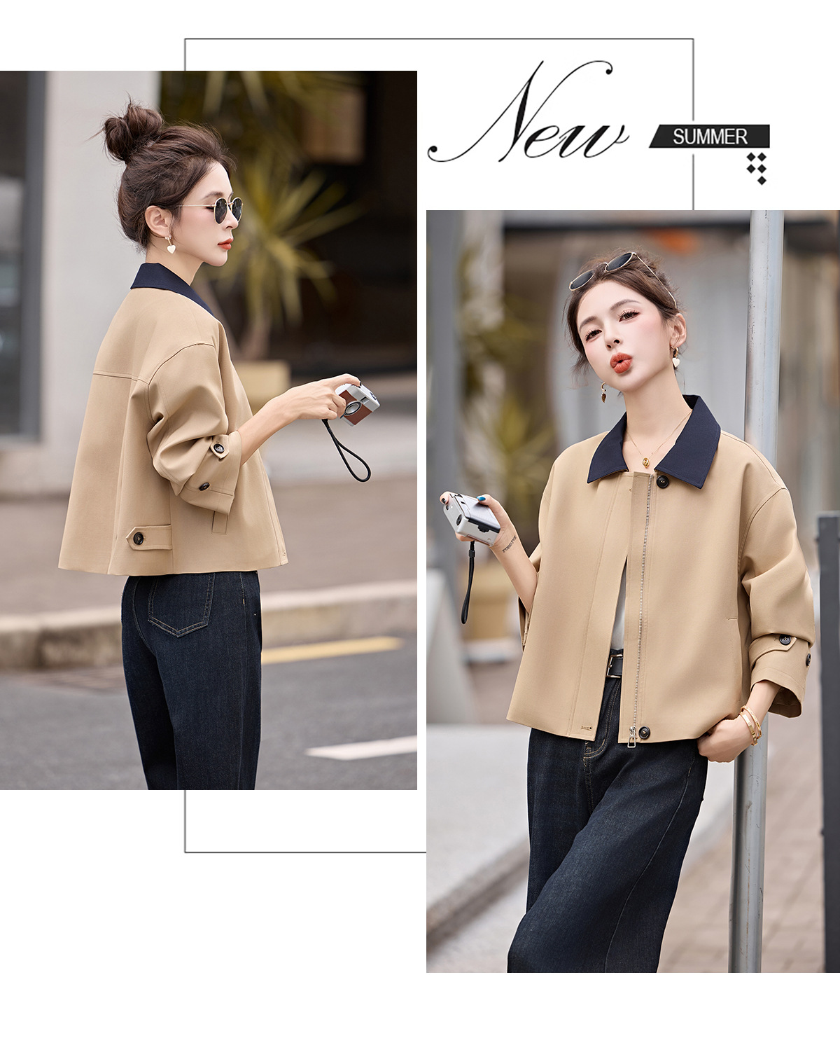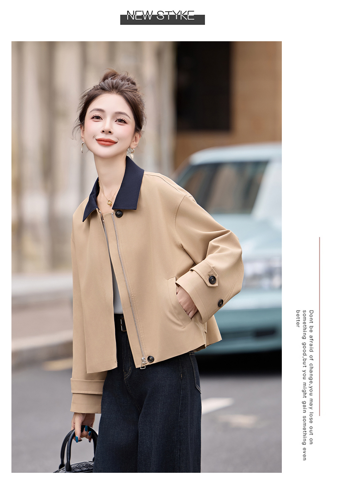 松弛感秋季简约撞色洋气减龄宽松版休闲纯色气质风衣通勤外套ZYF8879