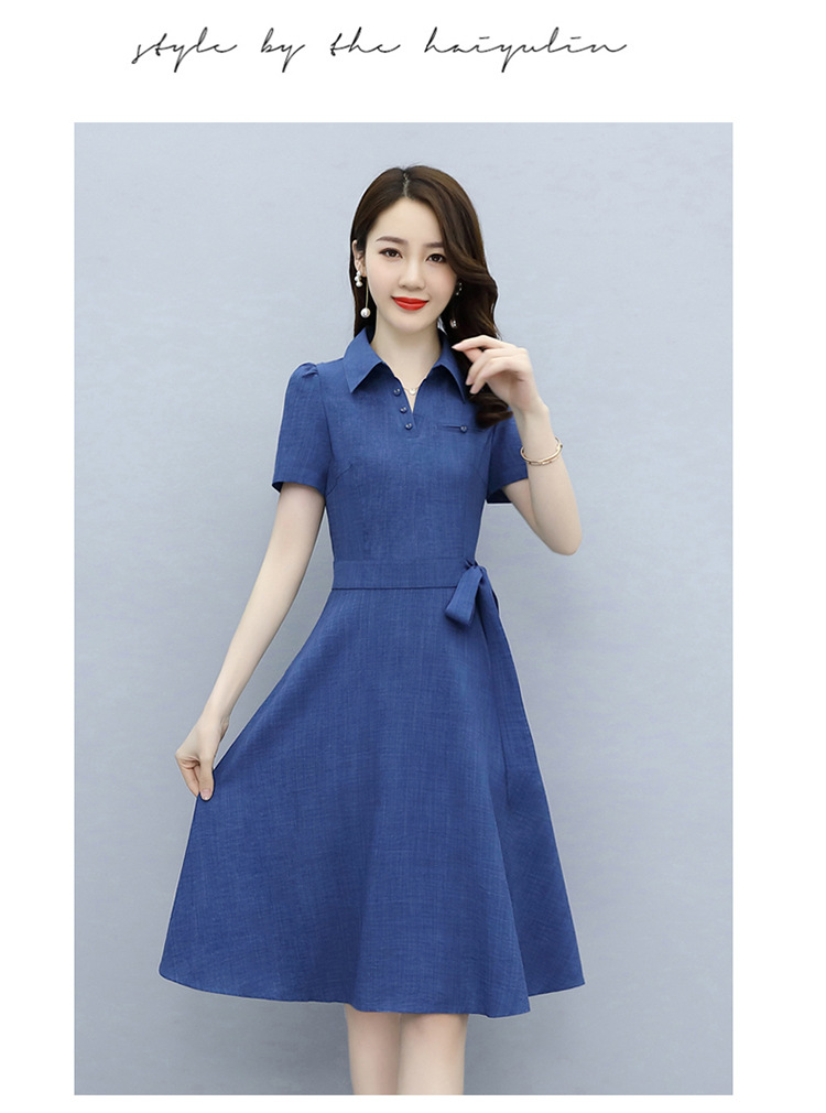 夏季连衣裙女小个子2025新款收腰修身显瘦温柔风气质法式衬衫裙子YBER2136