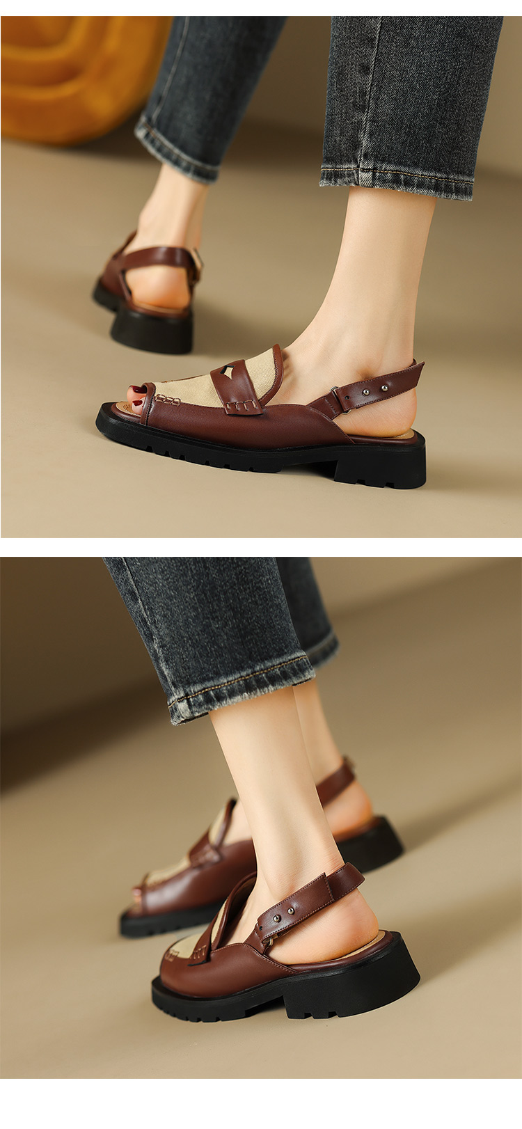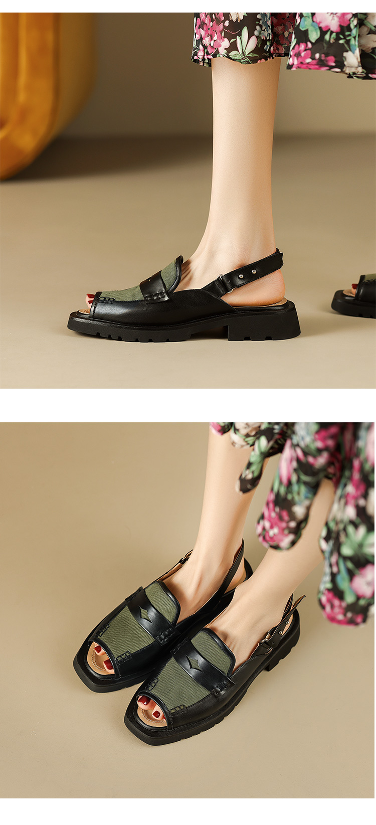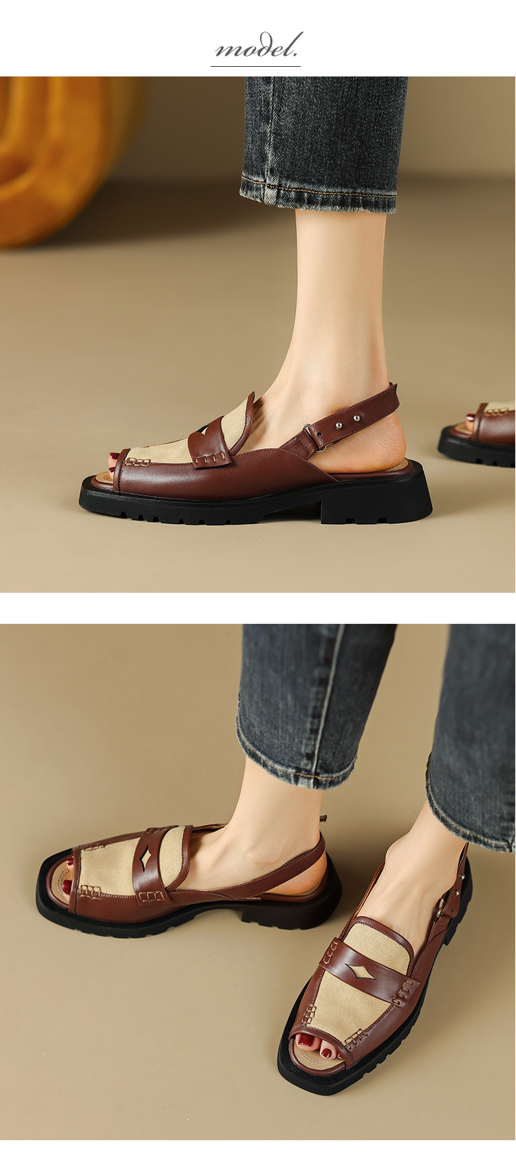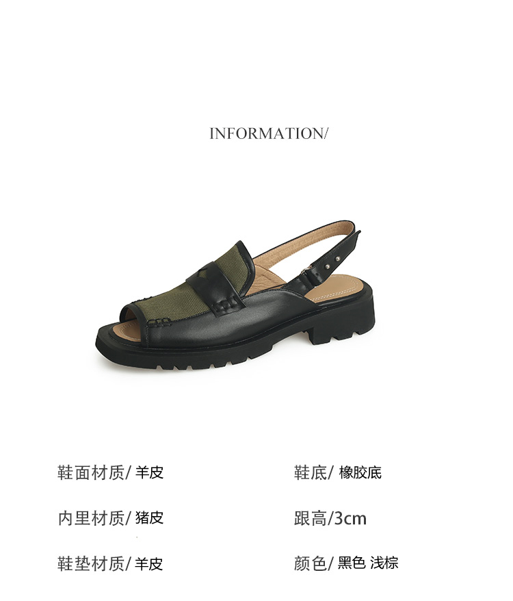复古小众气质,鱼嘴真皮拼接凉鞋QQJ-725F