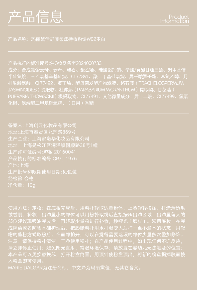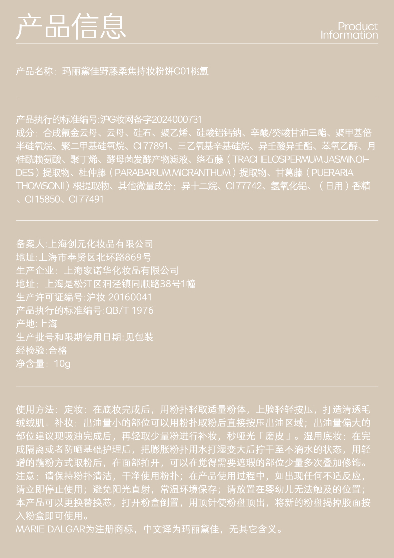 【买正装10g赠同款替换芯*1+粉扑*2(包装内含1)】玛丽黛佳野藤粉饼柔焦持妆磨皮大王隐形毛孔定妆
