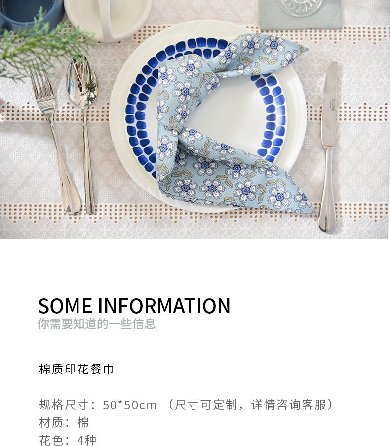 棉质印花餐巾全棉高档田园风擦杯布餐巾