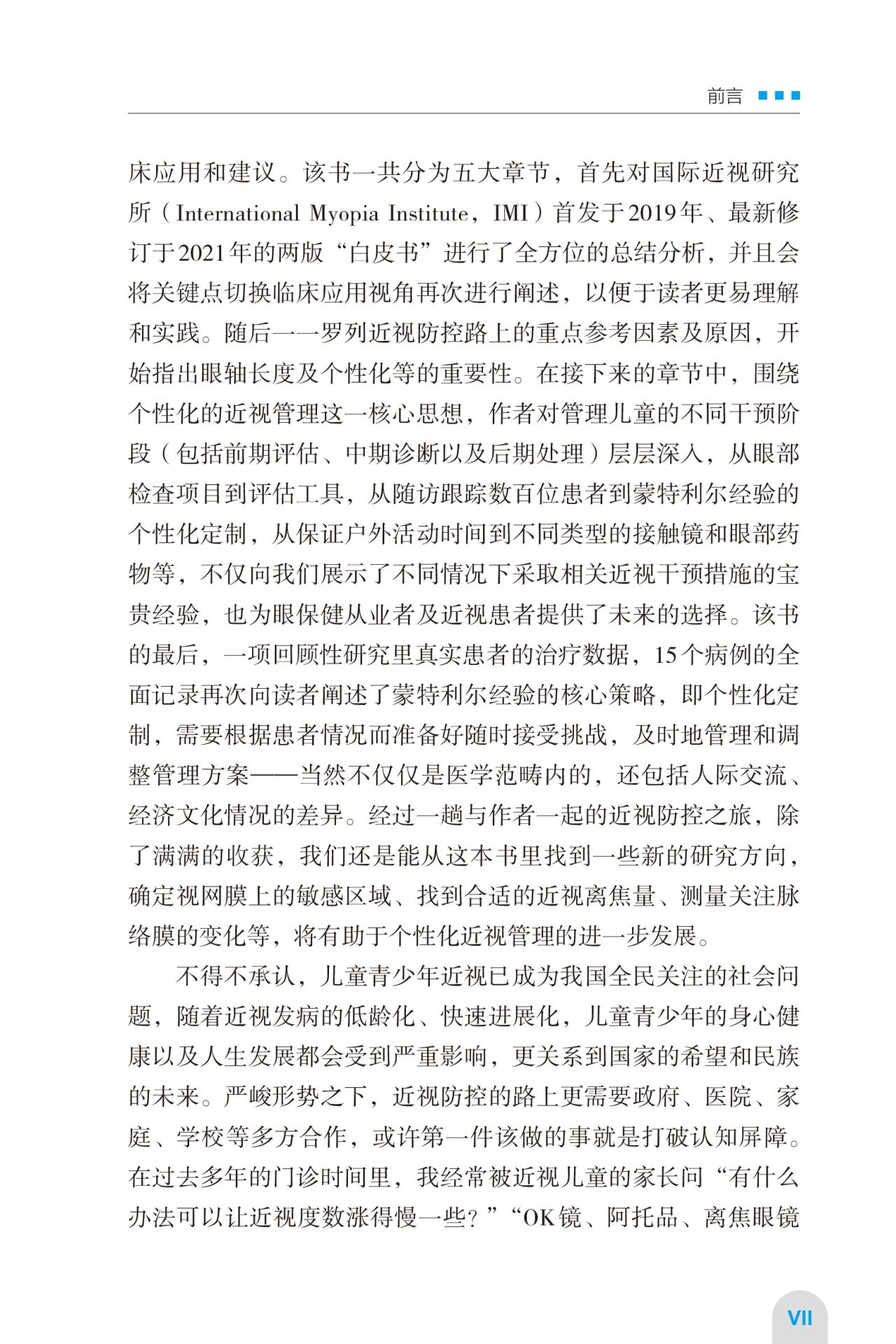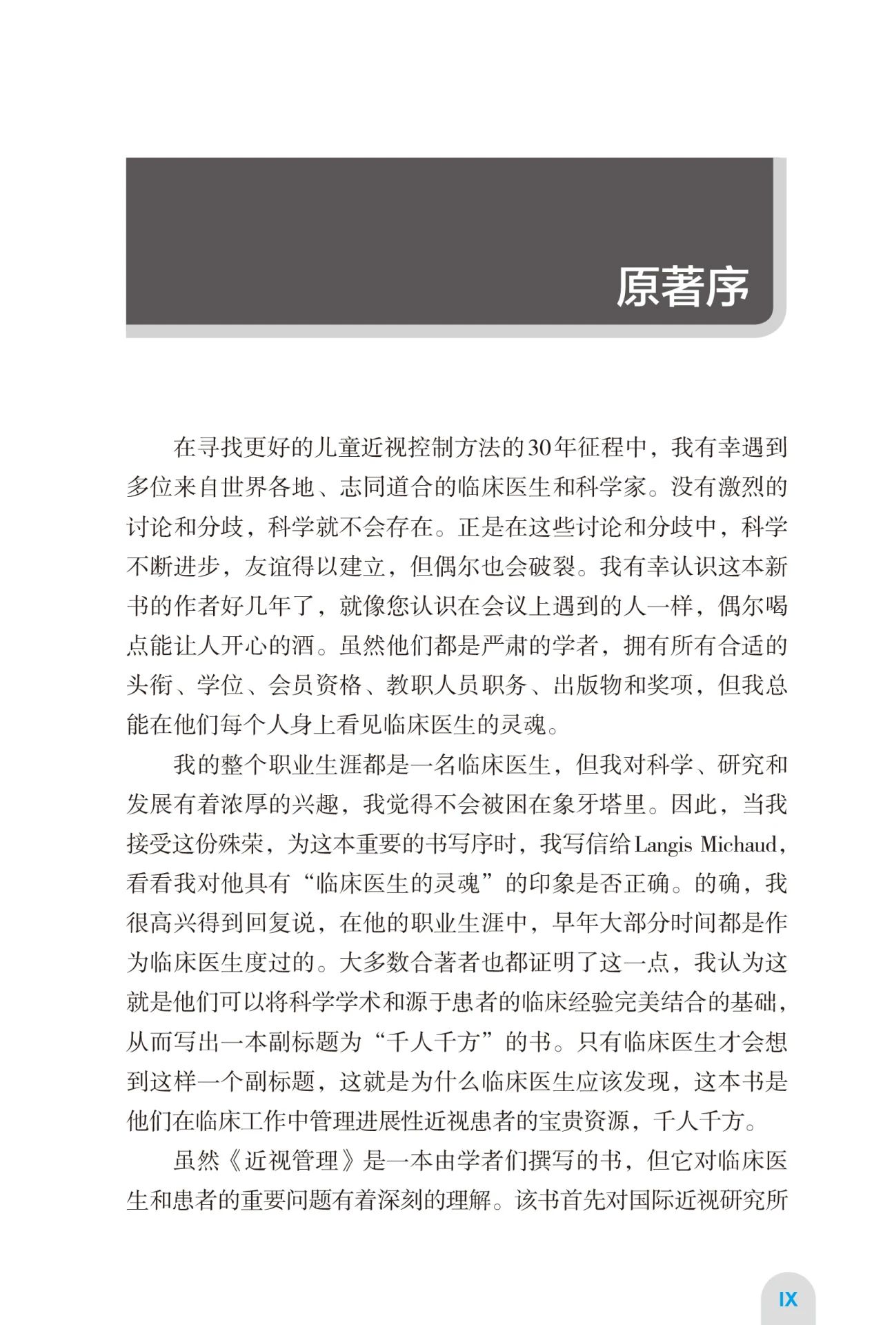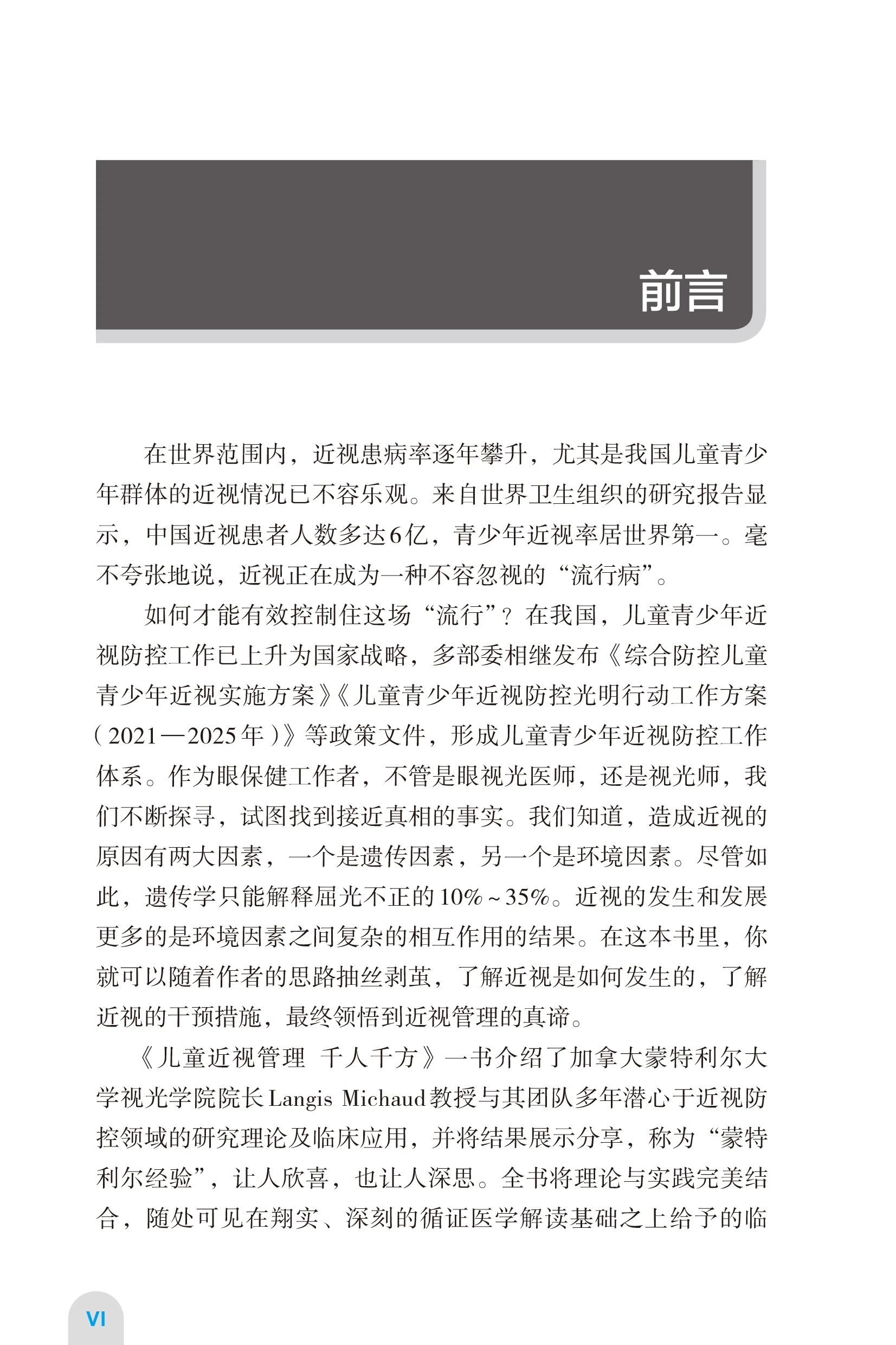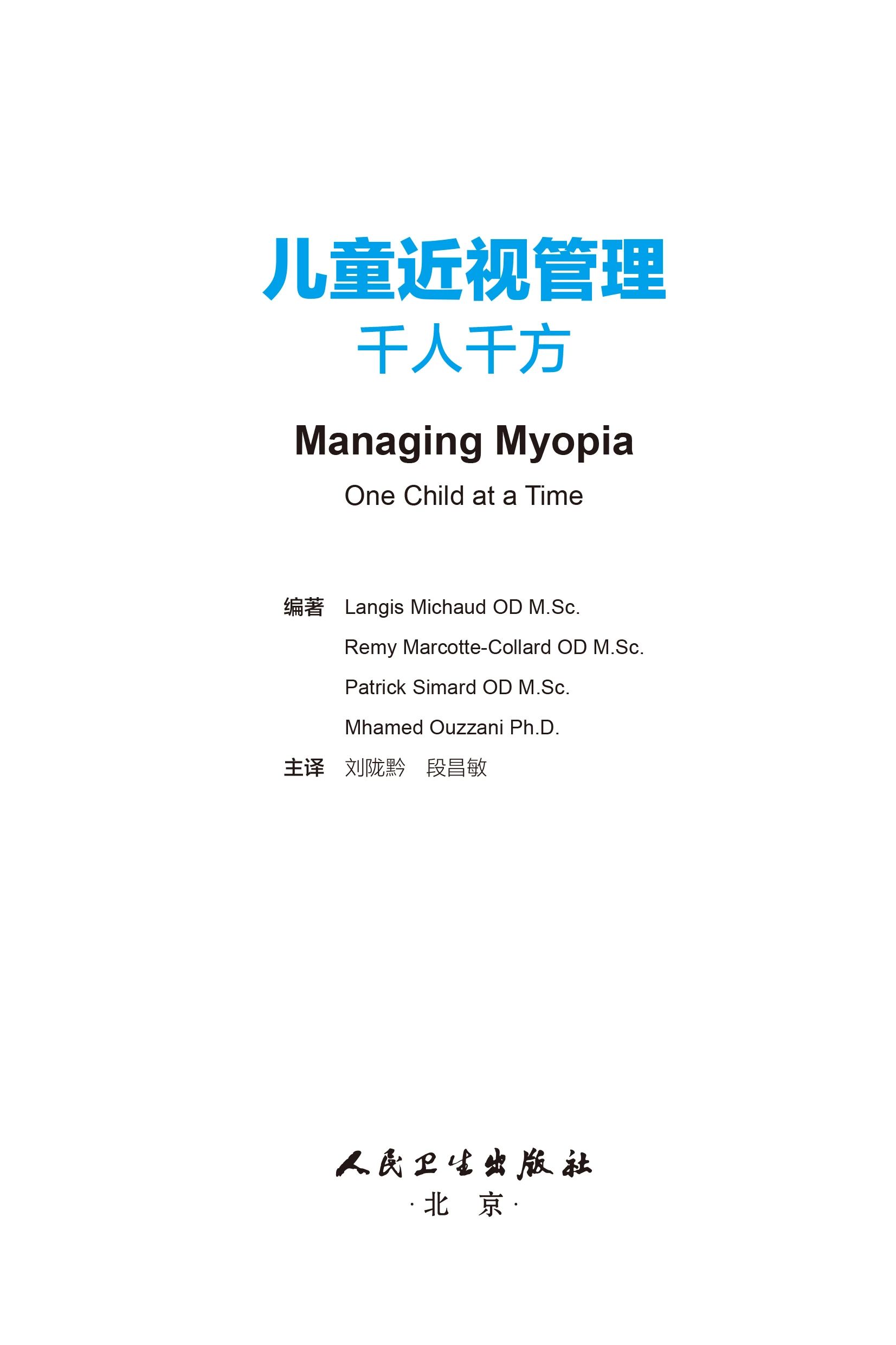 ①. 本书为近视防控方面的译著,介绍了加拿大蒙特利尔大学视光学院院长 Langis Michaud 教授与其团队多年潜心于近视防控领域的研究理论及临床应用,内含大量案例,图文并茂,表格翔实。