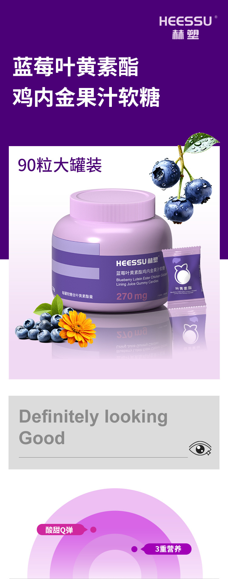 【成分干净❗️眼胃同调】HEESSU赫塑叶黄素酯鸡内金果汁软糖水果口味凝胶糖果。jb