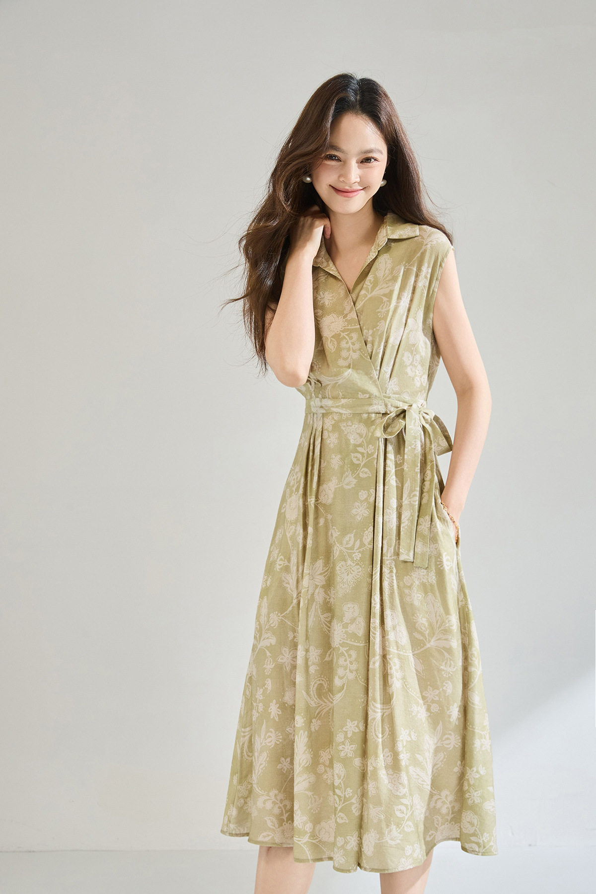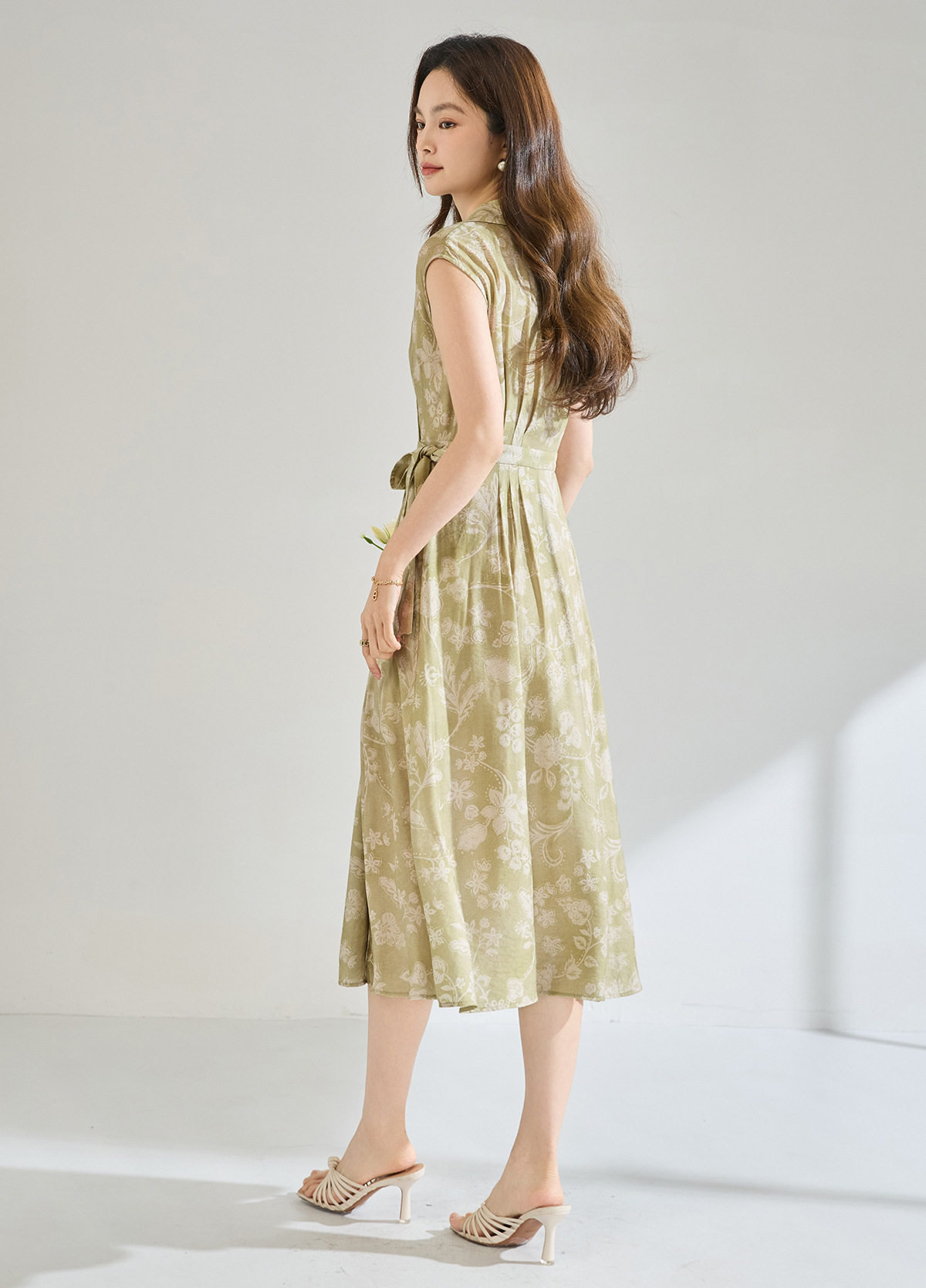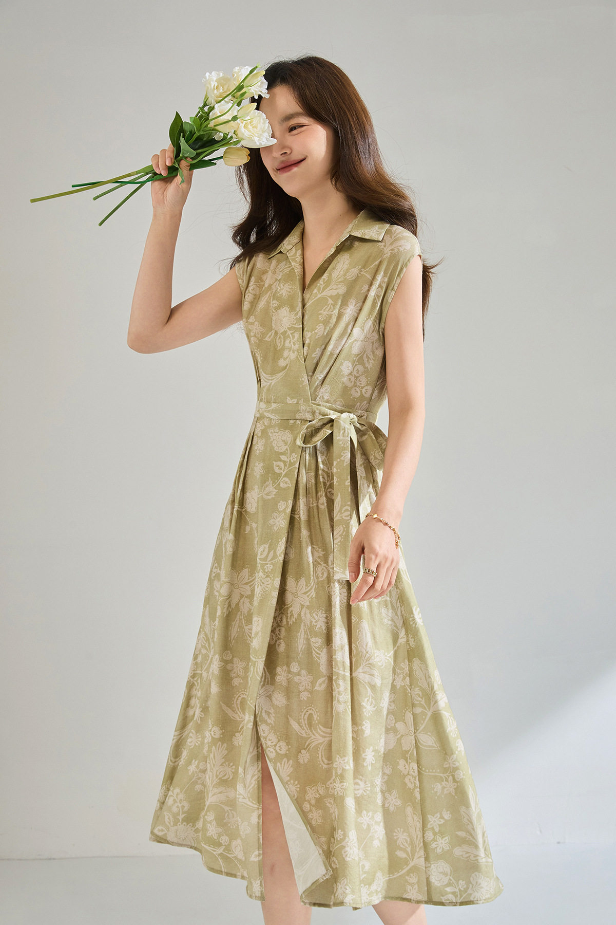 「高货sh」全新升级【铂金会员266/天猫359/差价93】(01806)洛诗琳法式淡雅印花衬衫裙2026春夏收腰显瘦无袖系带裙
