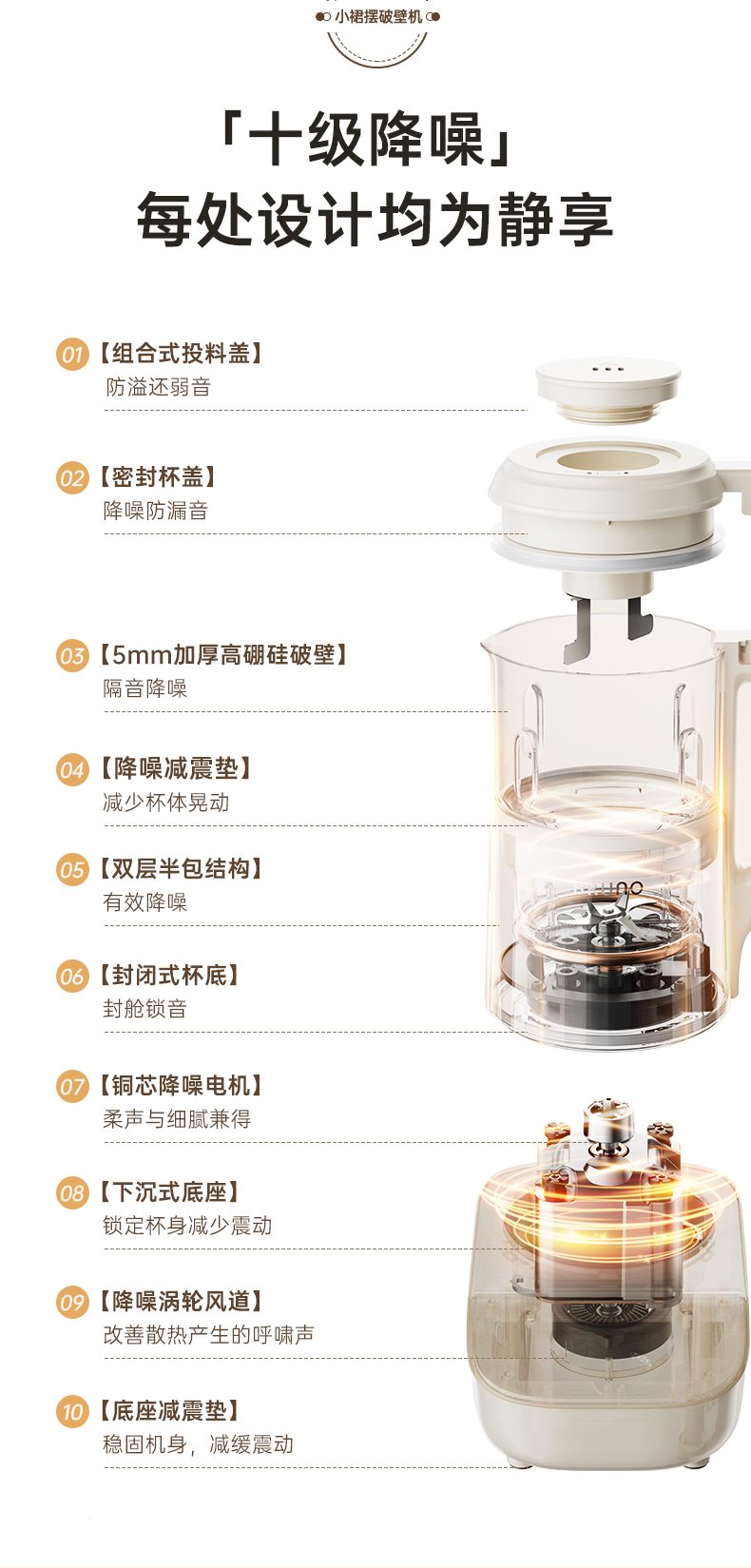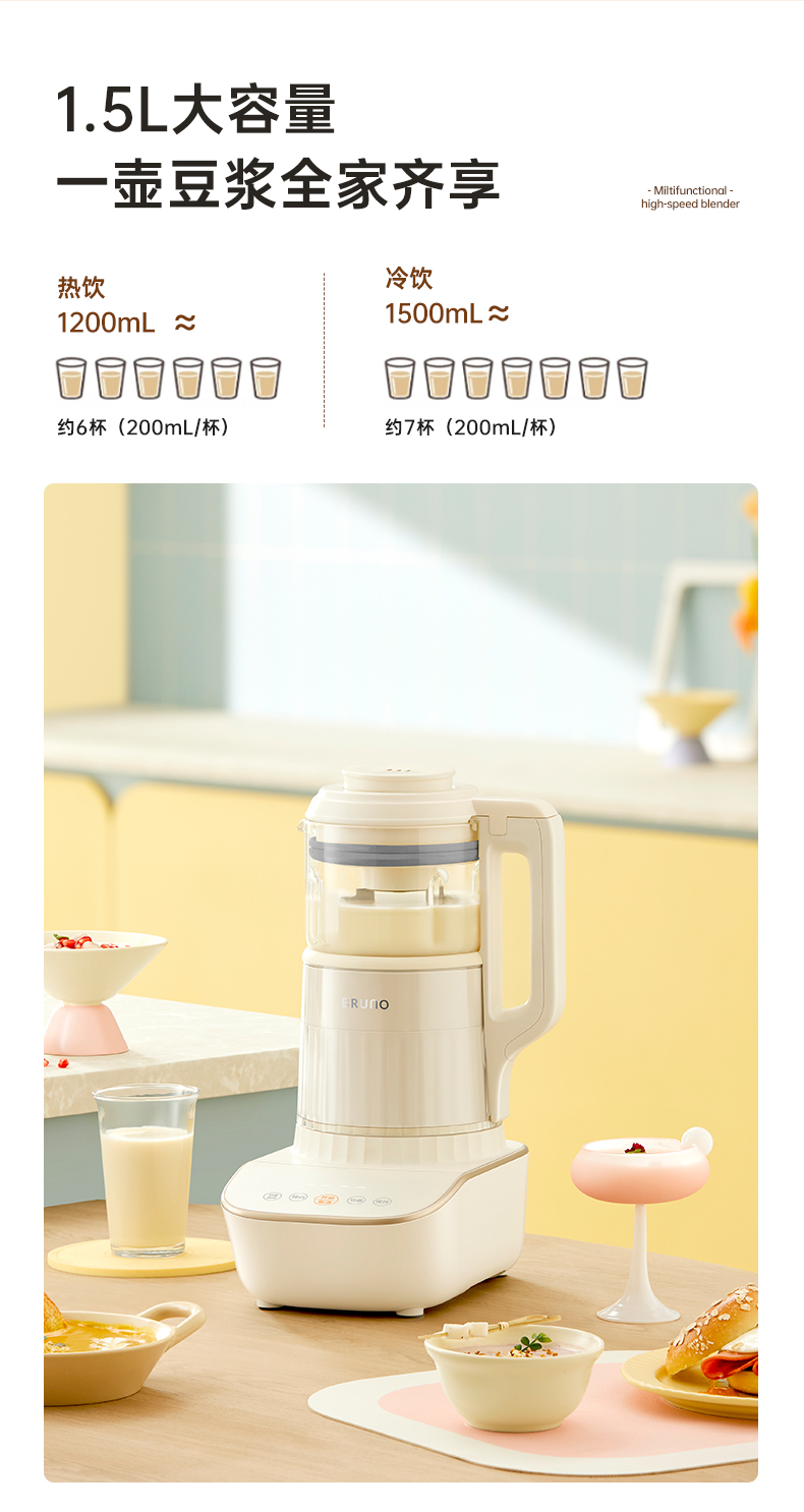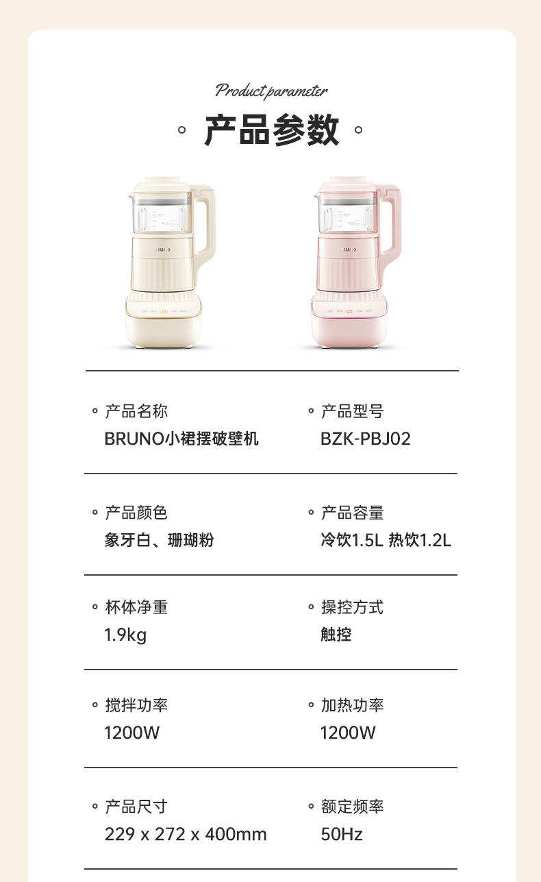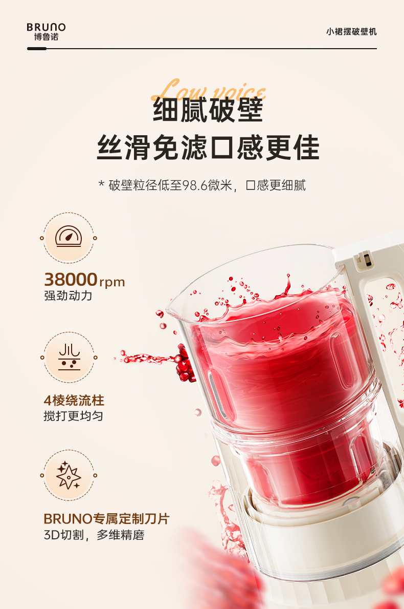 BRUNO柔声破壁机新款 | BRUNO 家用全自动豆浆机 多功能婴儿辅食料理机