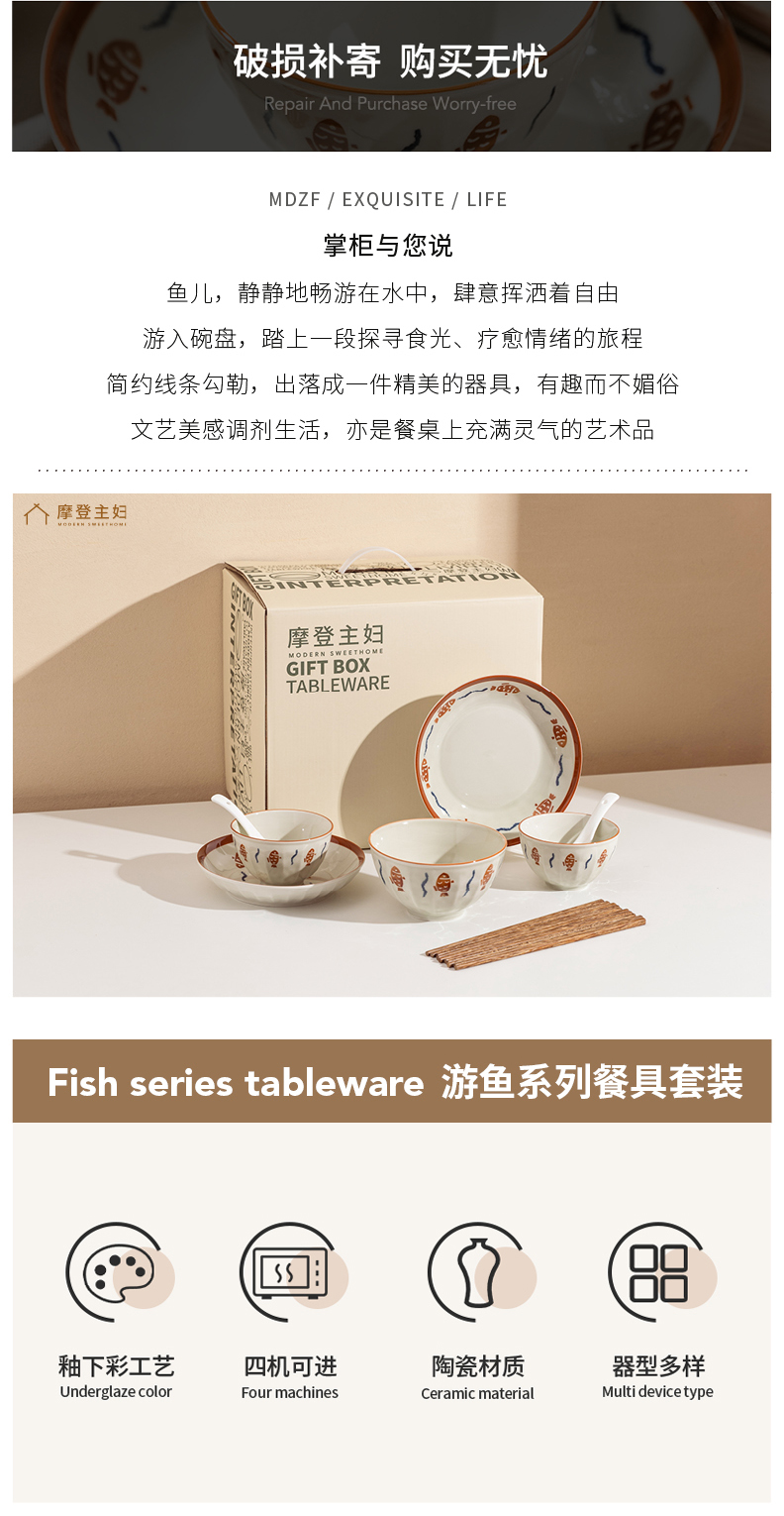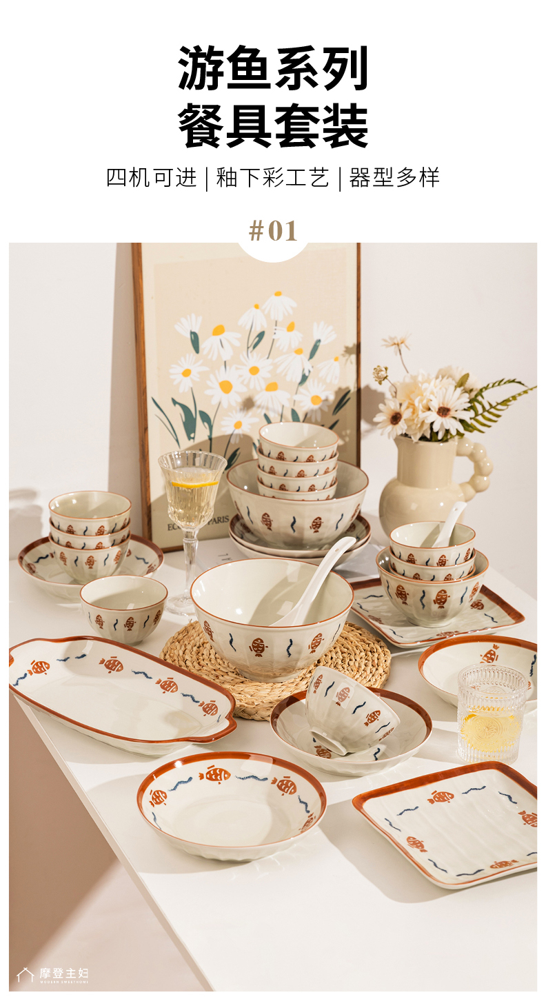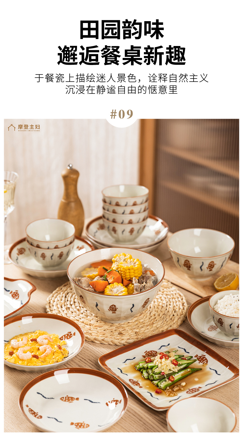 摩登主妇高颜值餐具套装碗盘家用2024新款釉下彩碗碟乔迁新居碗具