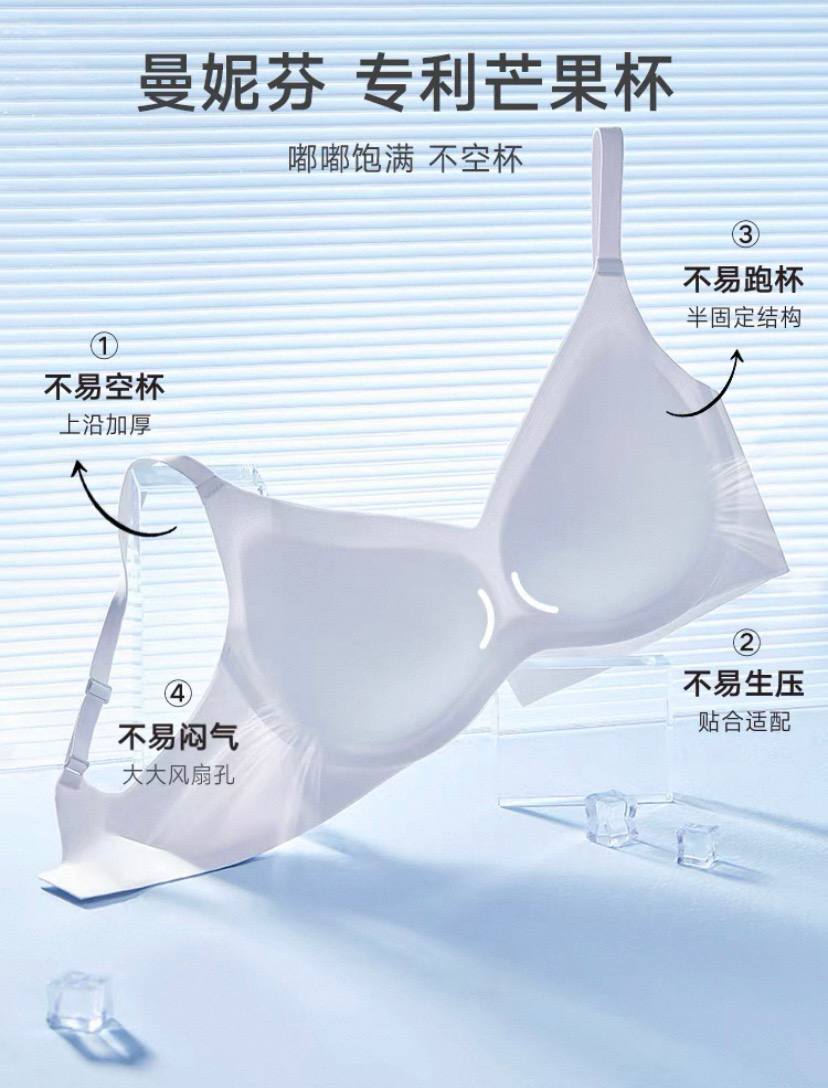专利芒果杯助力嘟嘟饱满 吸湿速干面料给你全天候干爽体验 被轻凉包裹巨爽!
