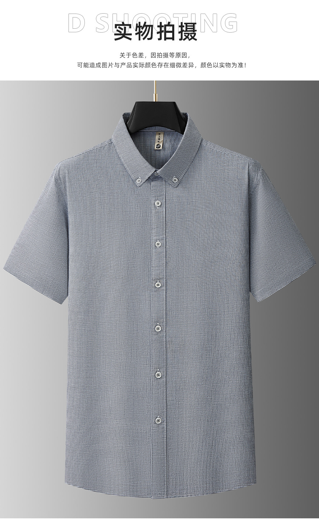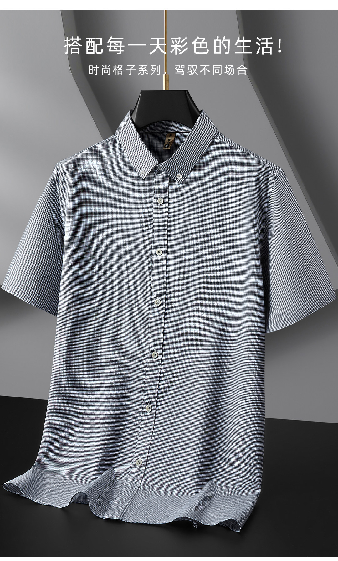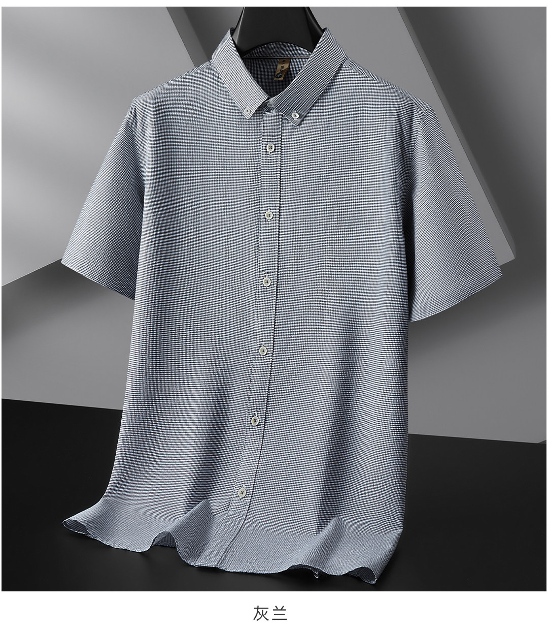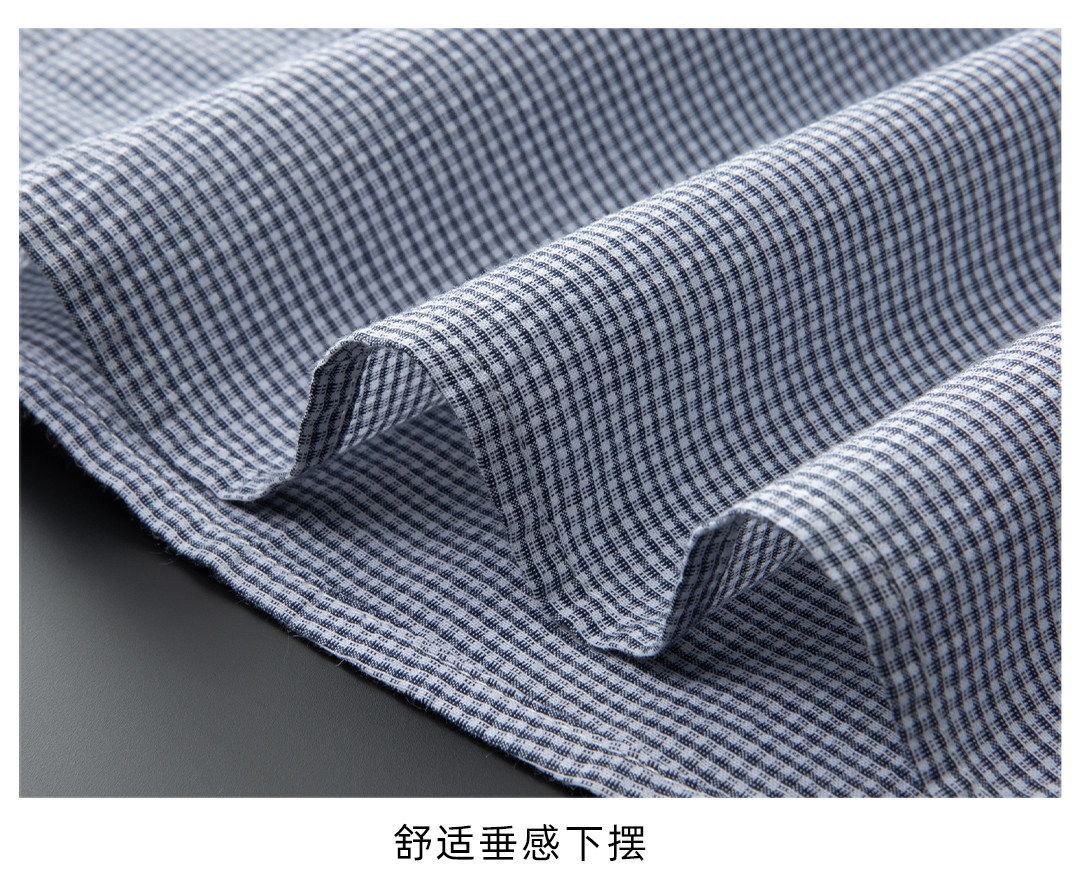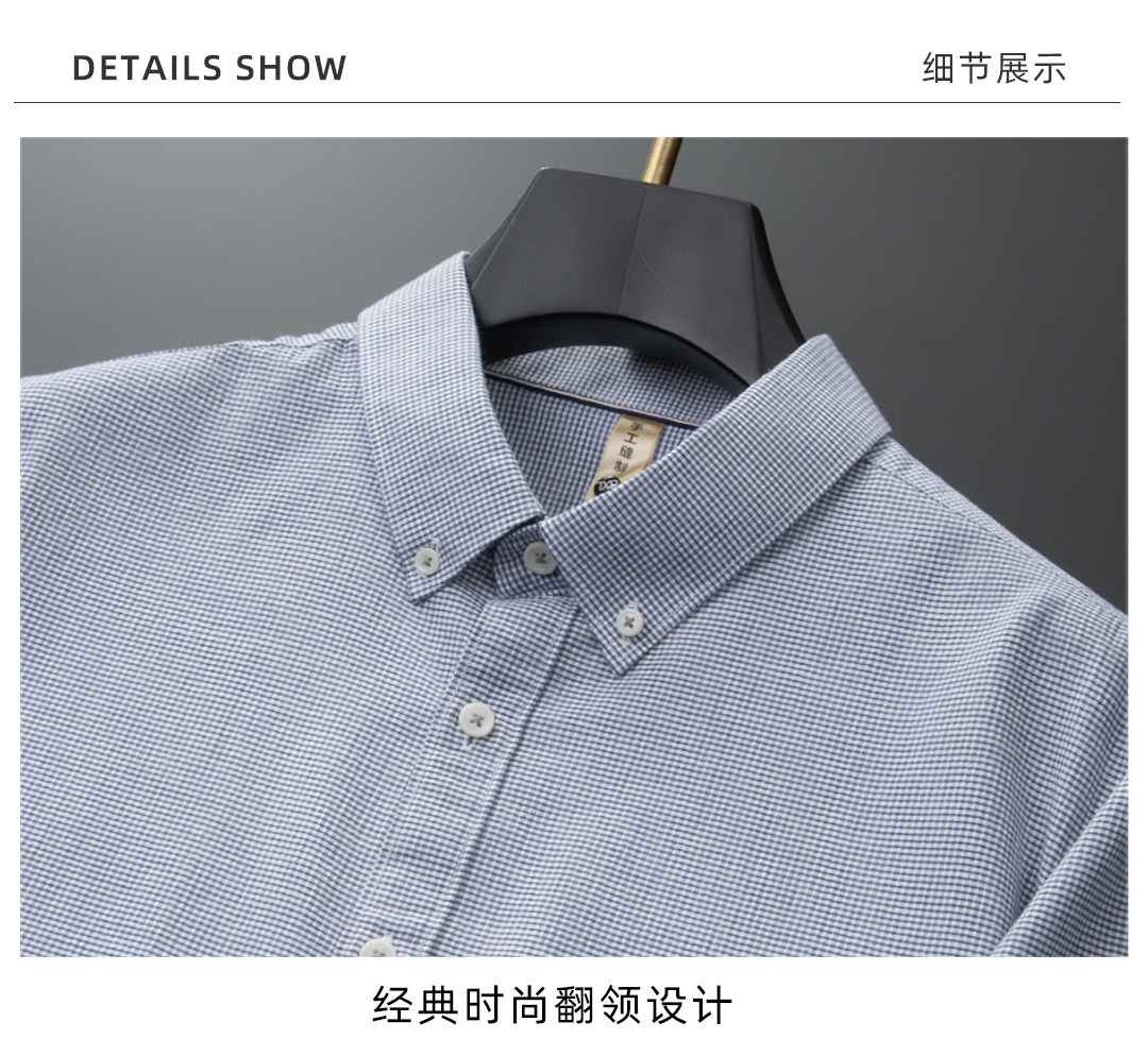 【DG】【亚麻棉】大依优型大码男装夏季细格短袖衬衫商务休闲衬衣男士