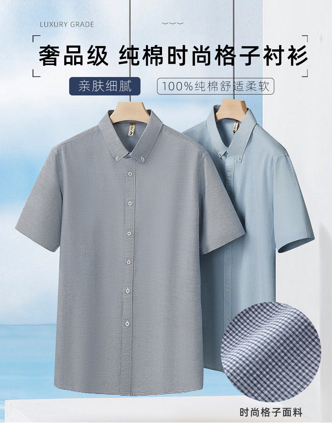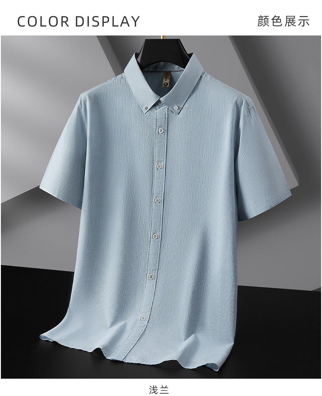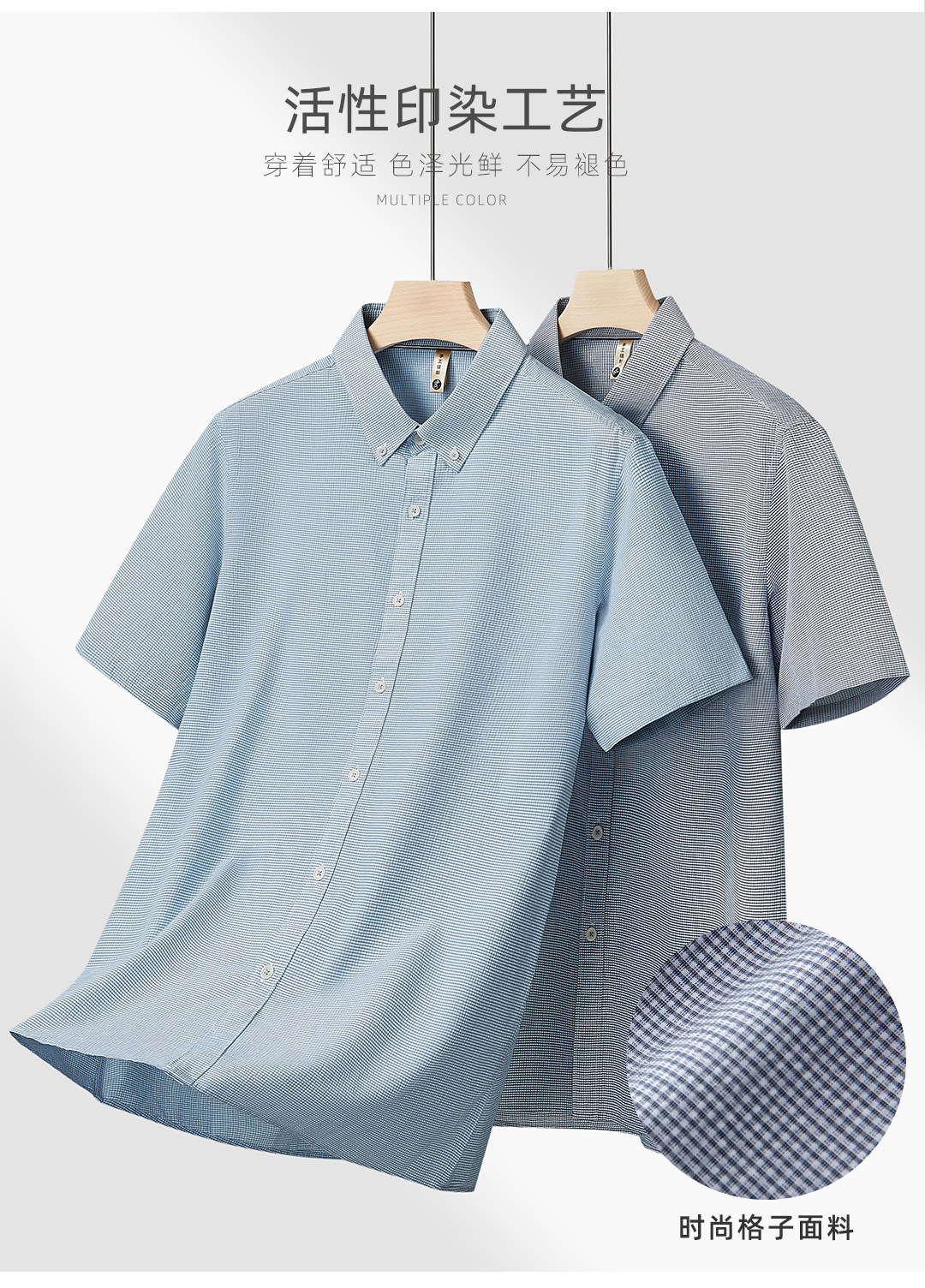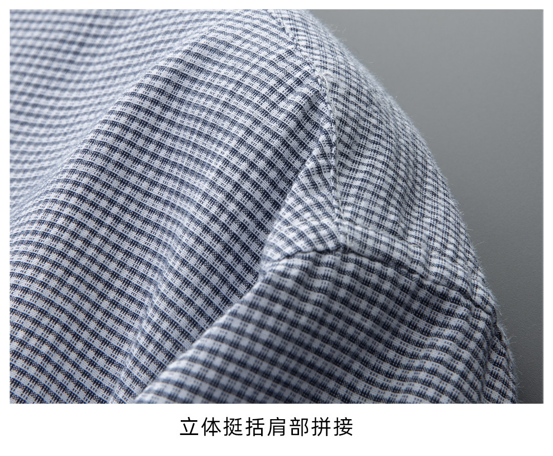 【DG】【亚麻棉】大依优型大码男装夏季细格短袖衬衫商务休闲衬衣男士