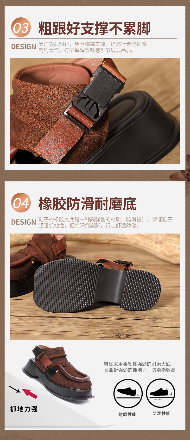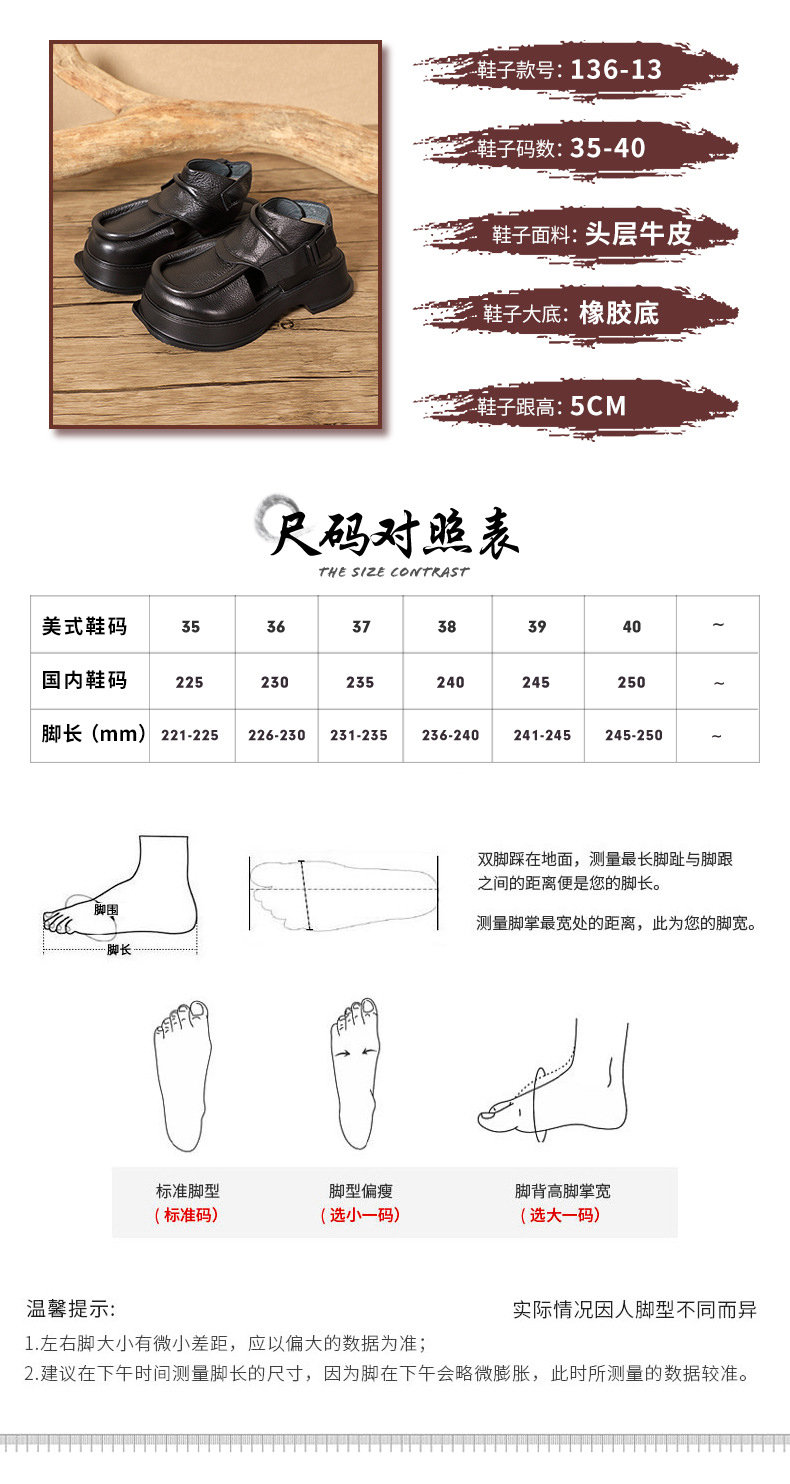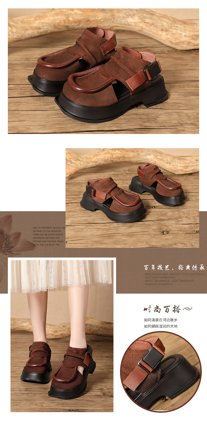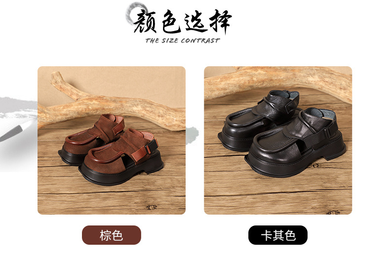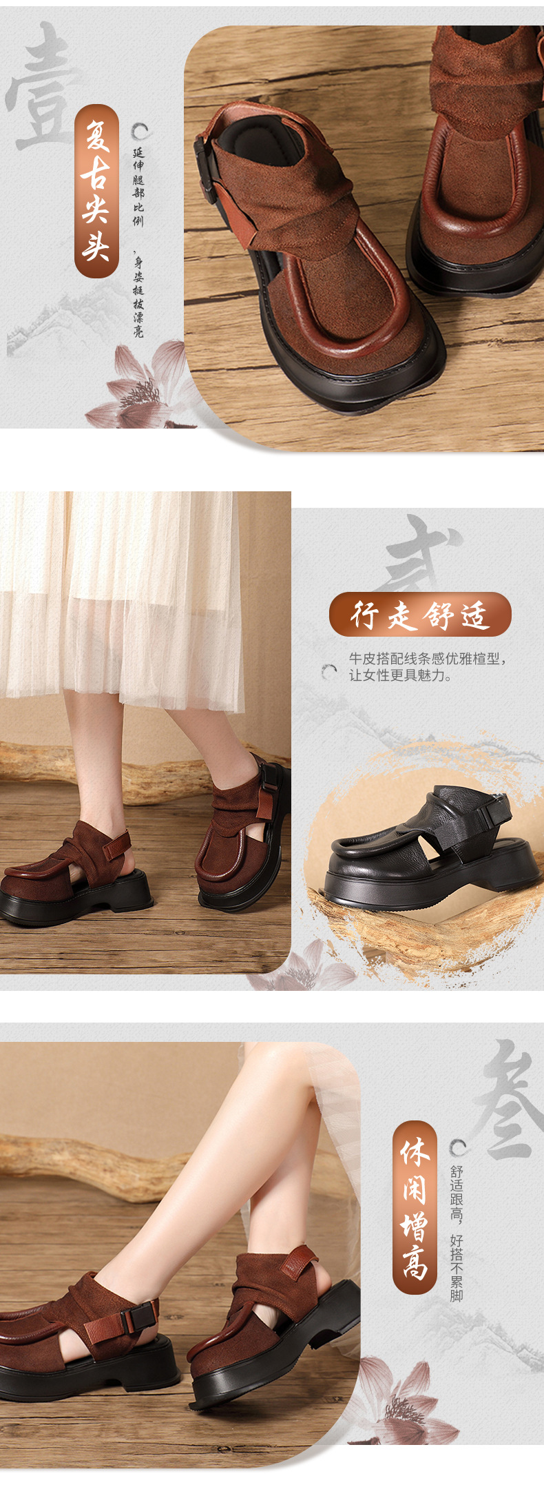 文艺复古手工牛皮女鞋,新款春夏季包头后空凉鞋厚底松糕鞋女BC-136-13