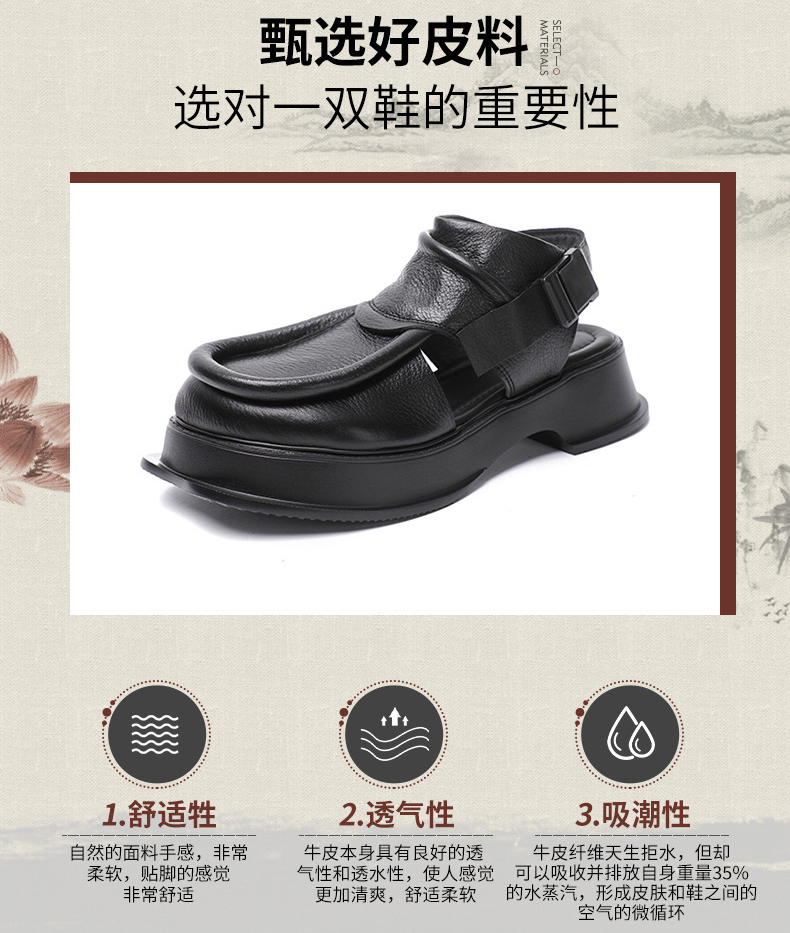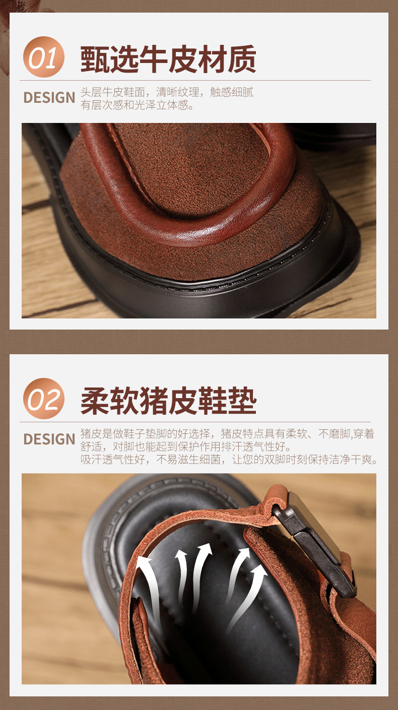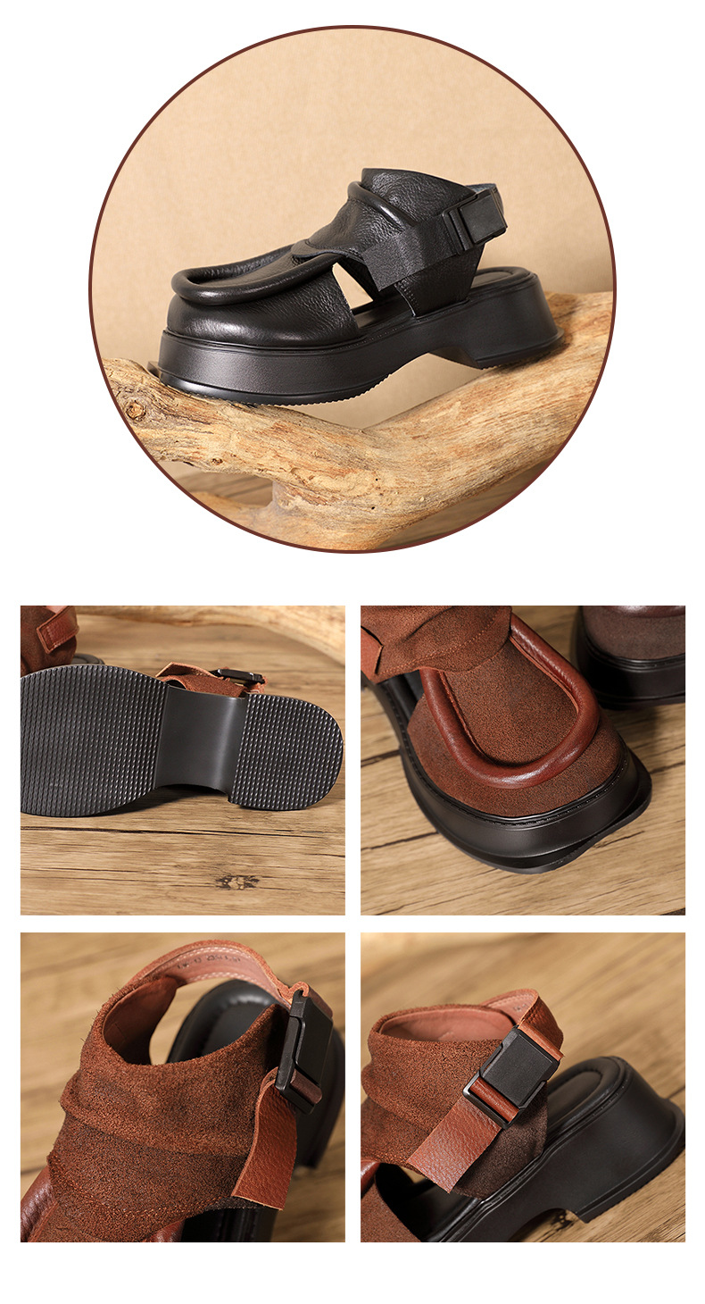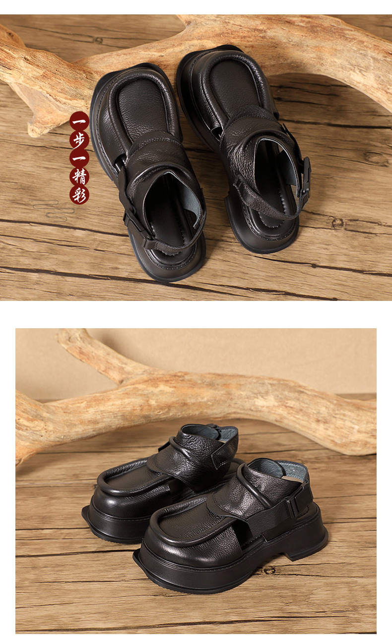 文艺复古手工牛皮女鞋,新款春夏季包头后空凉鞋厚底松糕鞋女BC-136-13