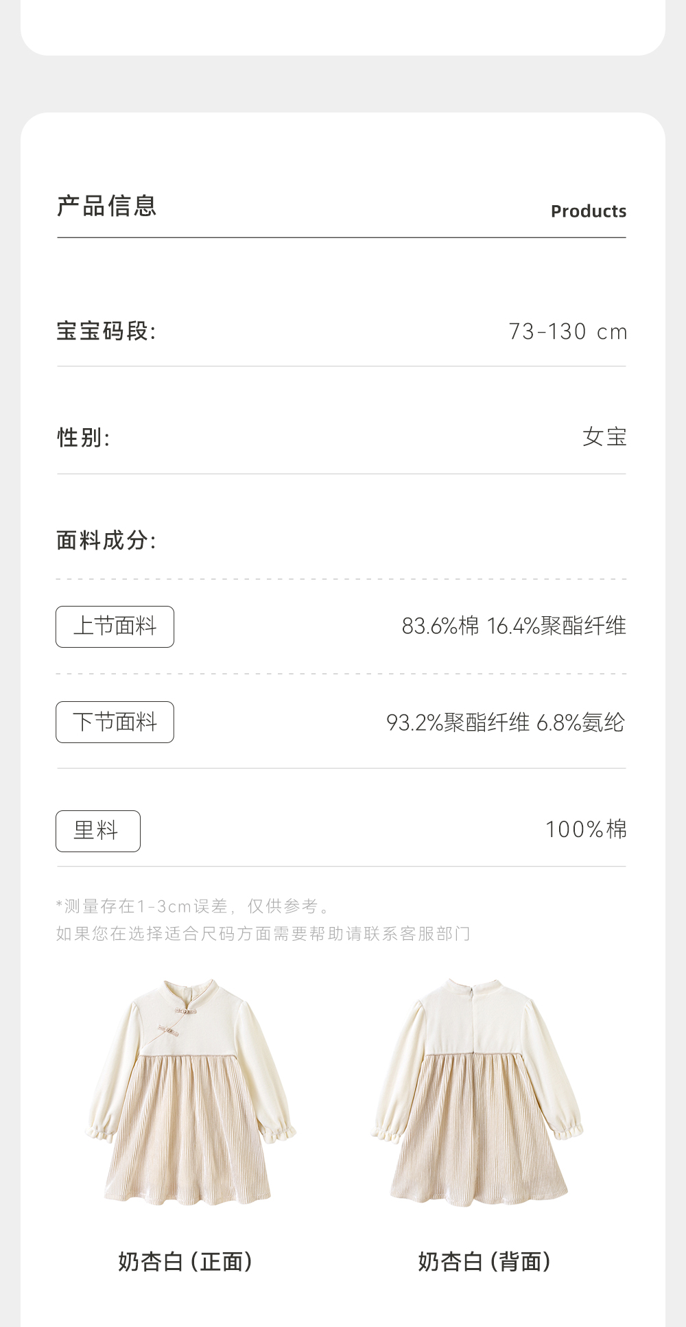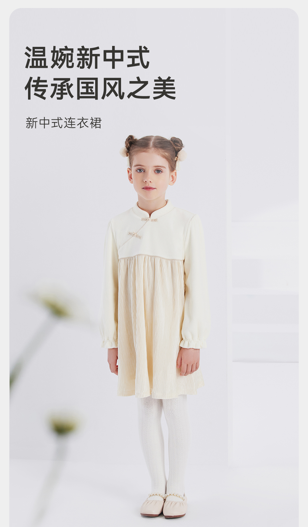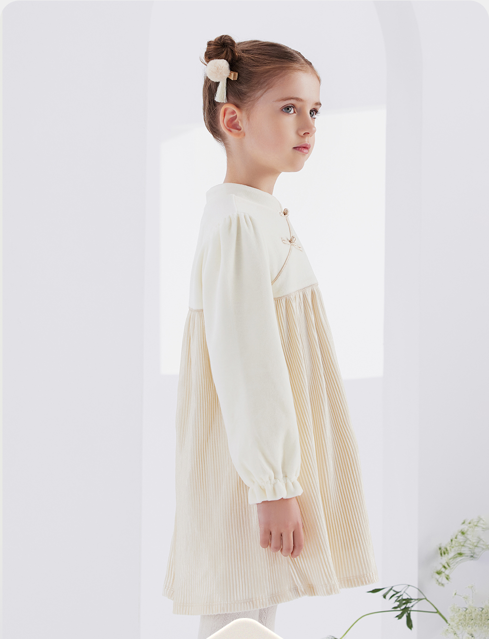 【商场同款】英氏童装女童连衣裙秋冬款中国风灯芯绒裙子
