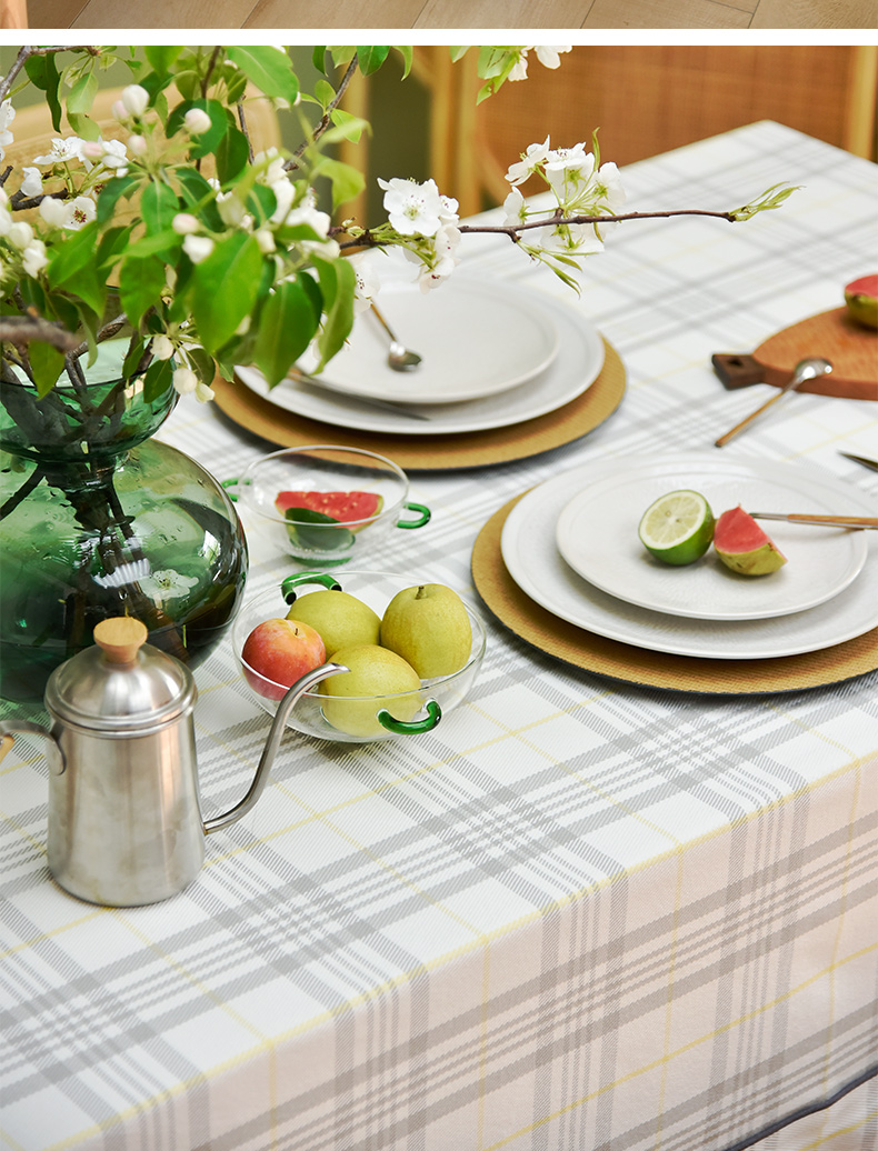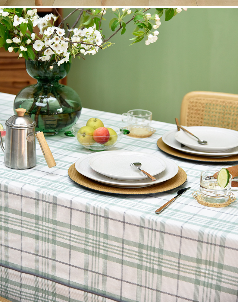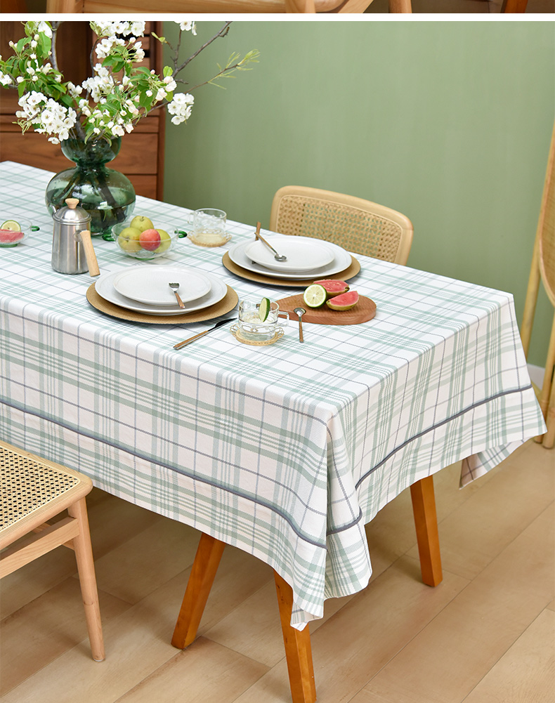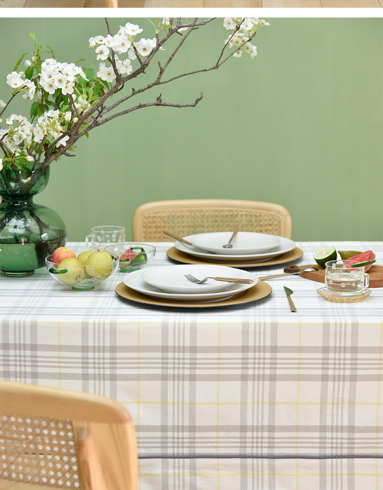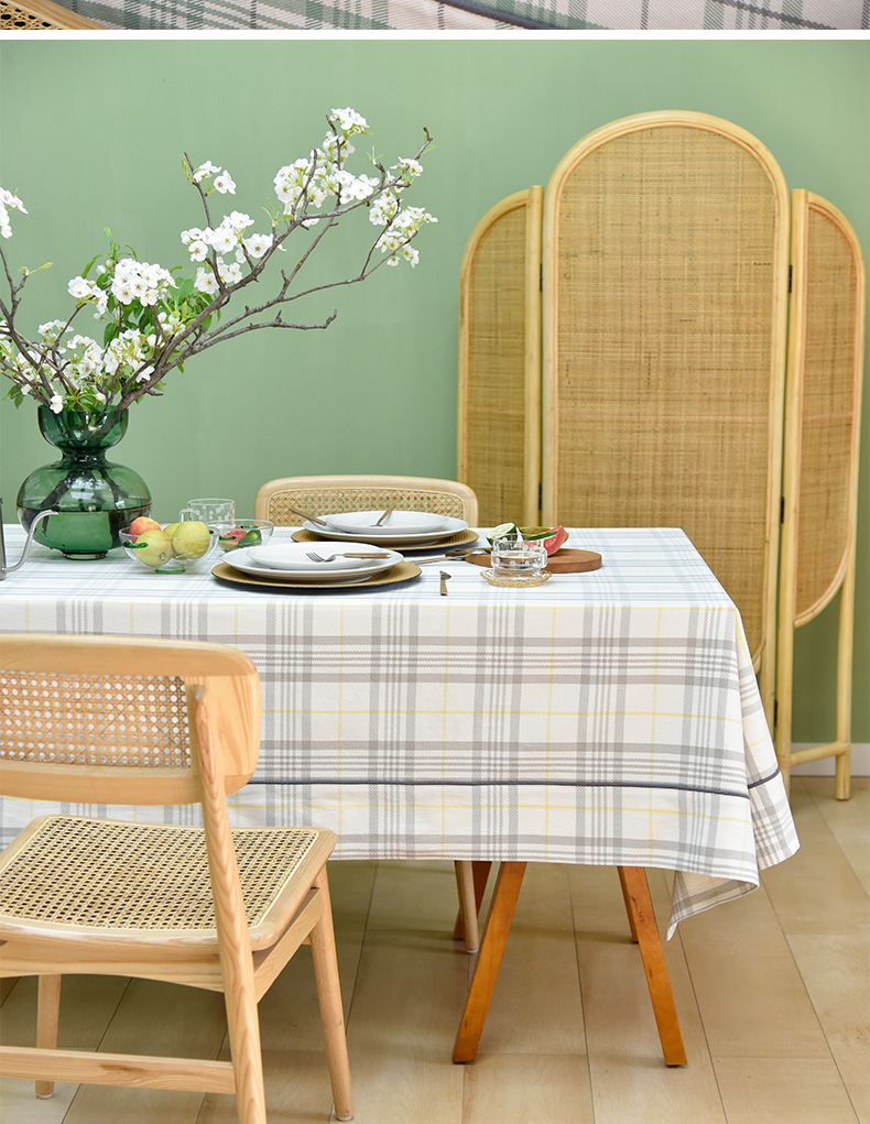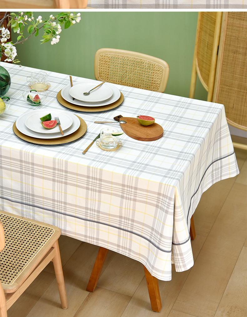 帆布细格纹桌布简约格子餐桌垫
