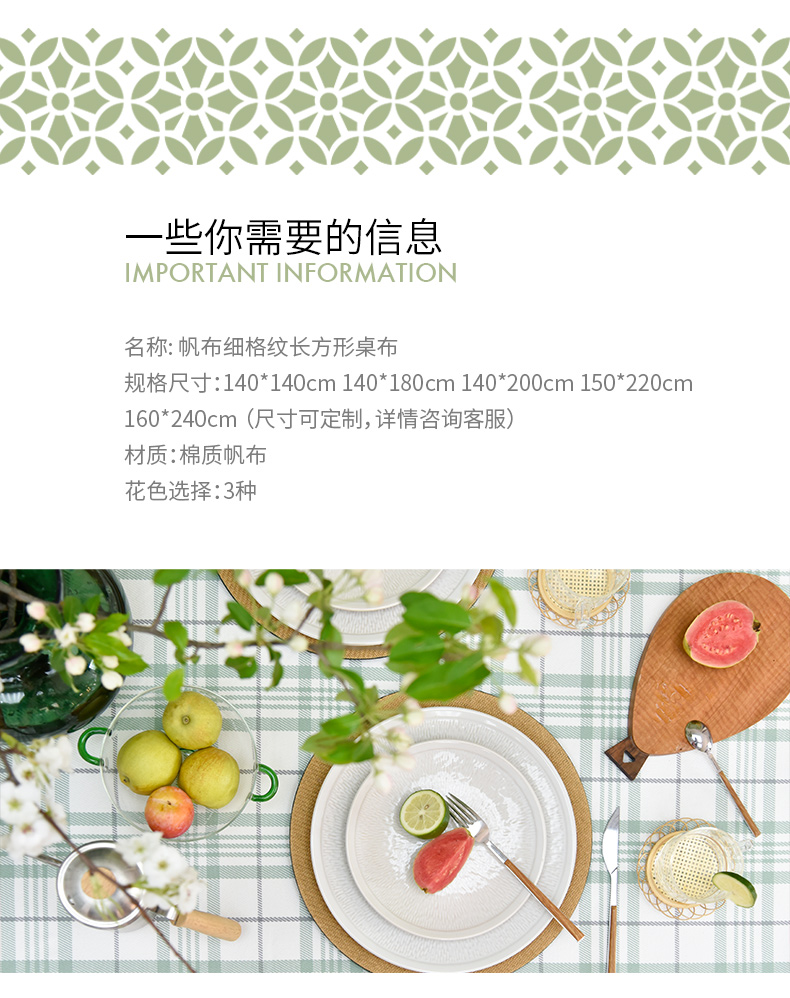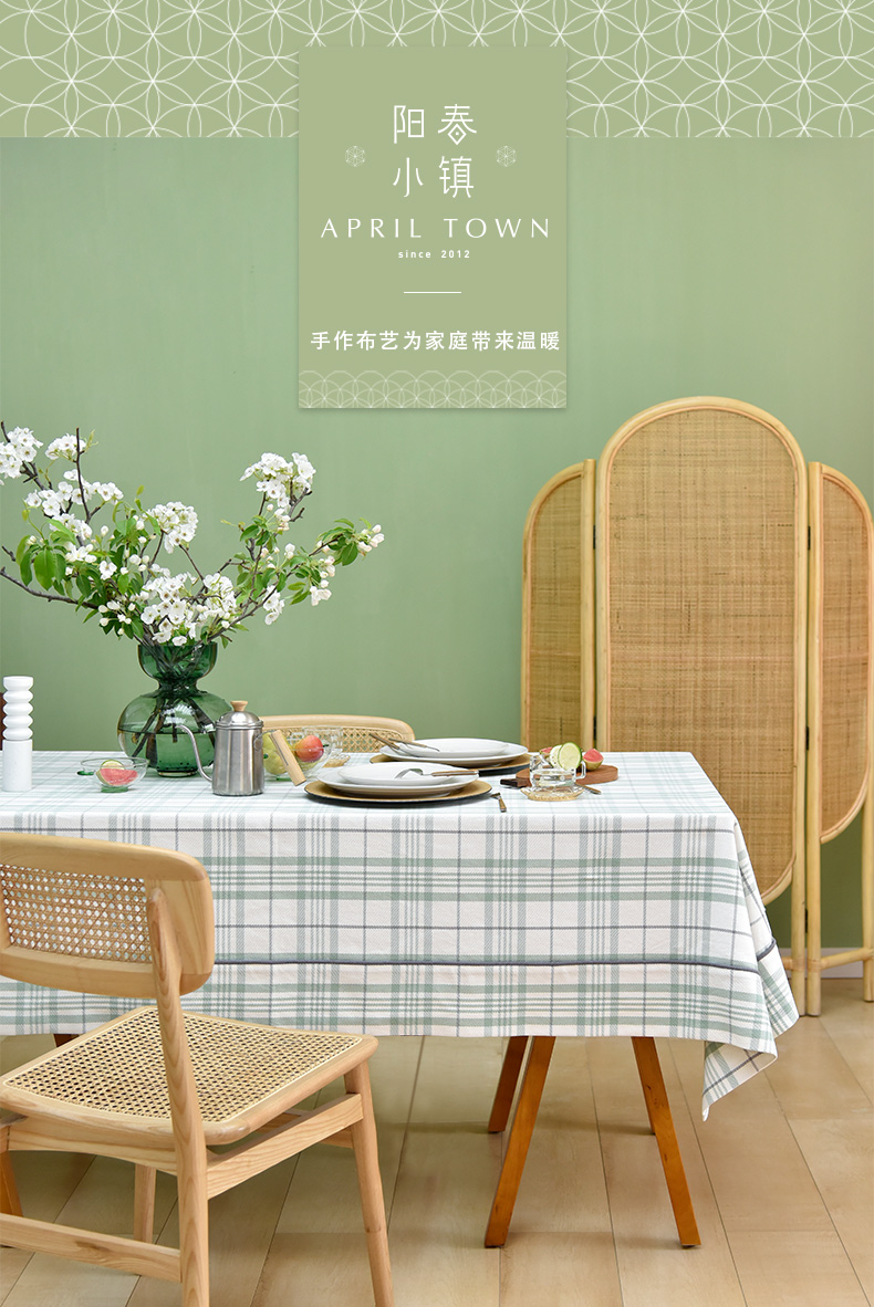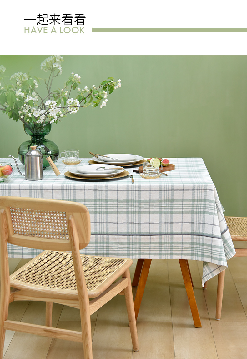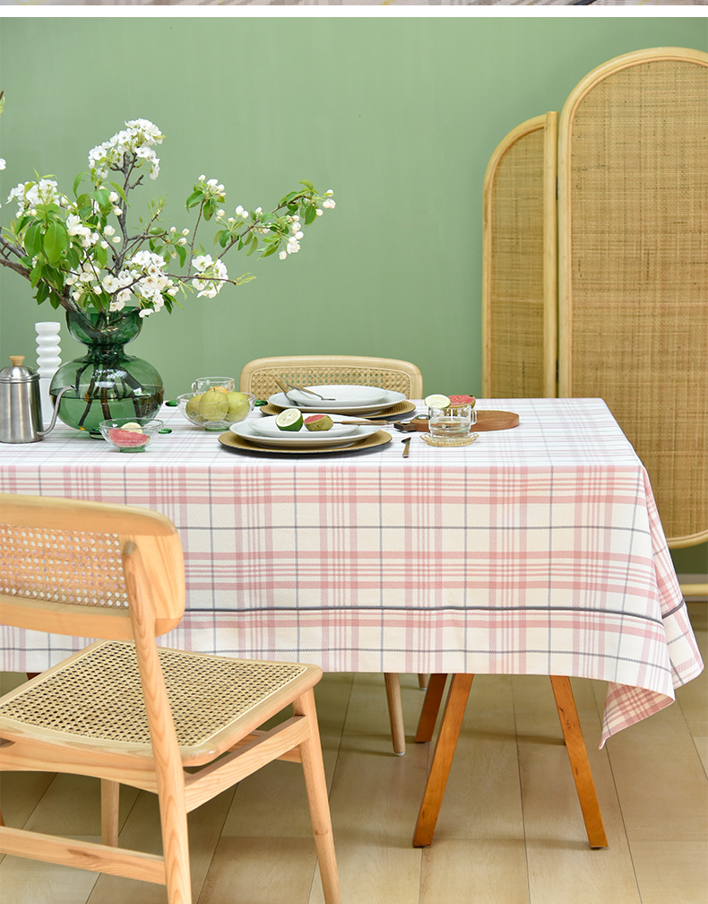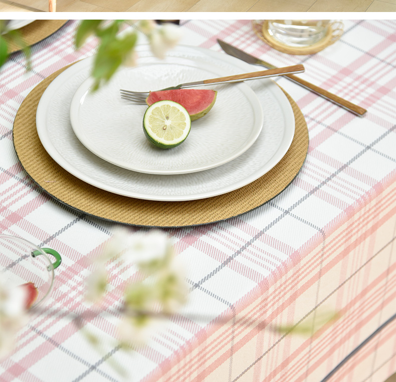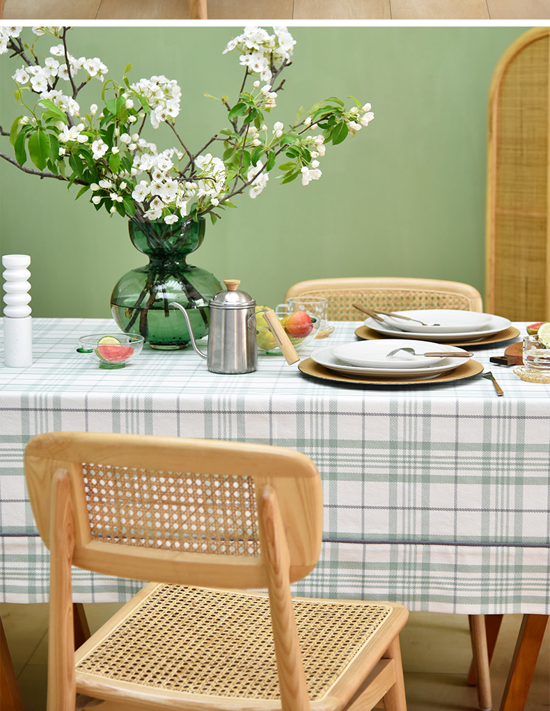 帆布细格纹桌布简约格子餐桌垫