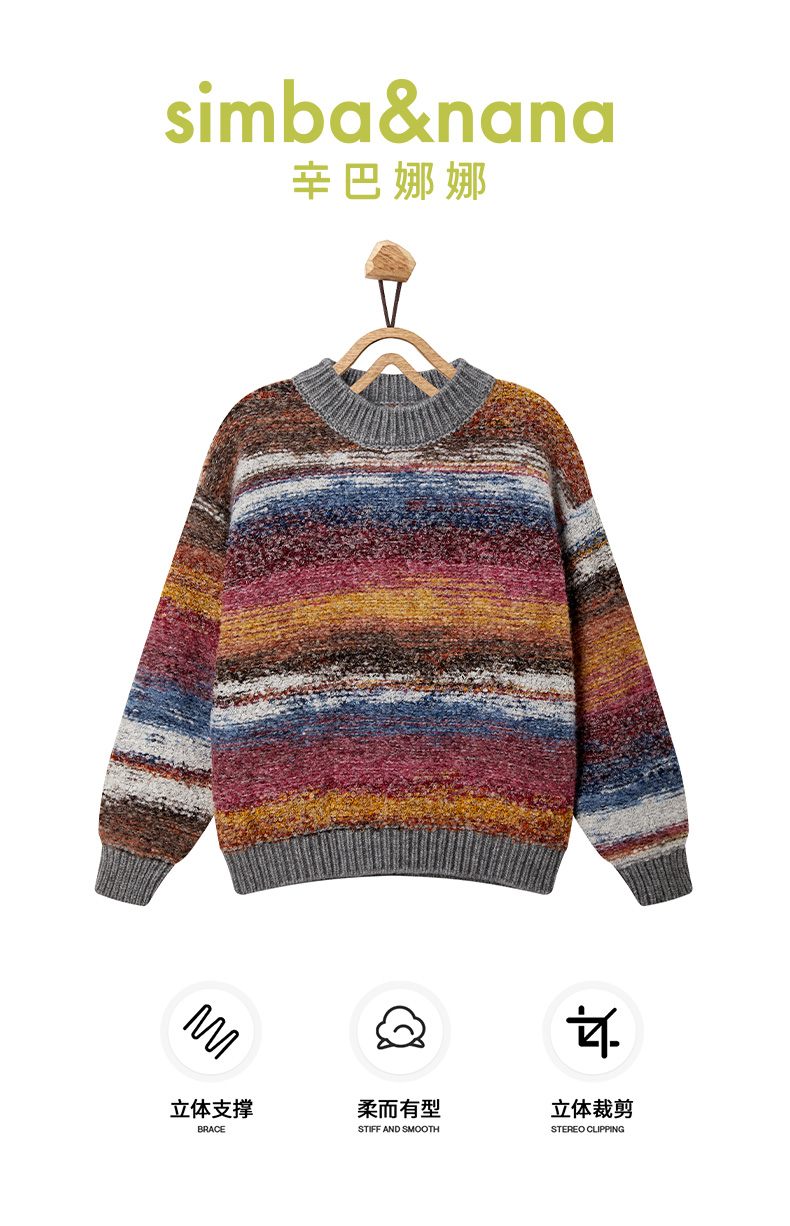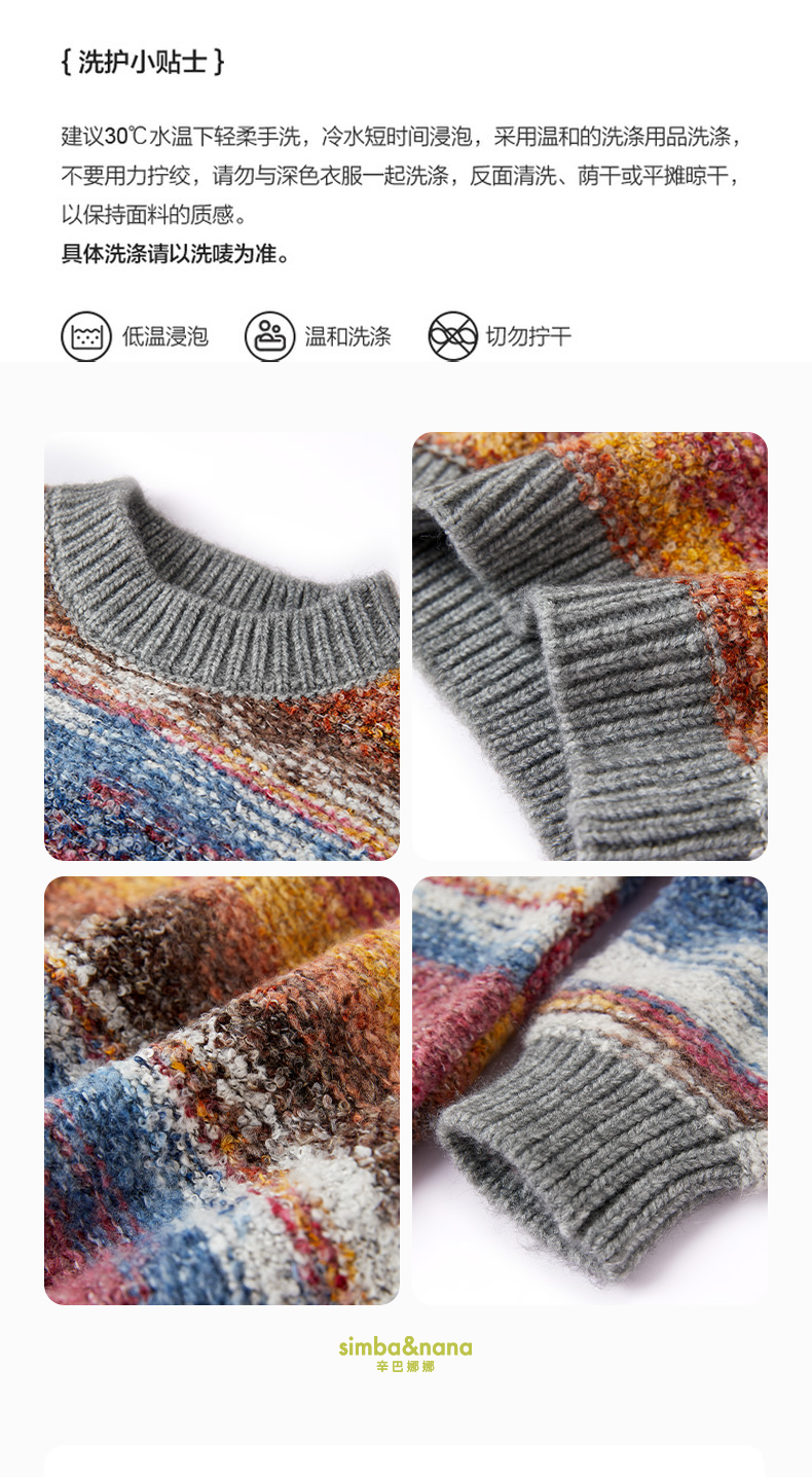 【辛巴娜娜】simbanana撞色扎染毛衣男中大童春秋季潮流宽松新款慵懒风针织衫