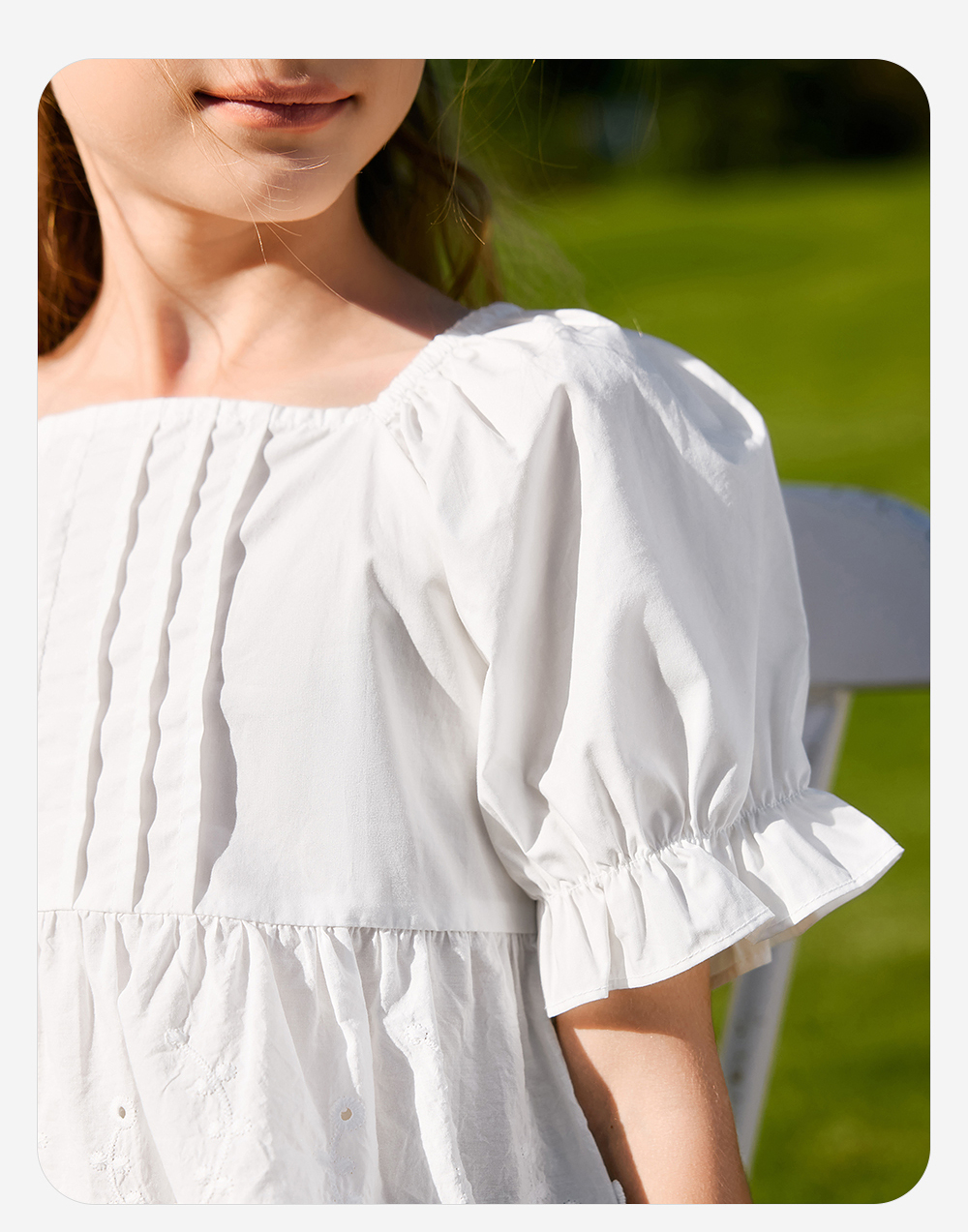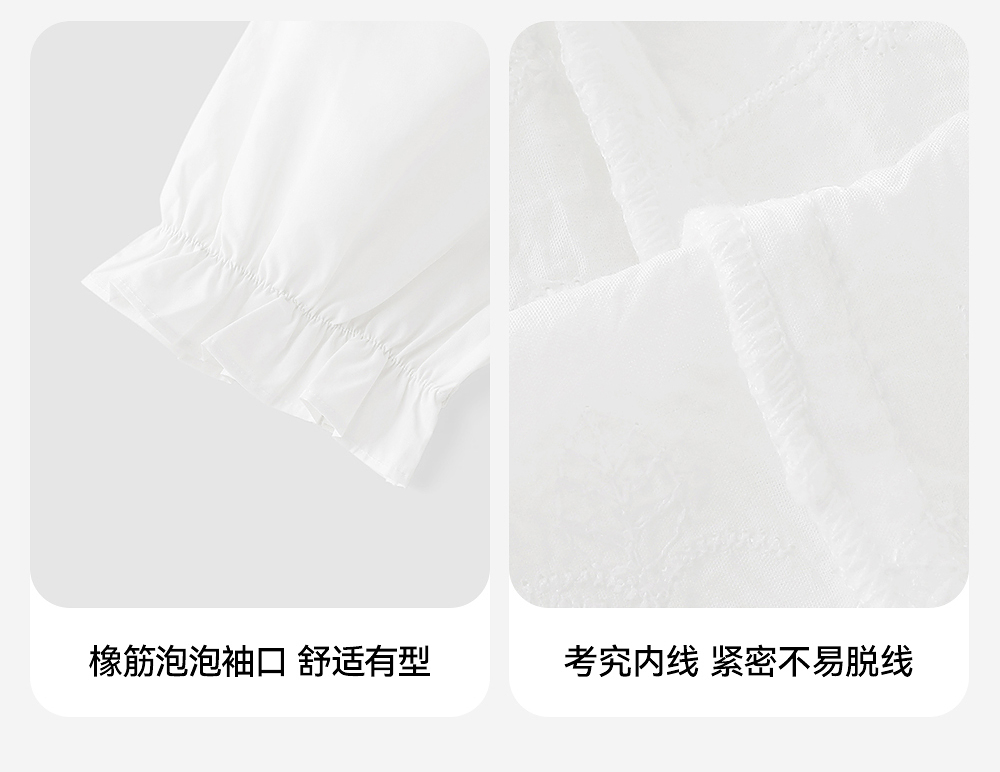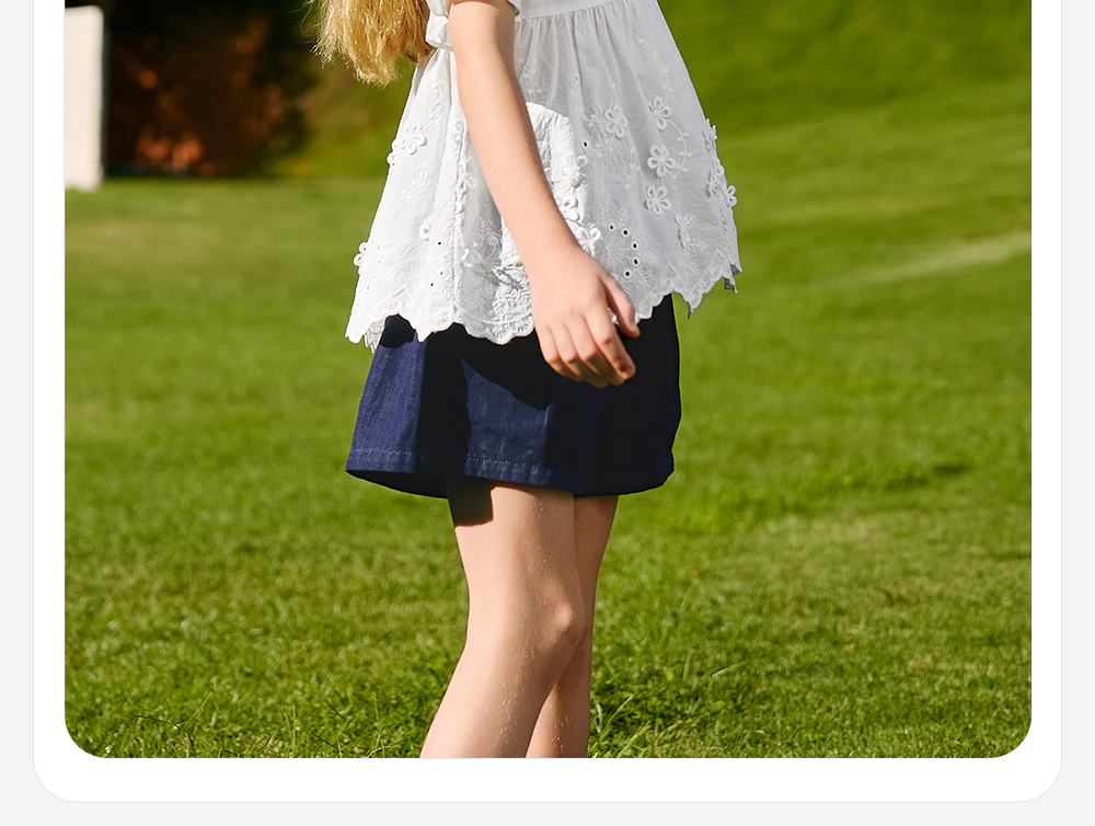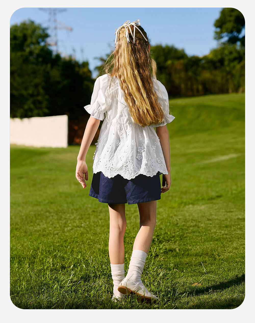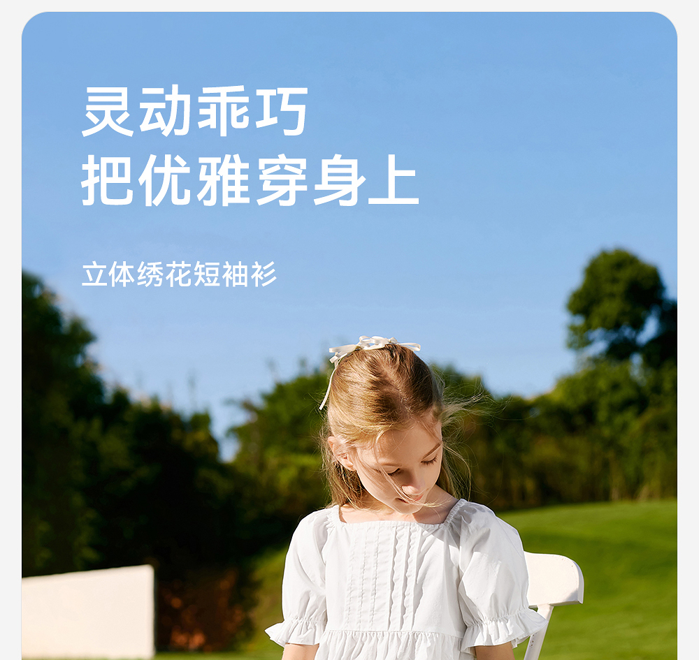 英氏儿童衬衫夏季轻薄透气女童衬衫可爱绣花短袖上衣中大童衣服