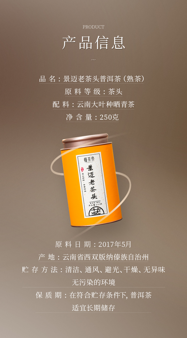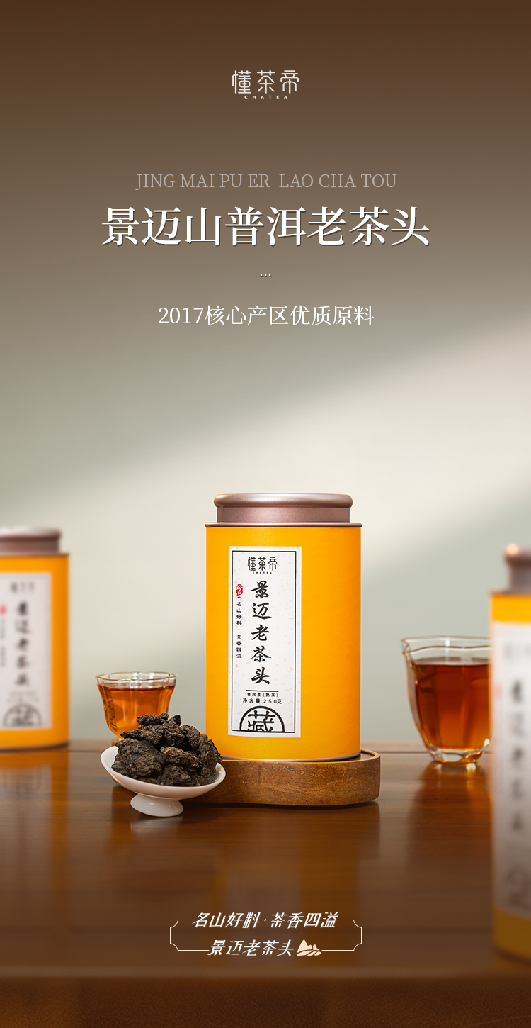 懂茶帝国艳普洱茶2017年景迈老茶头250g/罐