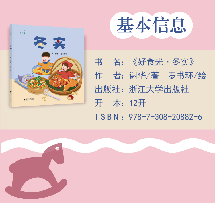 本套系以欢快明朗的画风,带给孩子们各种各样与食物本身以及如何制作美食的故事,让孩子发现美妙的食物与二十四节气、与传统节俗的关联。立春送春盘,立夏挂彩蛋,立秋贴秋膘,冬至包饺子……四季轮回,让孩子在不知不觉中,触摸到传统文化的肌理。