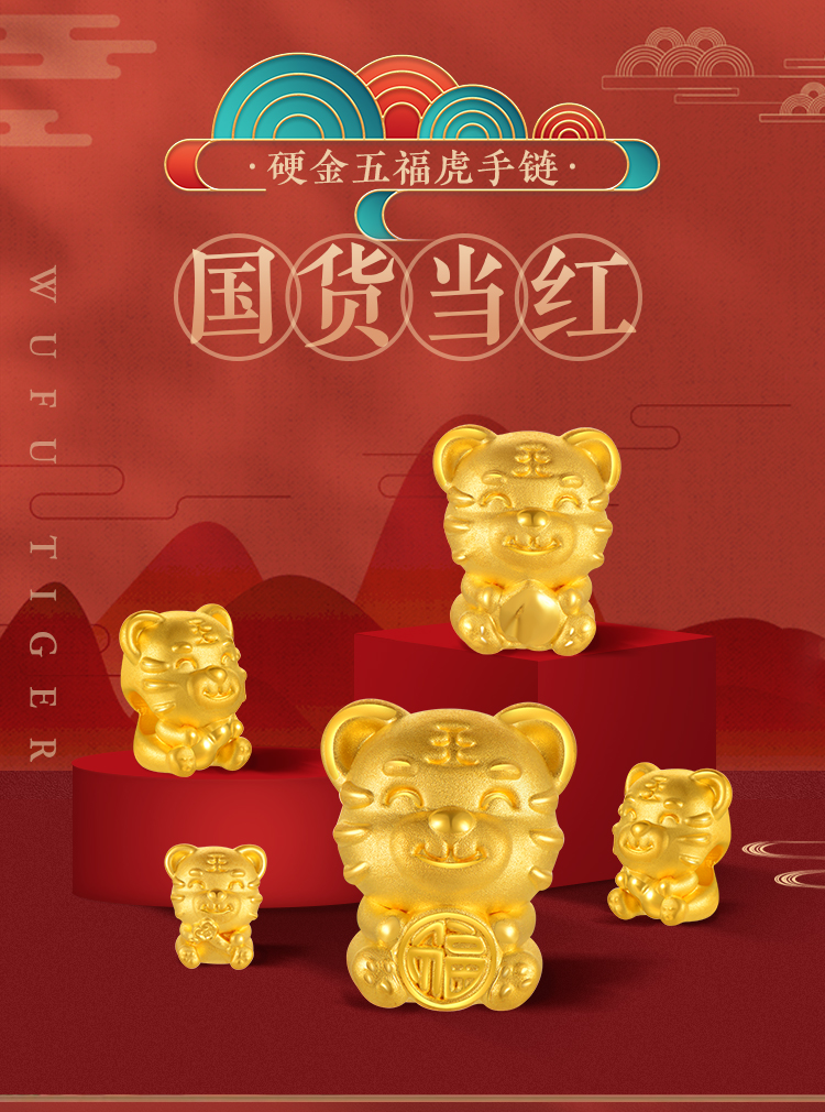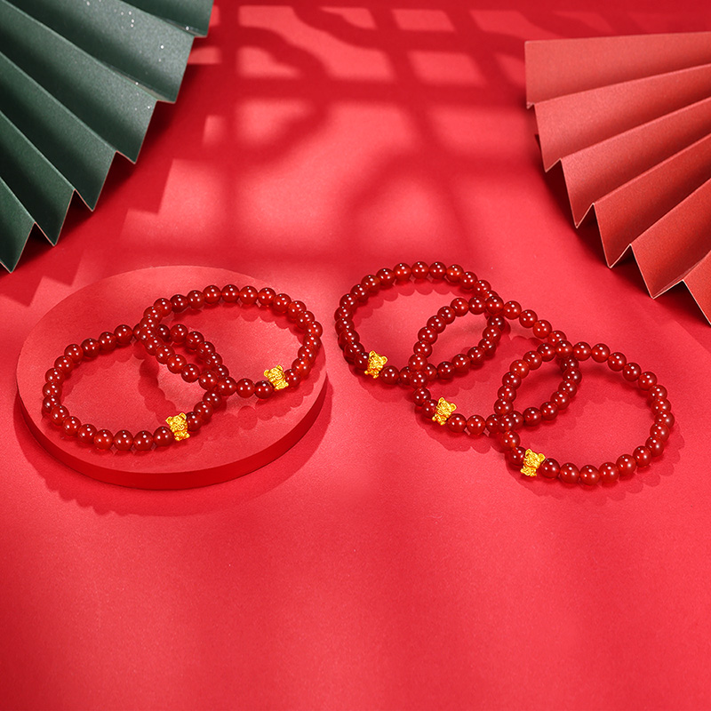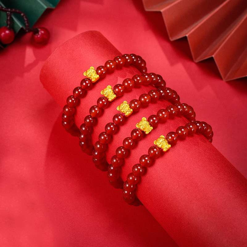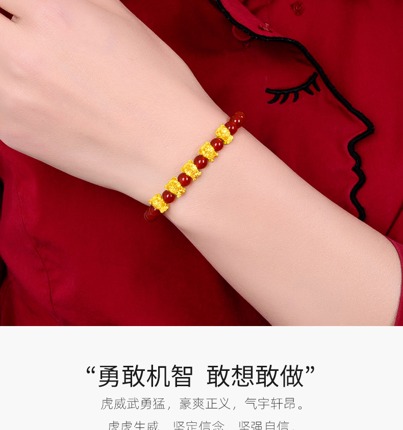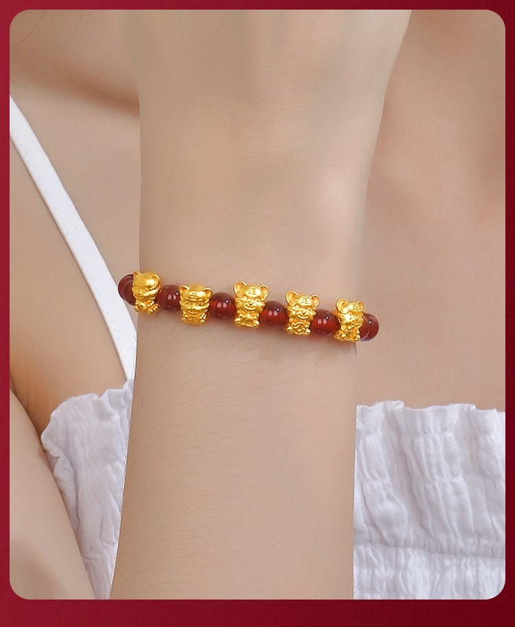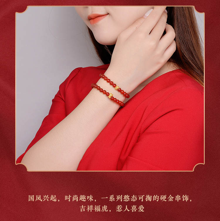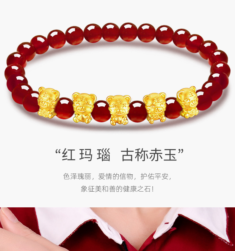 中国黄金珠宝 福虎生威 红玛瑙足金手链◆