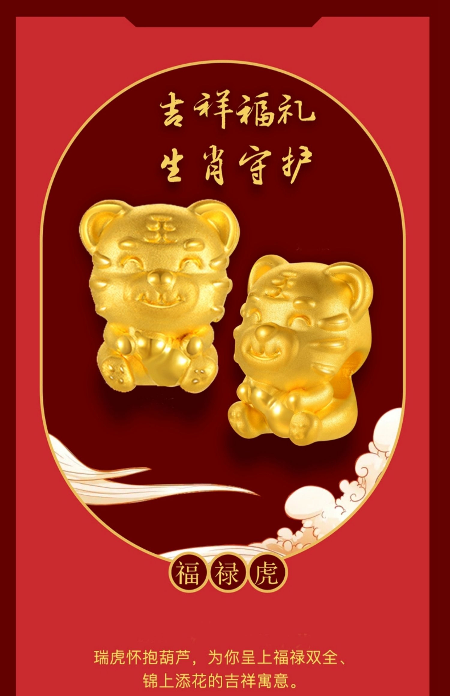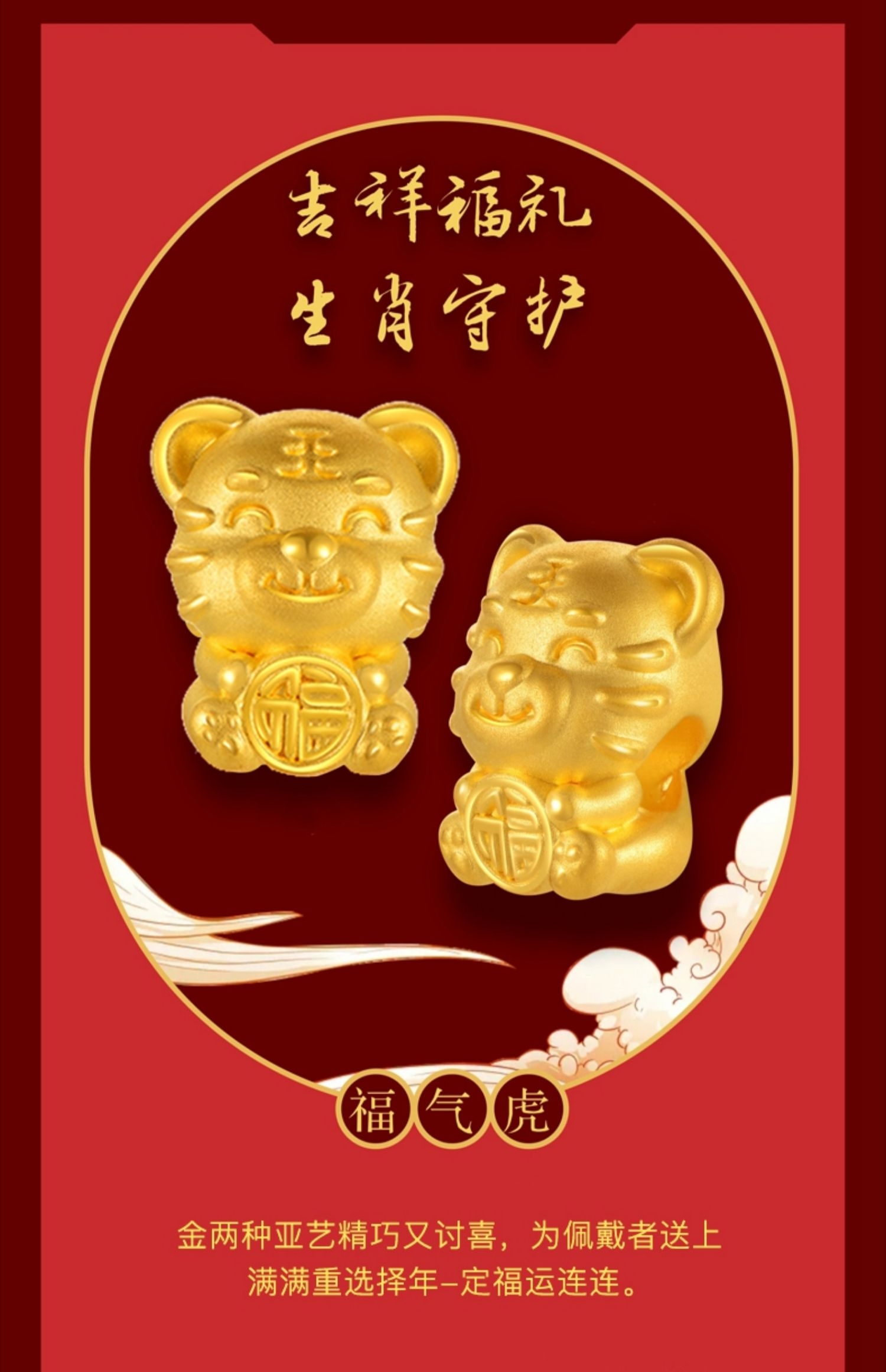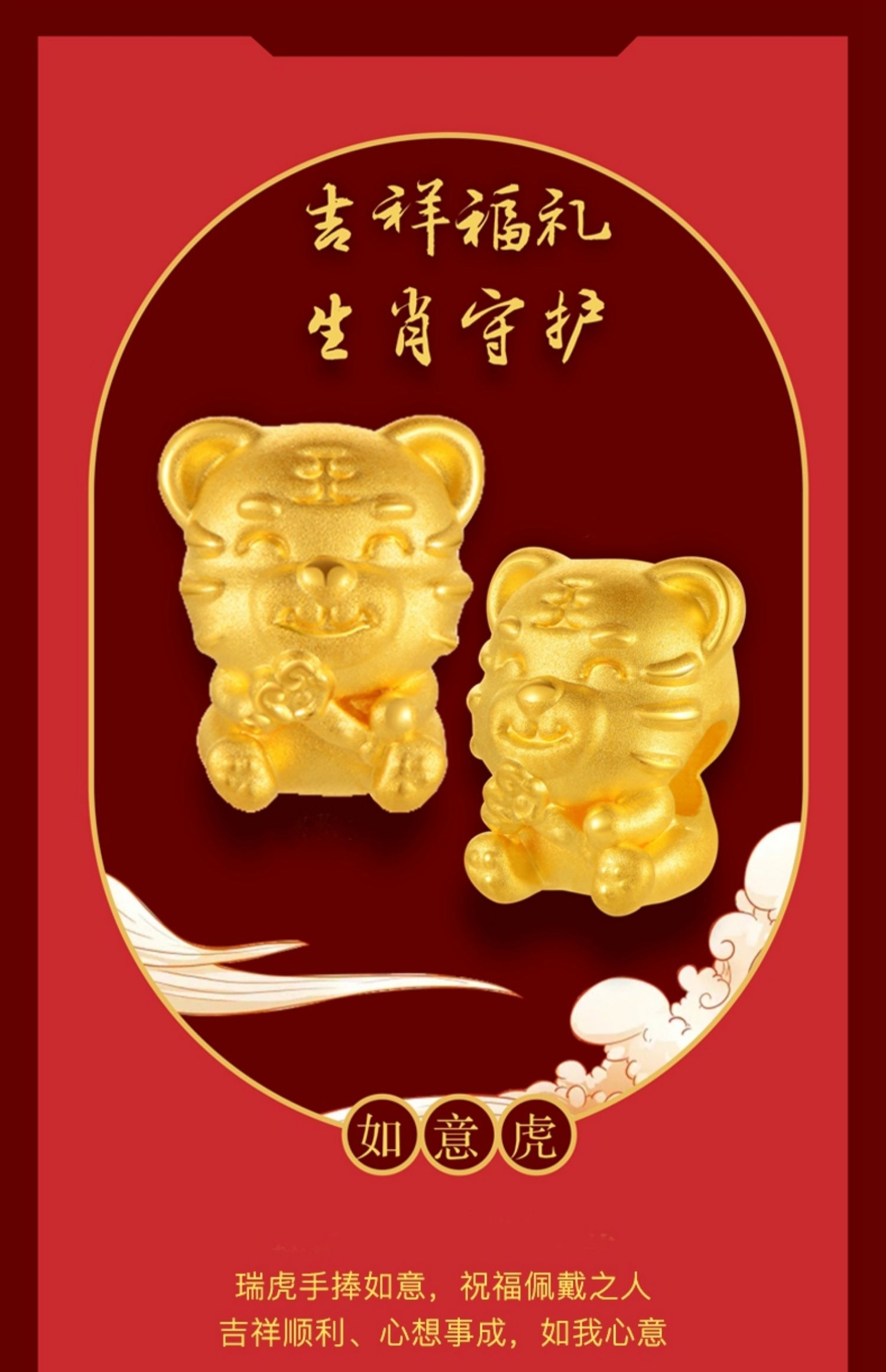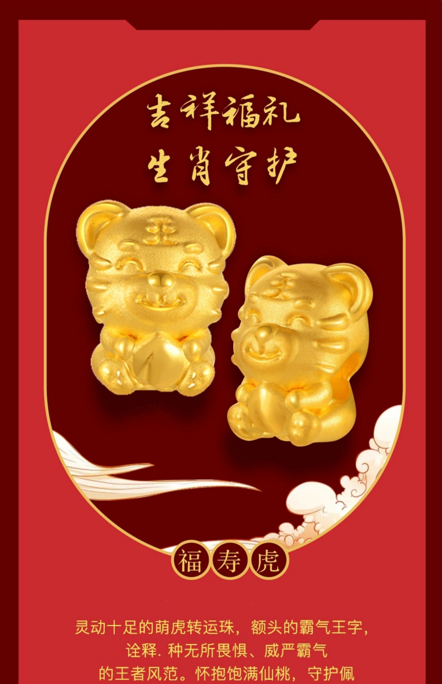 中国黄金珠宝 福虎生威 红玛瑙足金手链◆